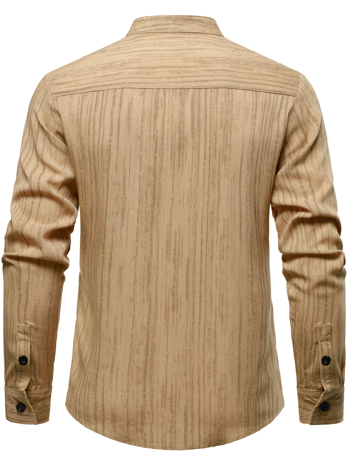 Men's Solid Color Pocket Cotton Polo Long Sleeve Shirt