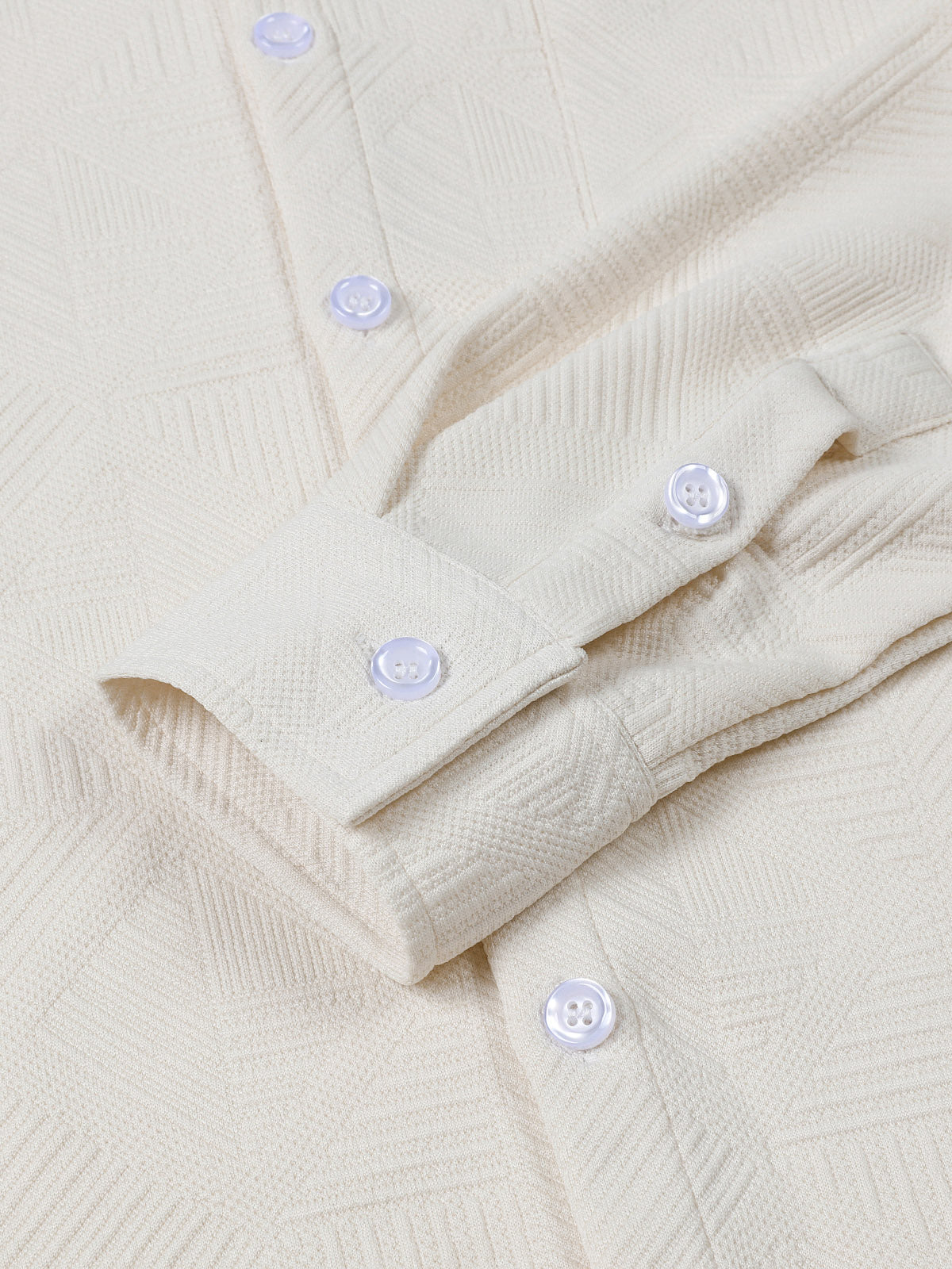Men's Jacquard Casual Polo Long Sleeve Shirt