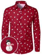 Men's Snowman Christmas Print Red Long Sleeve Shirt