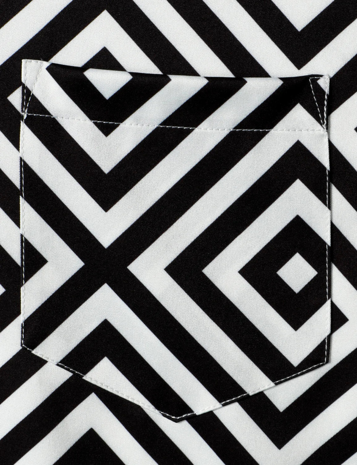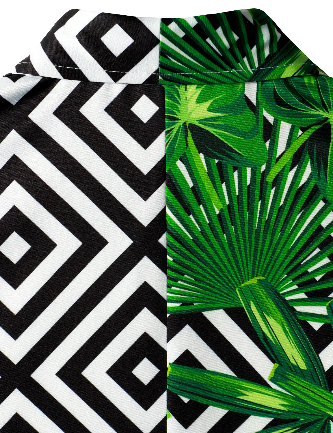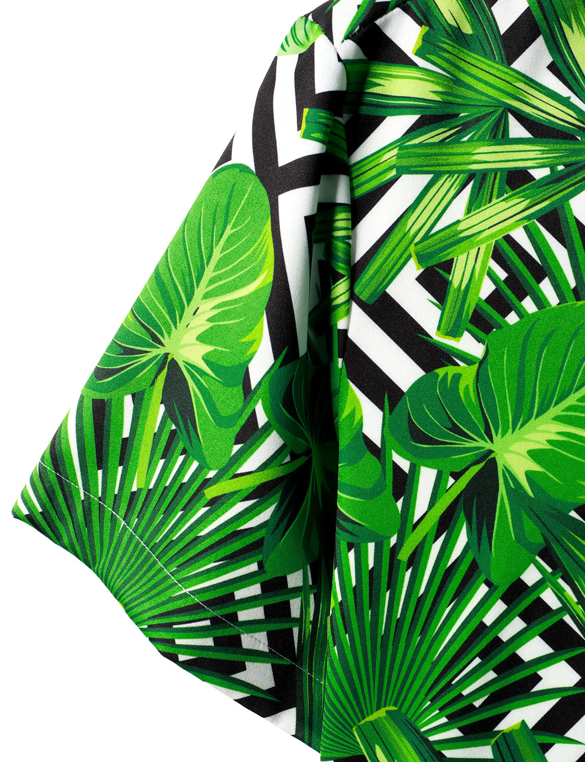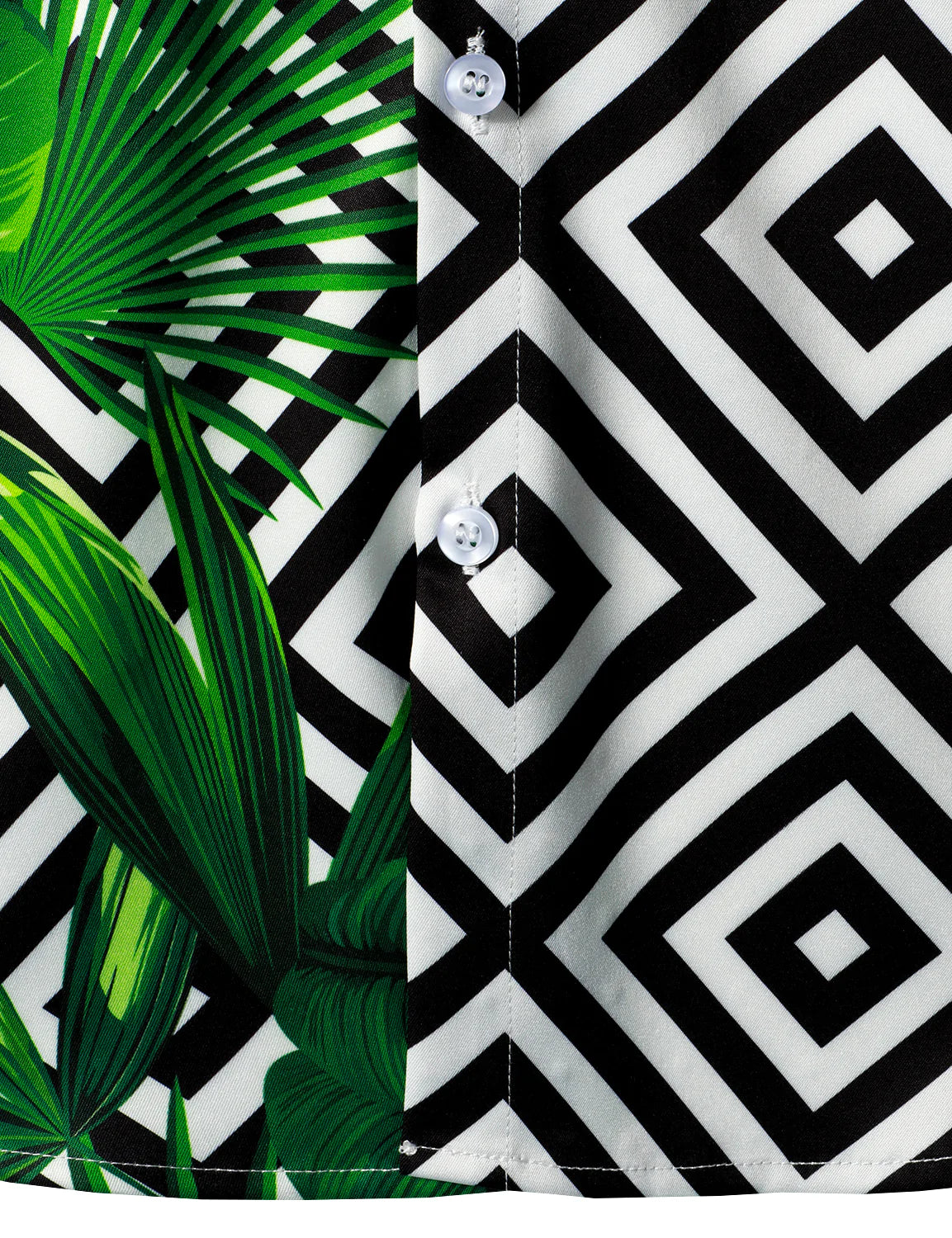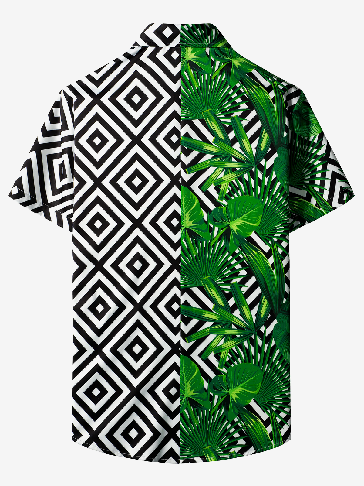 Men's Green Tropical Leaves Geometric Print Vacation Short Sleeve Hawaiian Shirt