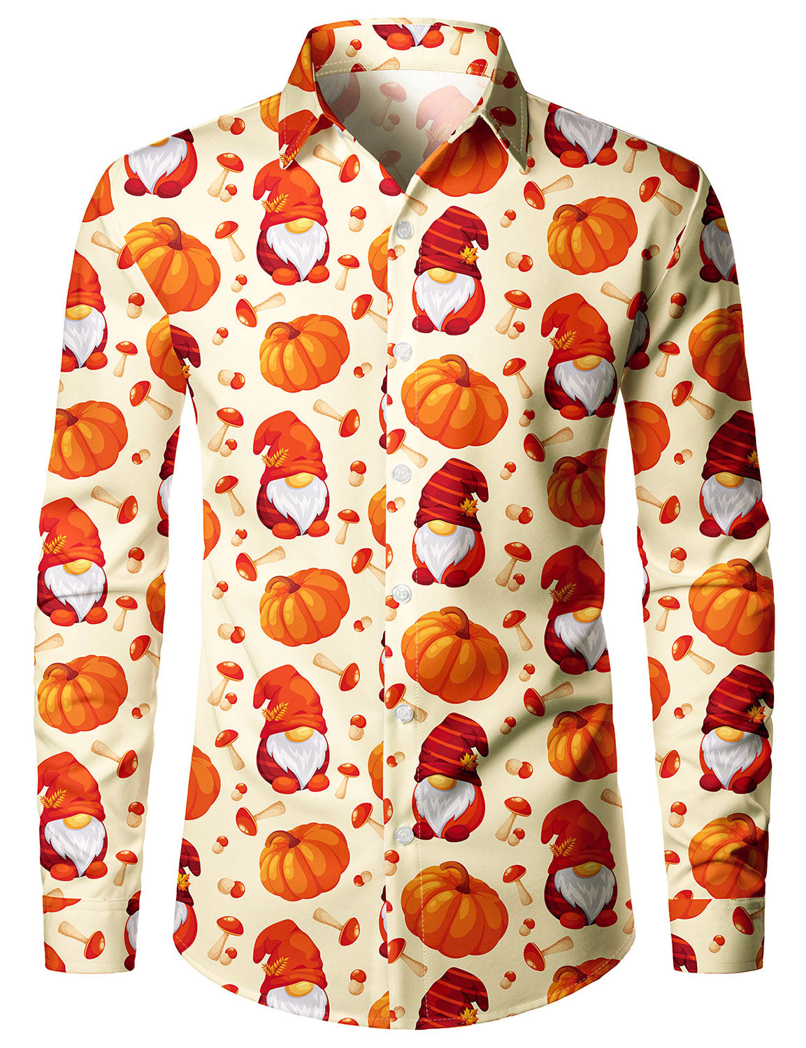 Men's Thanksgiving Holiday Funny Gnome Pumpkin Button Long Sleeve Shirt