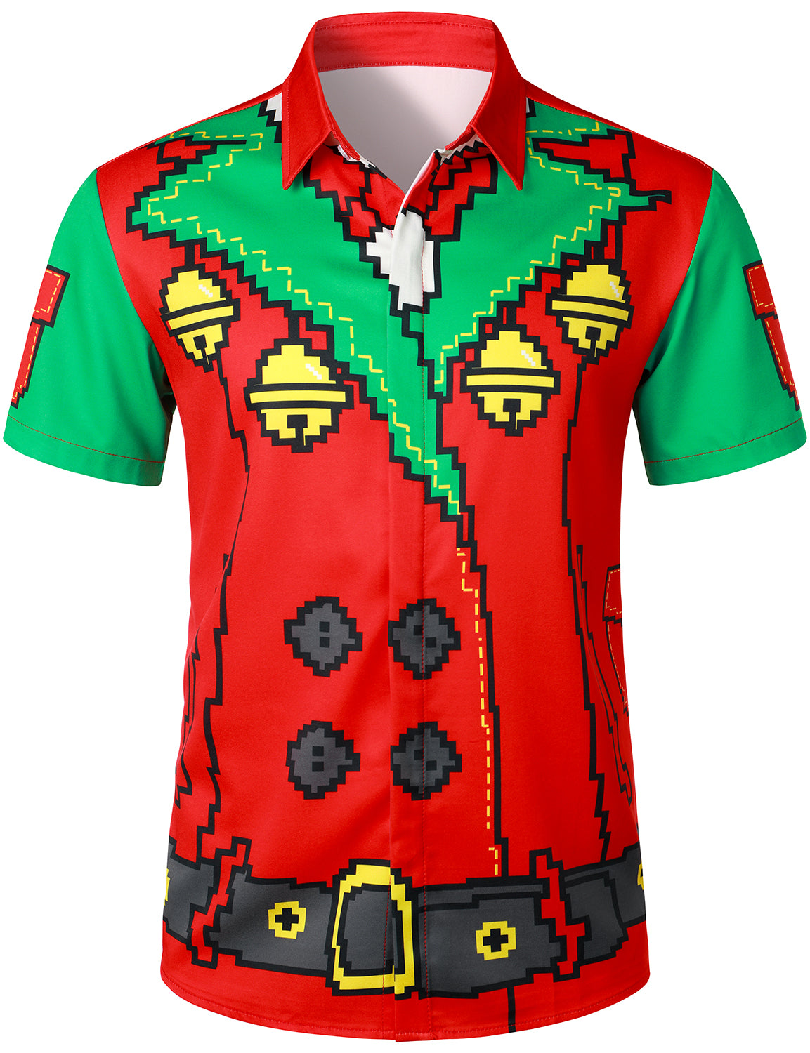 Men's Christmas Party Costume Button Up Ugly Xmas Short Sleeve Shirt