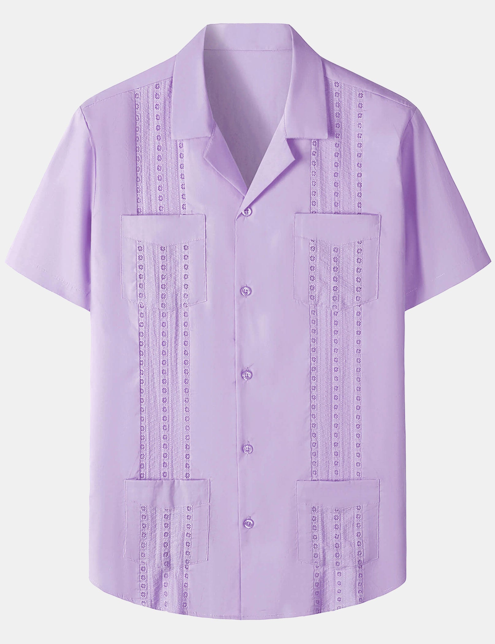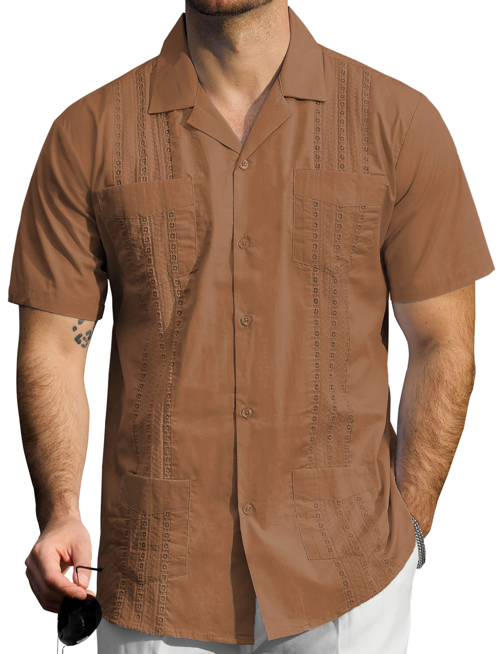 Men's Guayabera Cuban Summer Casual Button Beach Short Sleeve Shirt