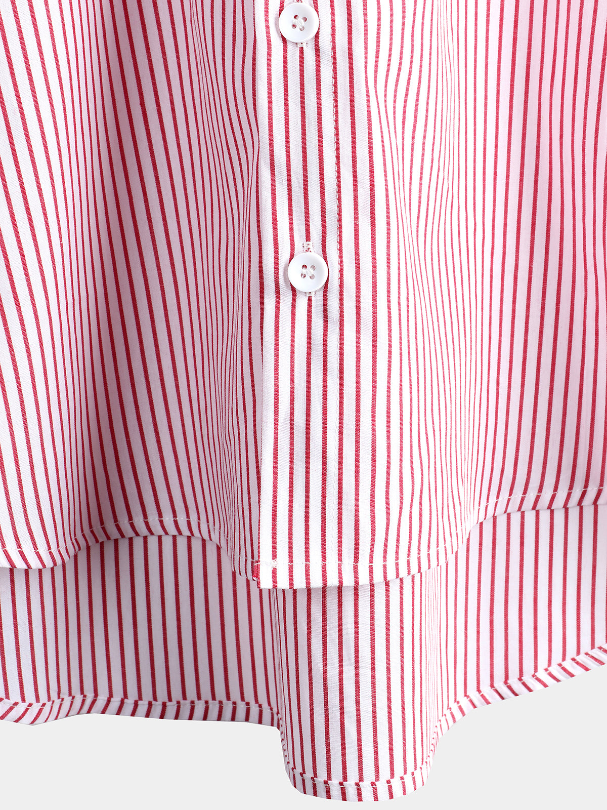 Men's Breathable Cotton Stand Collar Short Sleeve Striped Classic Shirts