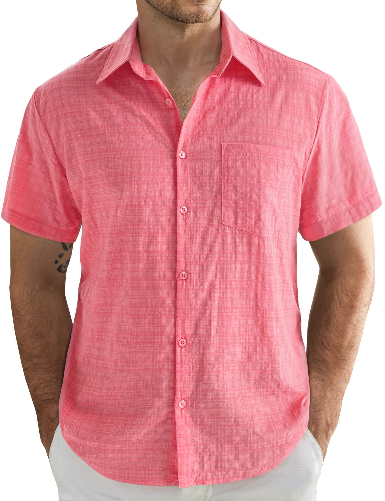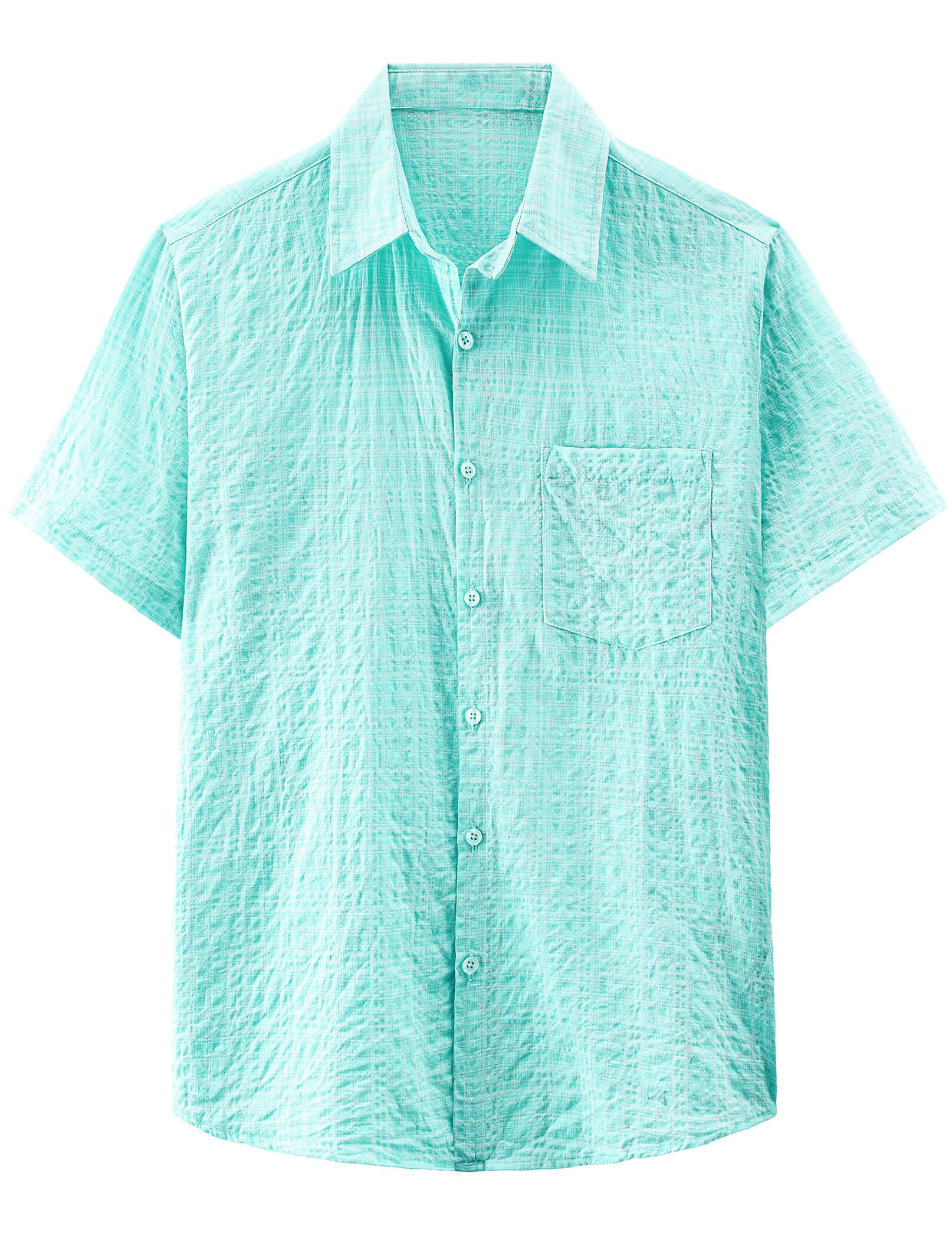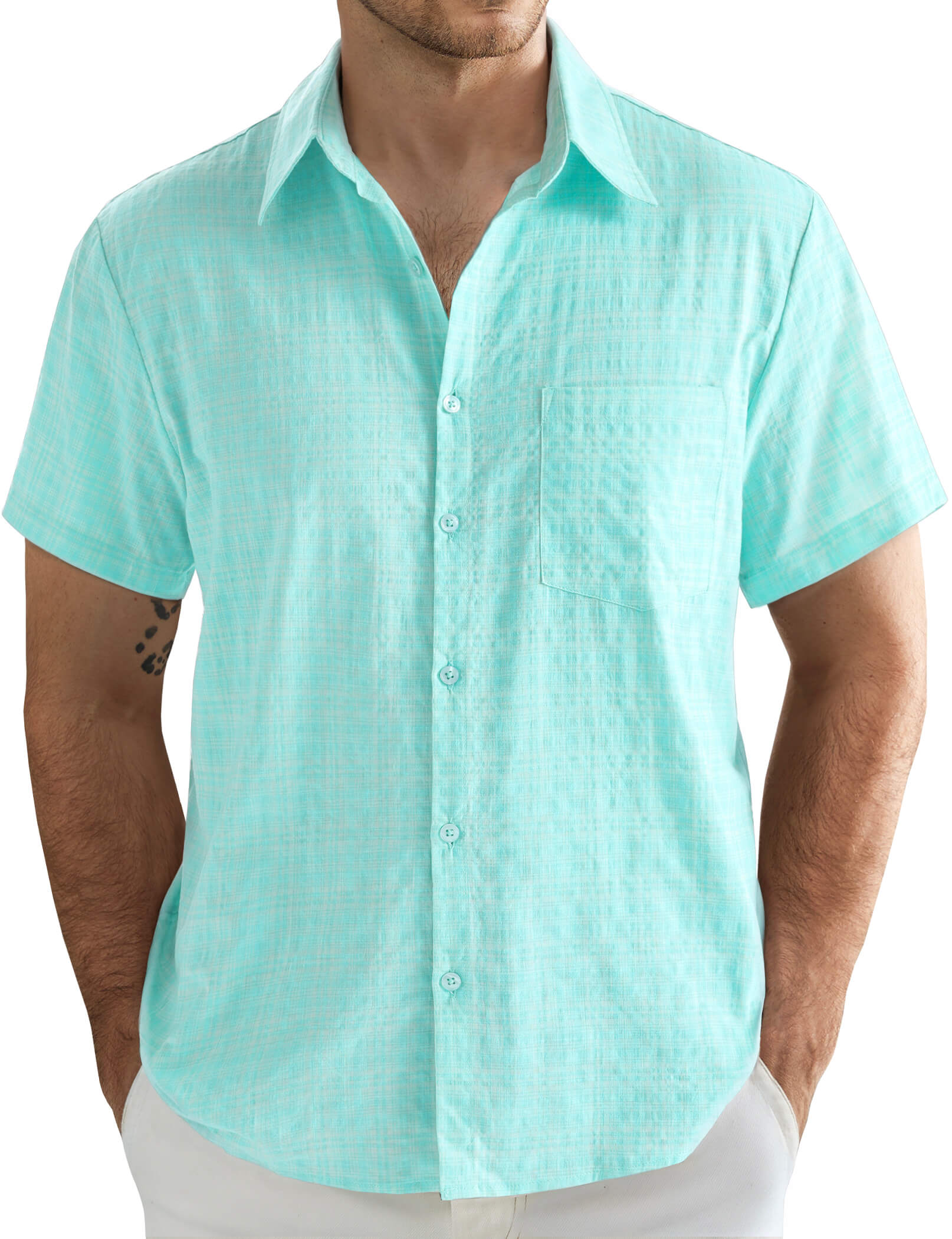 Men's Casual Plaid Summer Beach Vacation Hawaiian Button Up Shirt