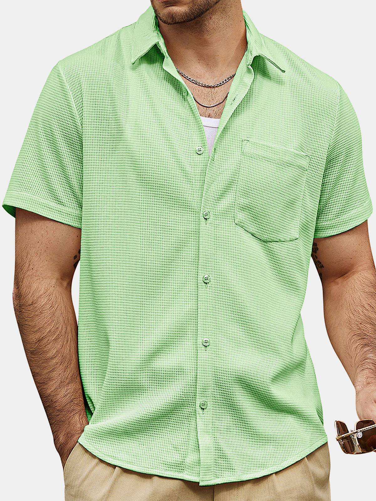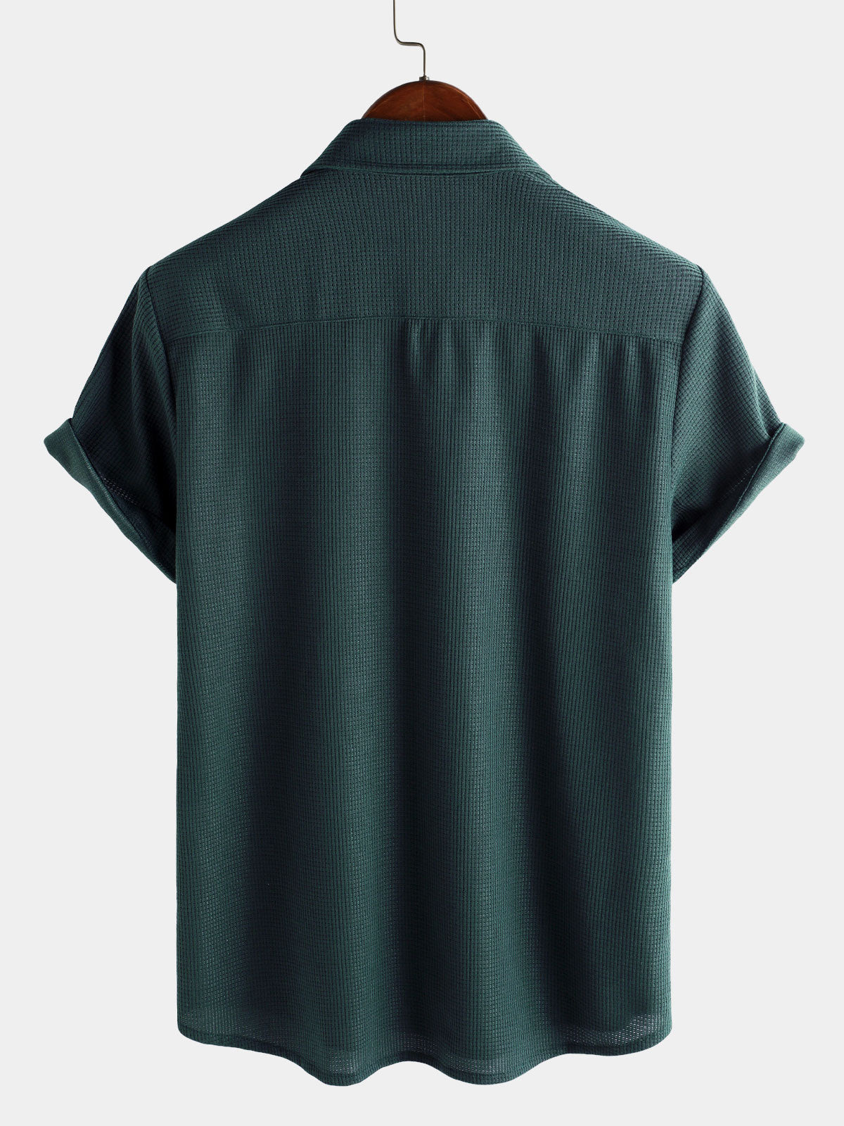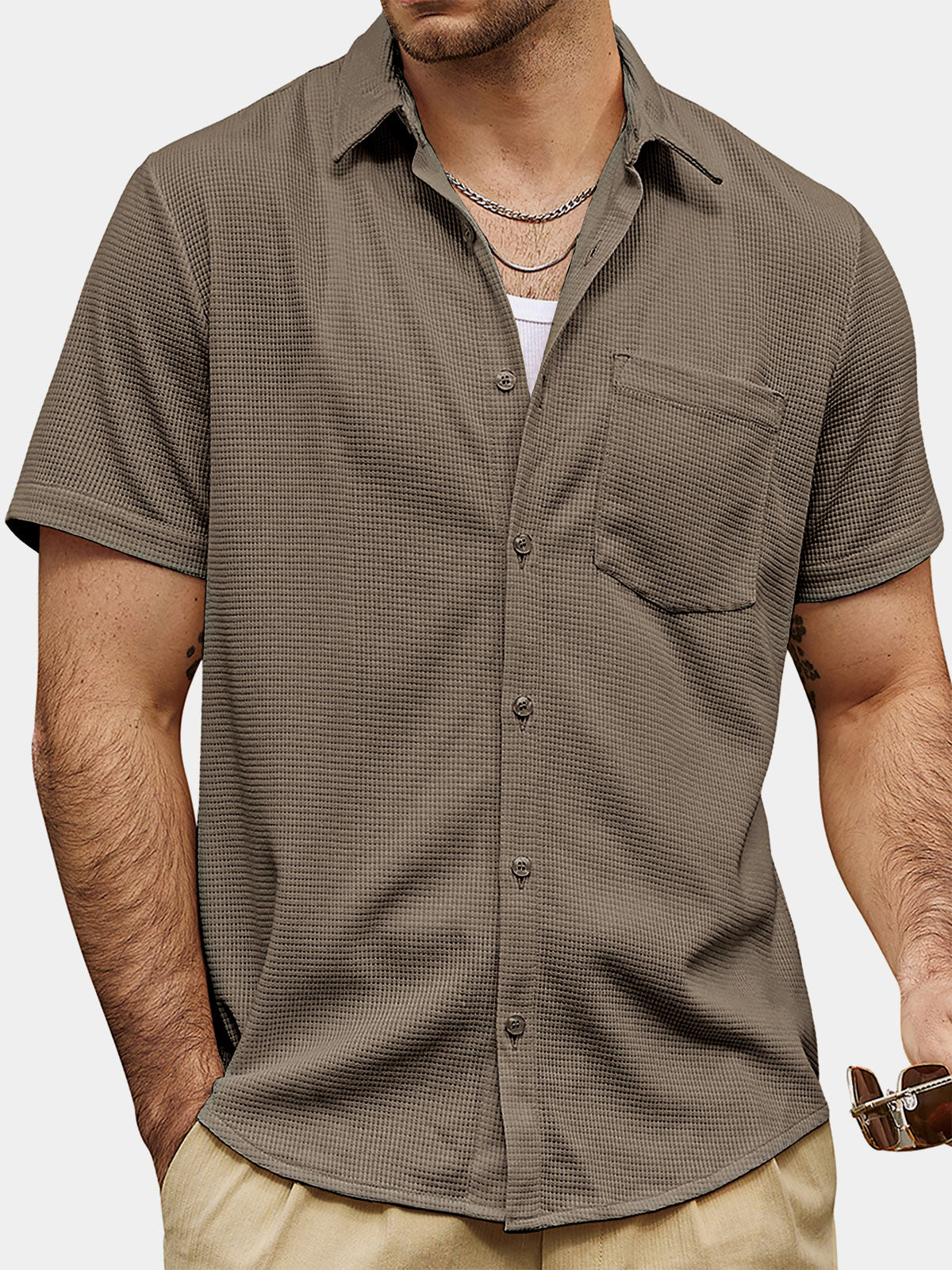 Men's Casual Waffle Summer Beach Short Sleeve Shirt