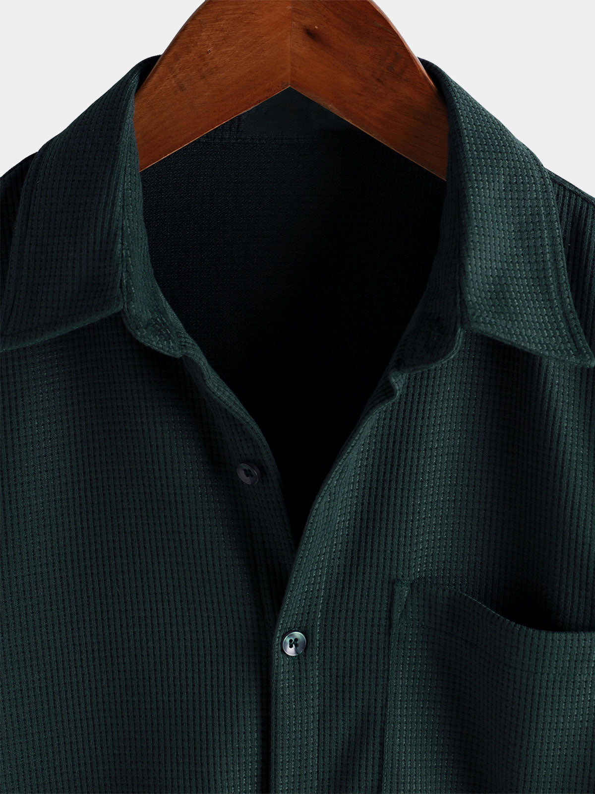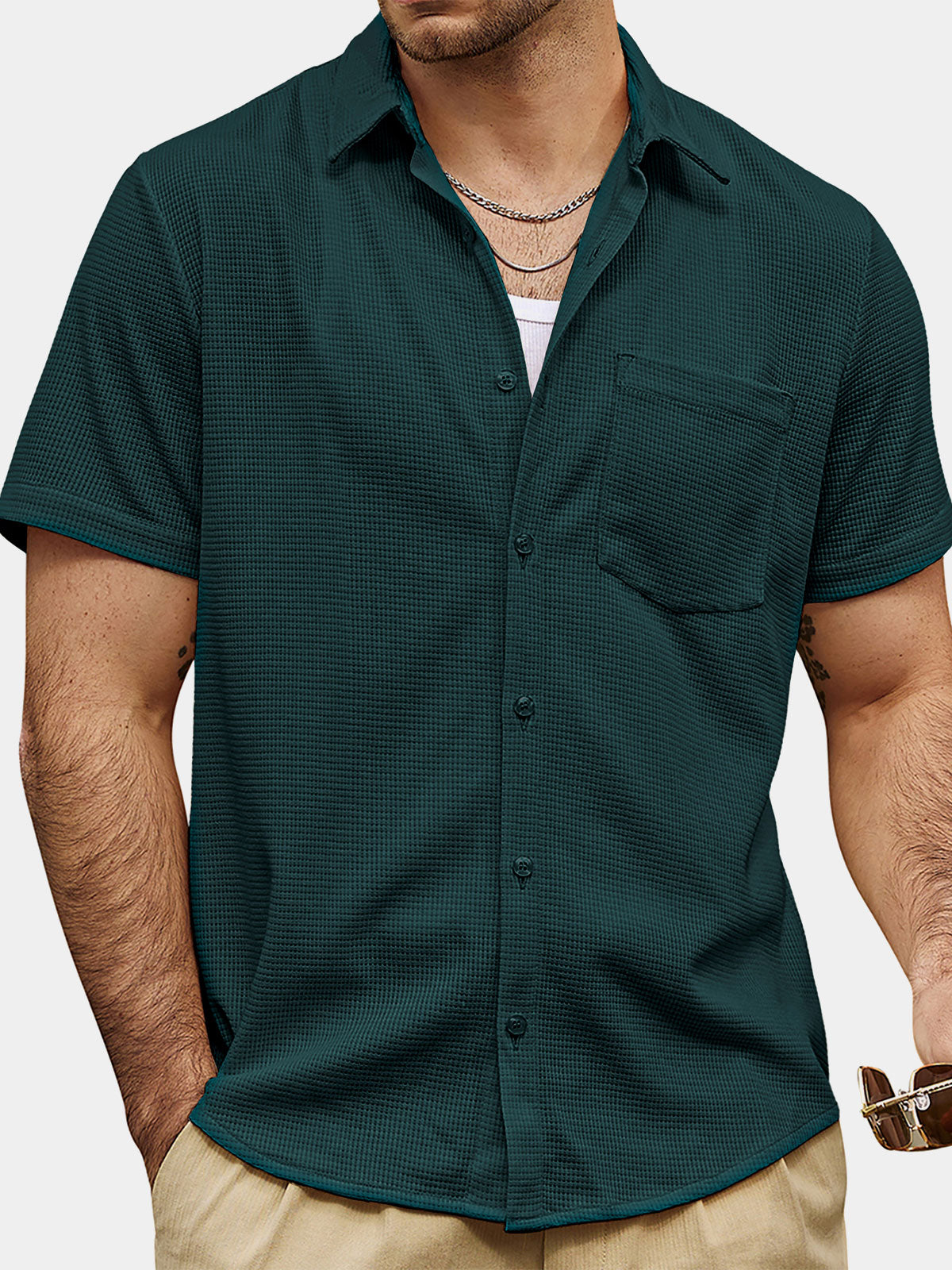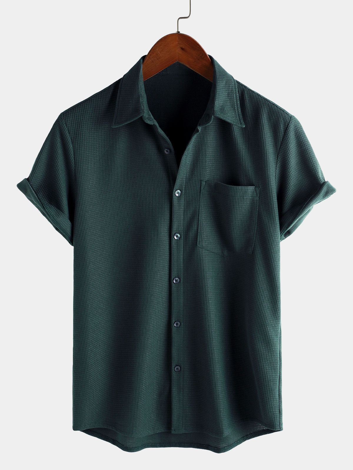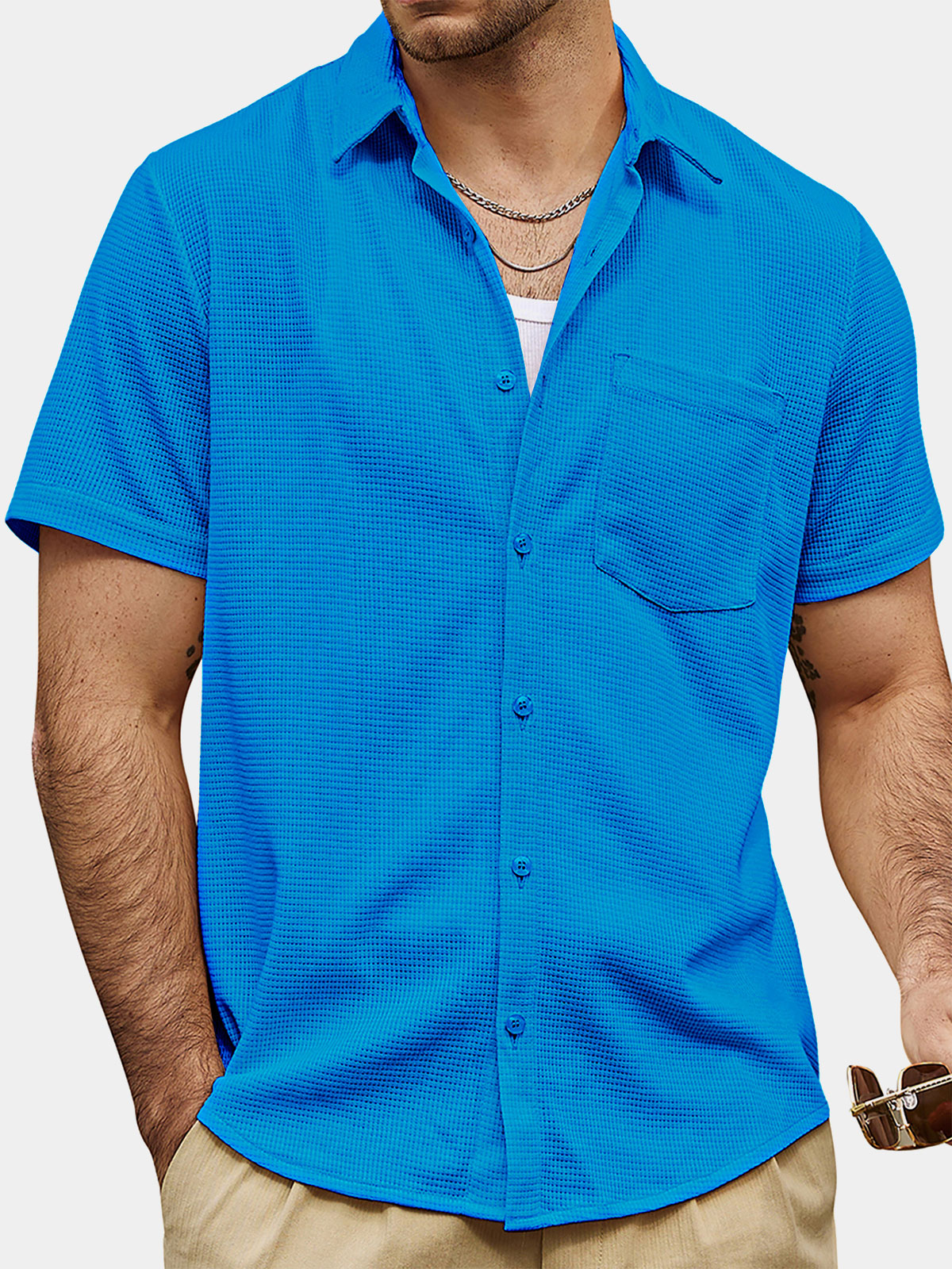 Men's Casual Waffle Summer Beach Short Sleeve Shirt