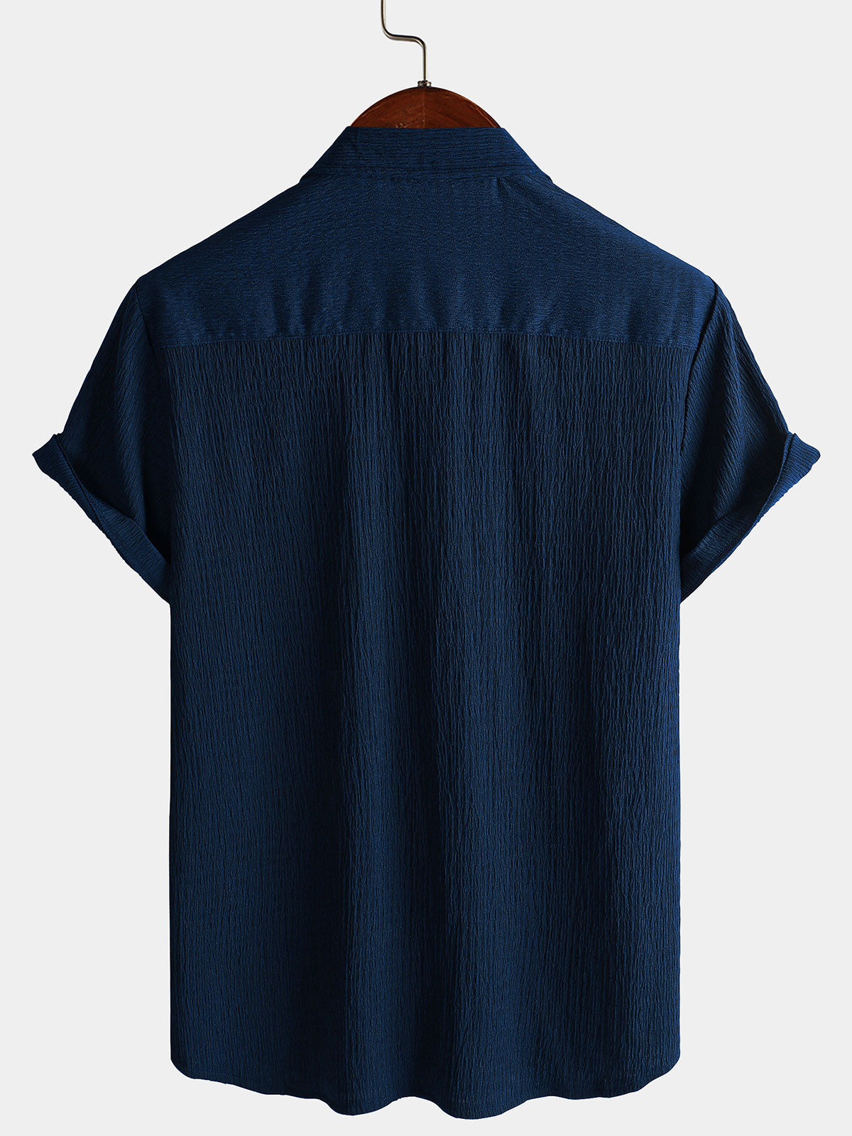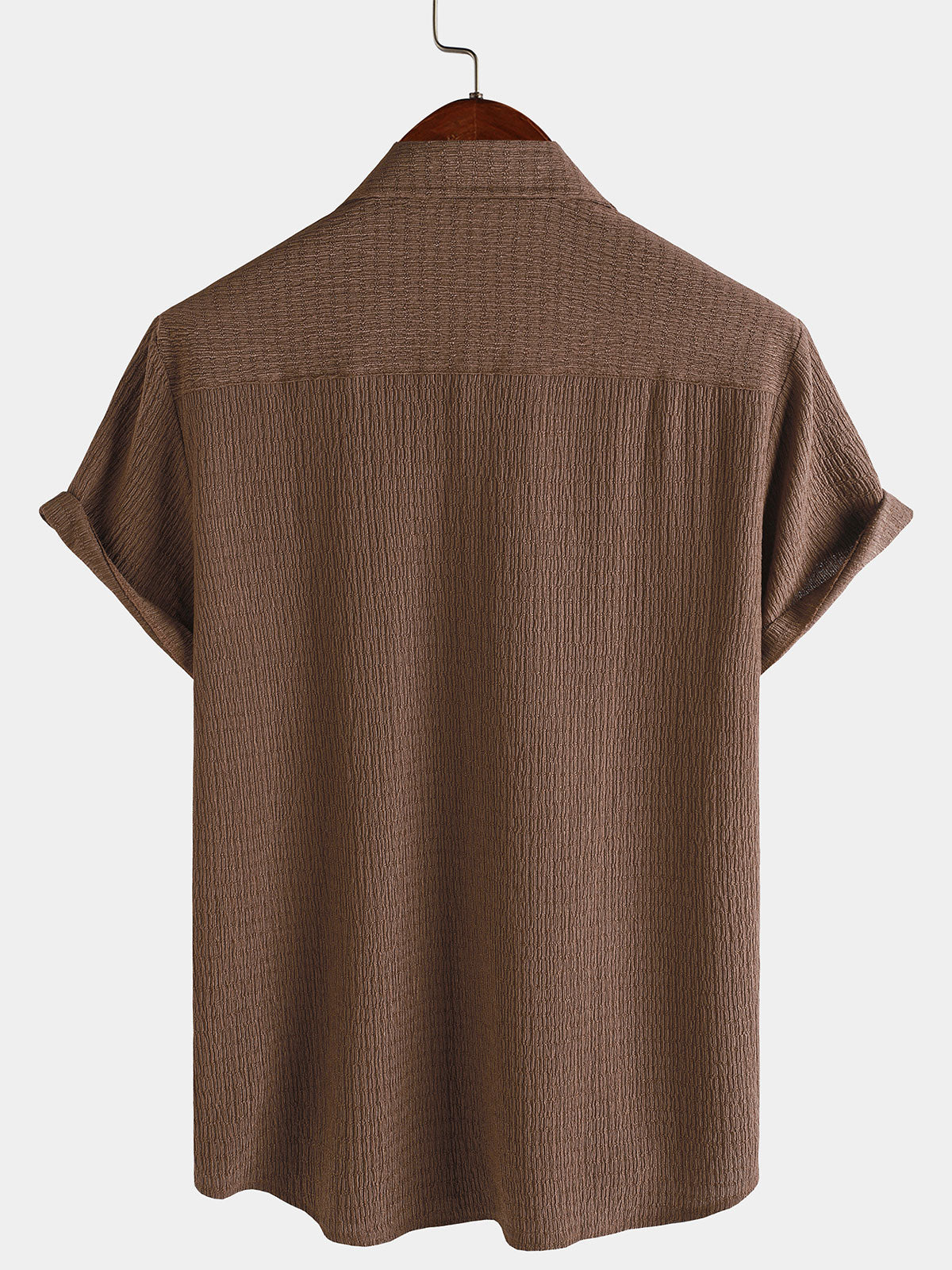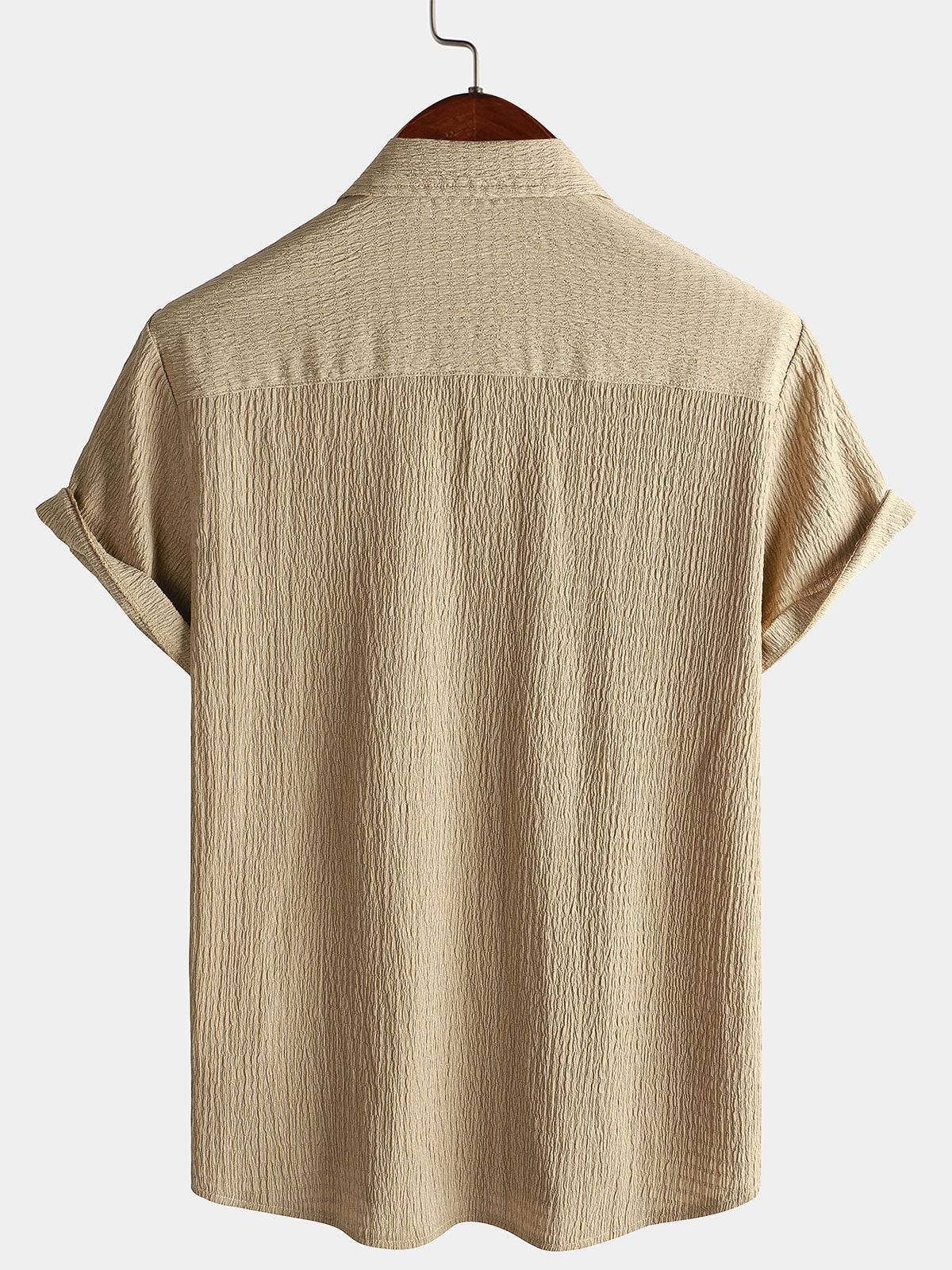 Men's Summer Solid Color Pocket Casual Short Sleeve Shirt
