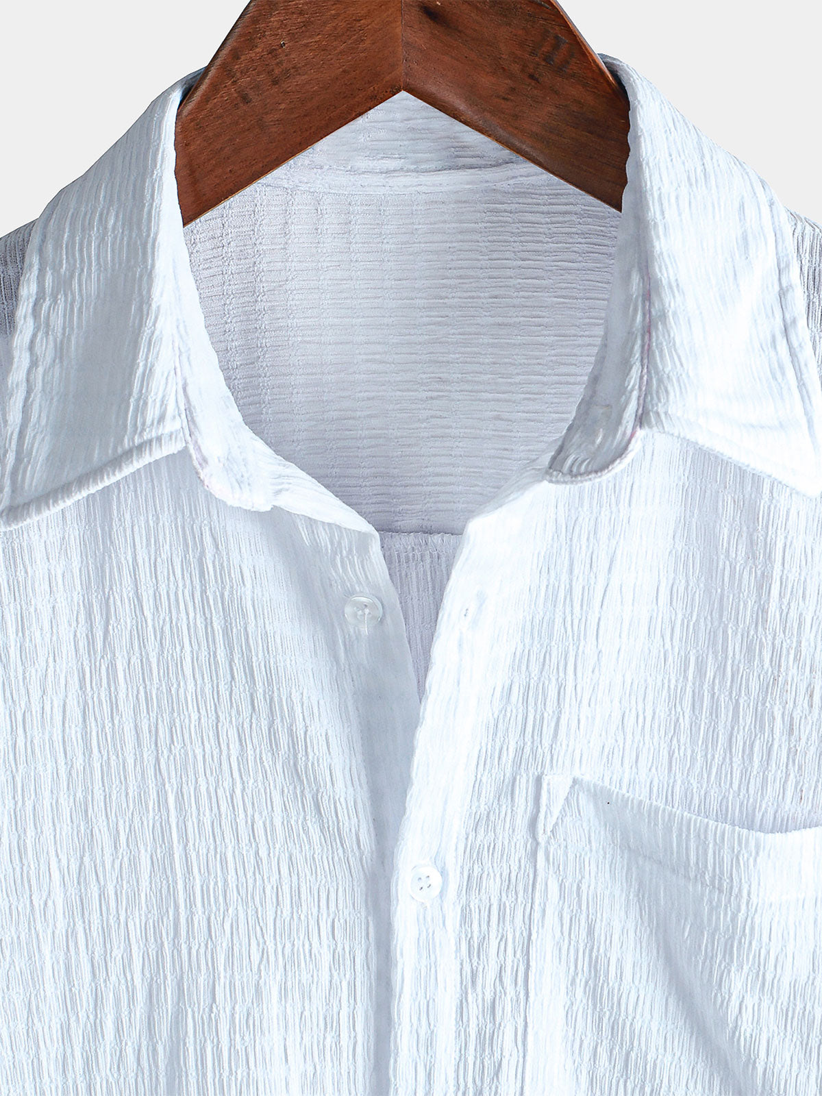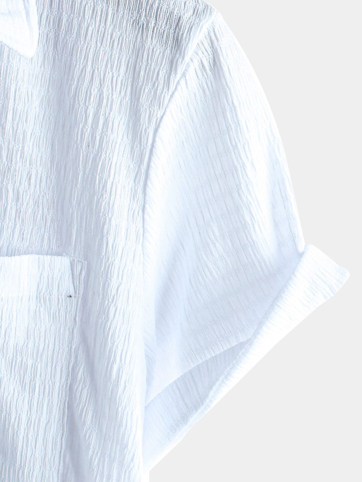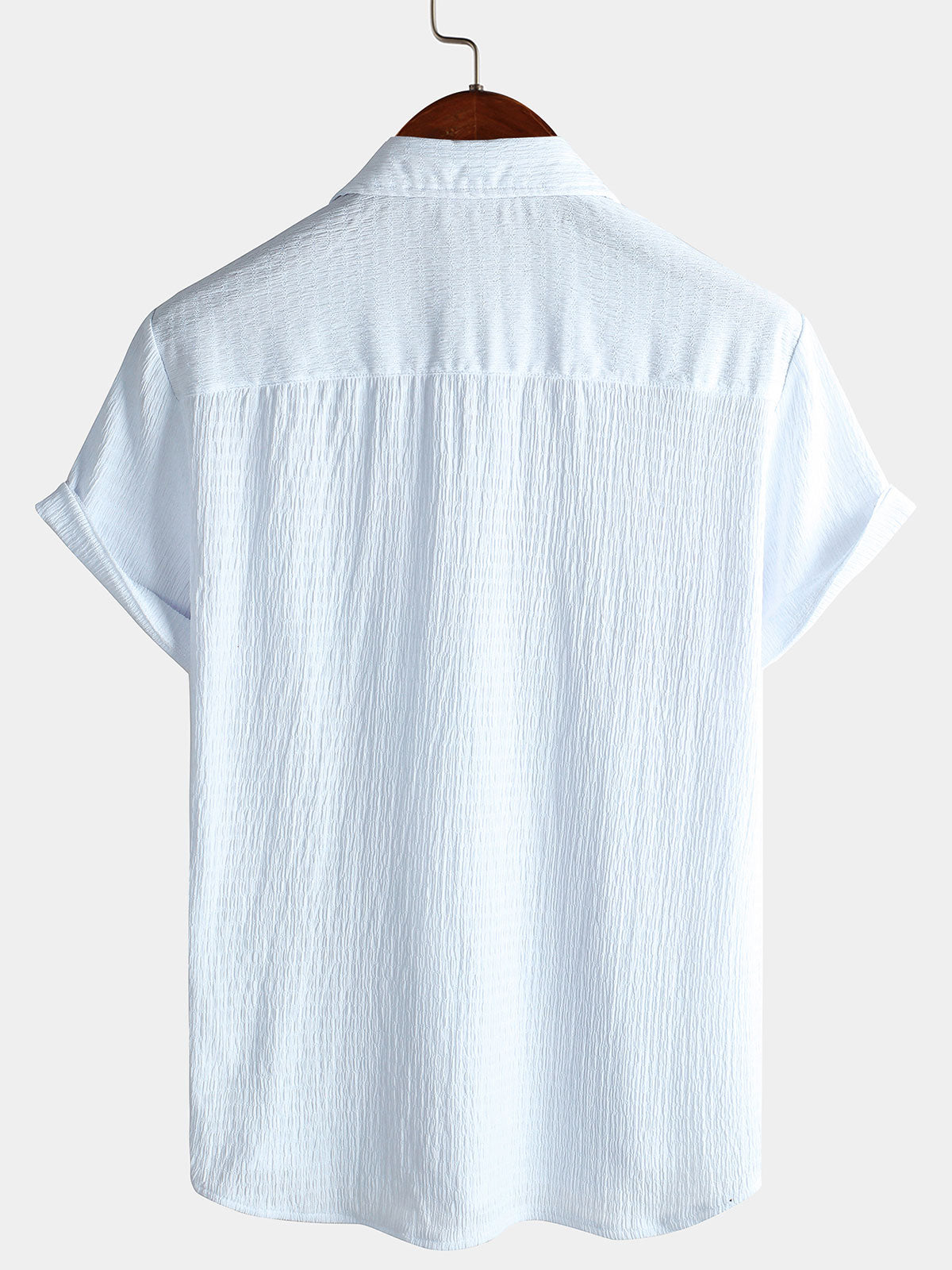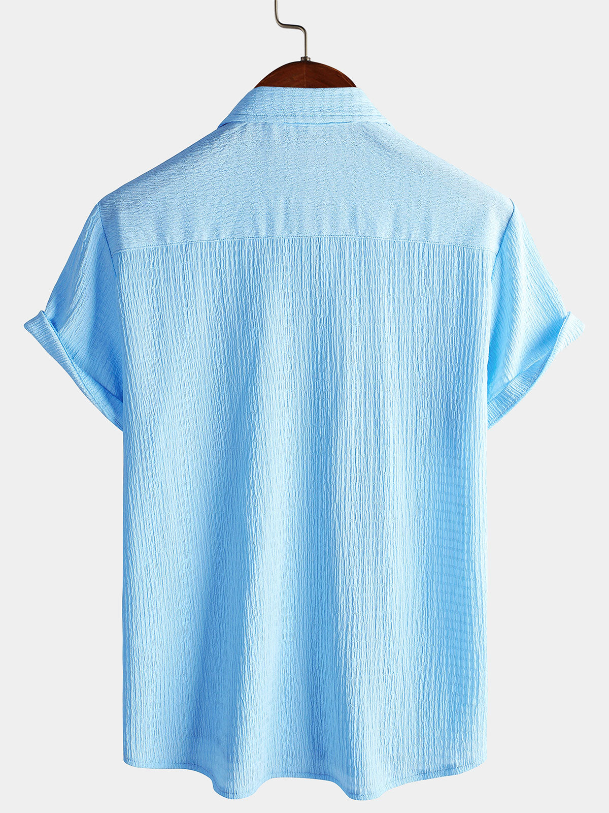 Men's Summer Solid Color Pocket Casual Short Sleeve Shirt