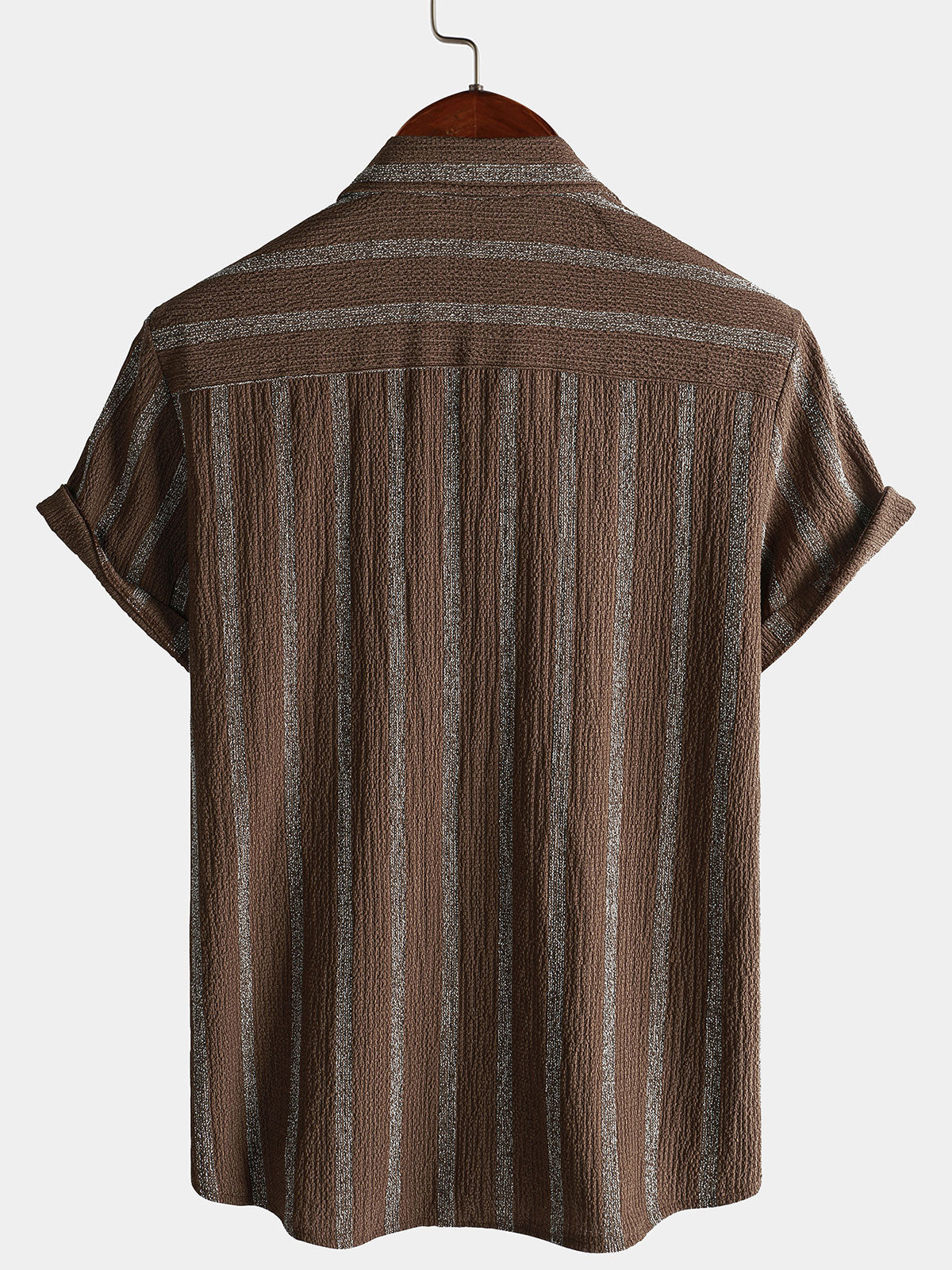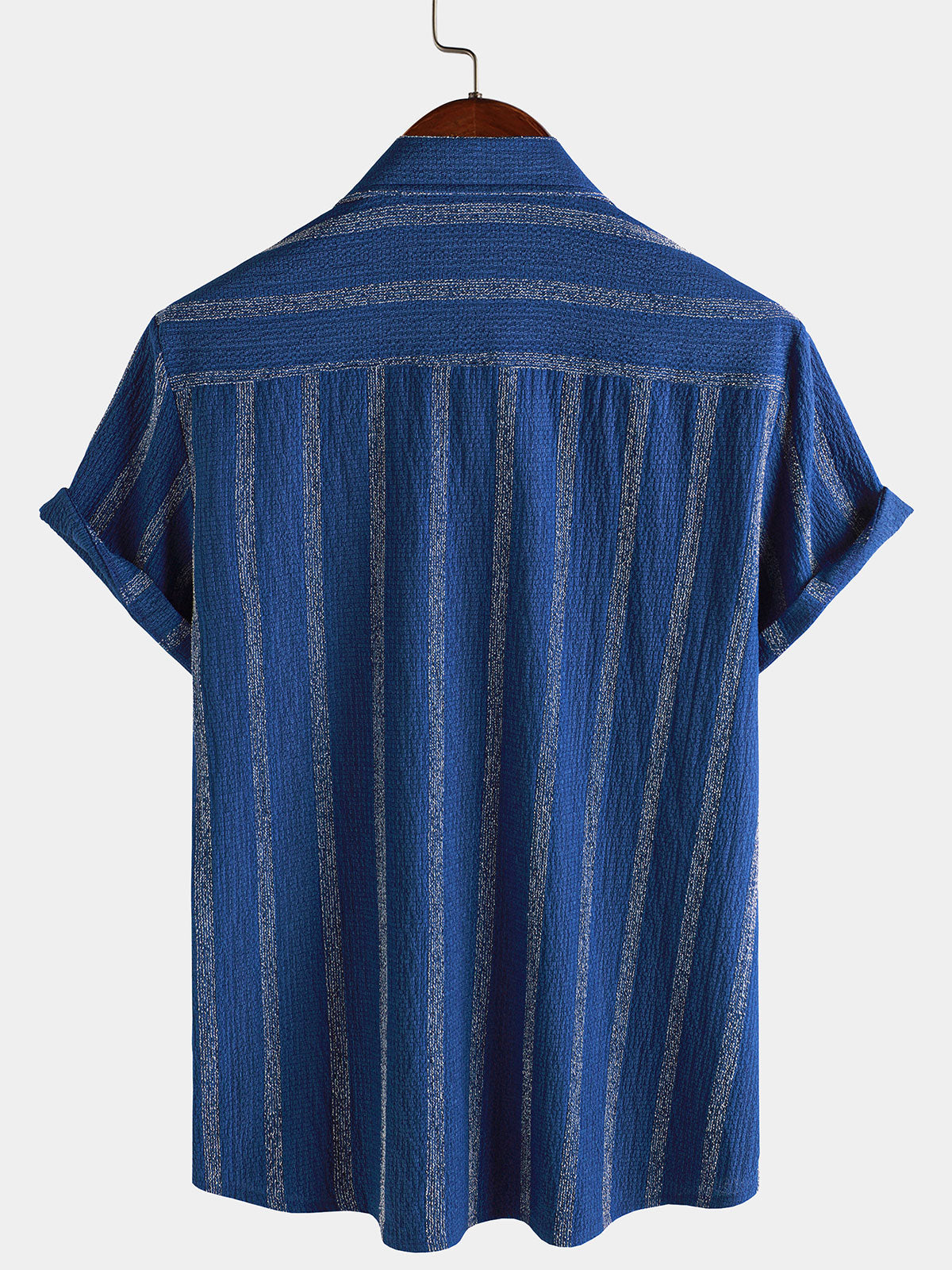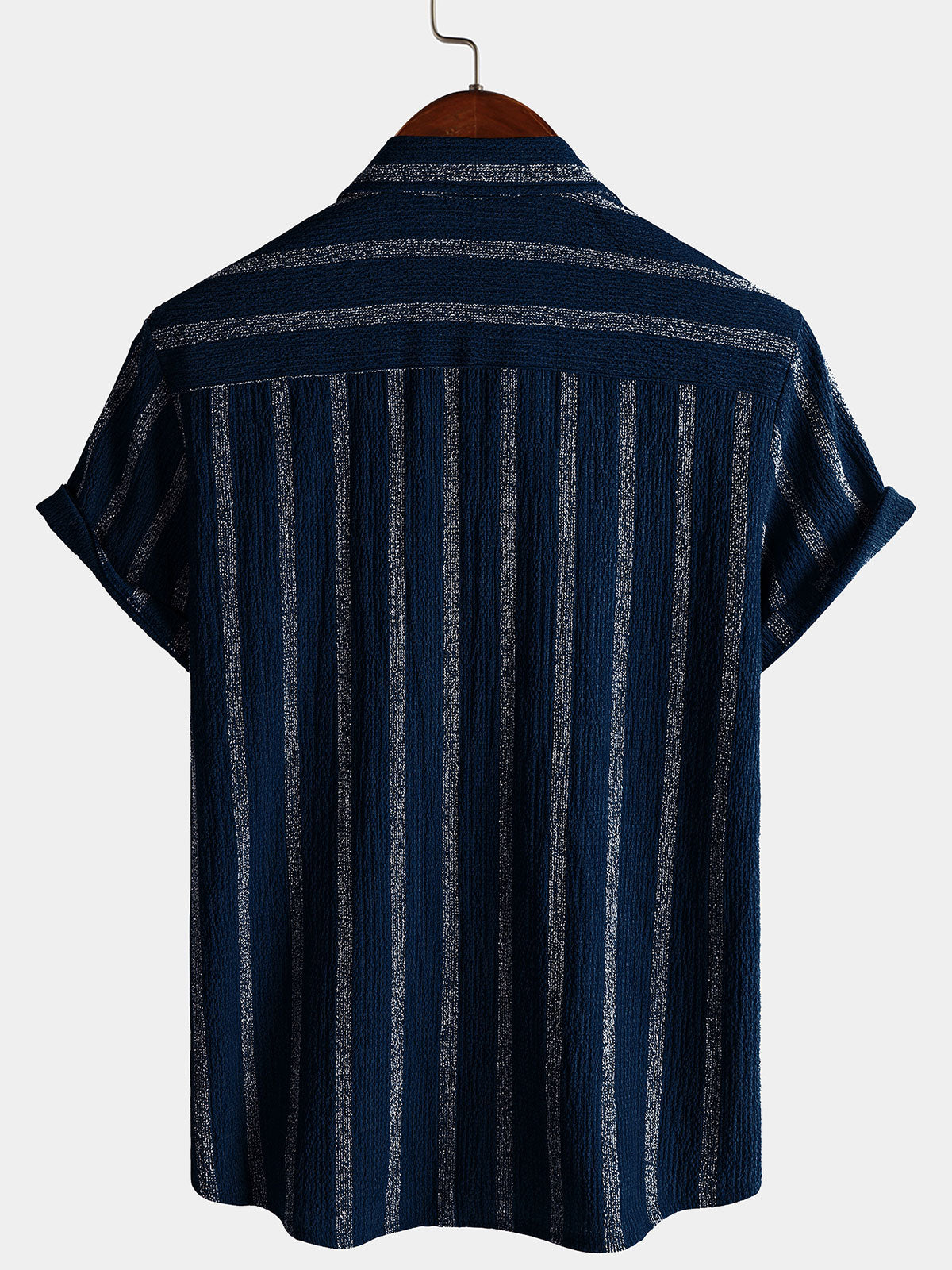 Men's Summer Striped Pocket Button Up Short Sleeve Hawaiian Shirt