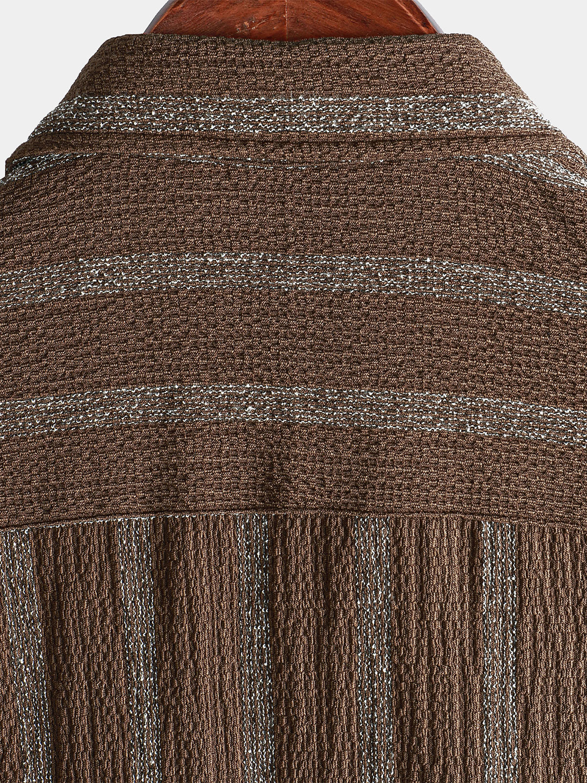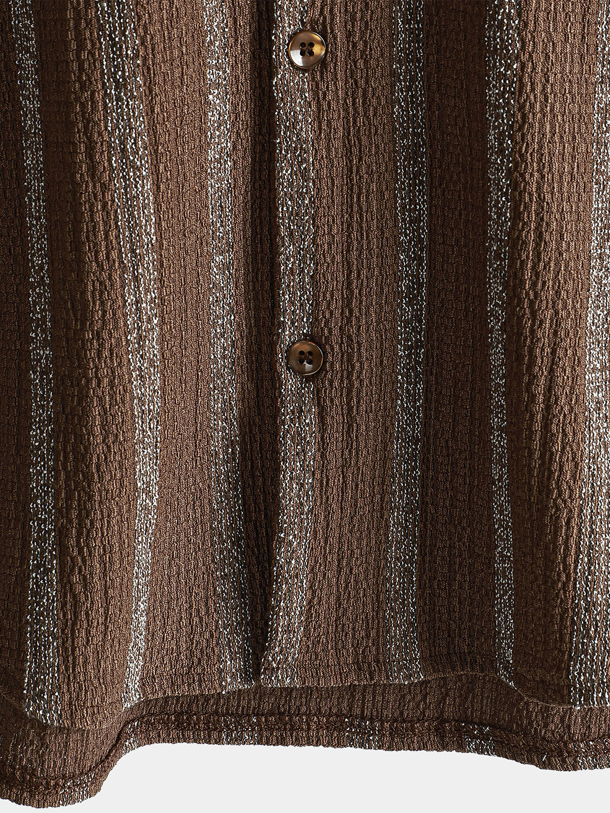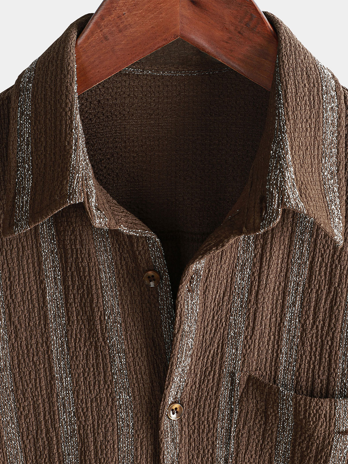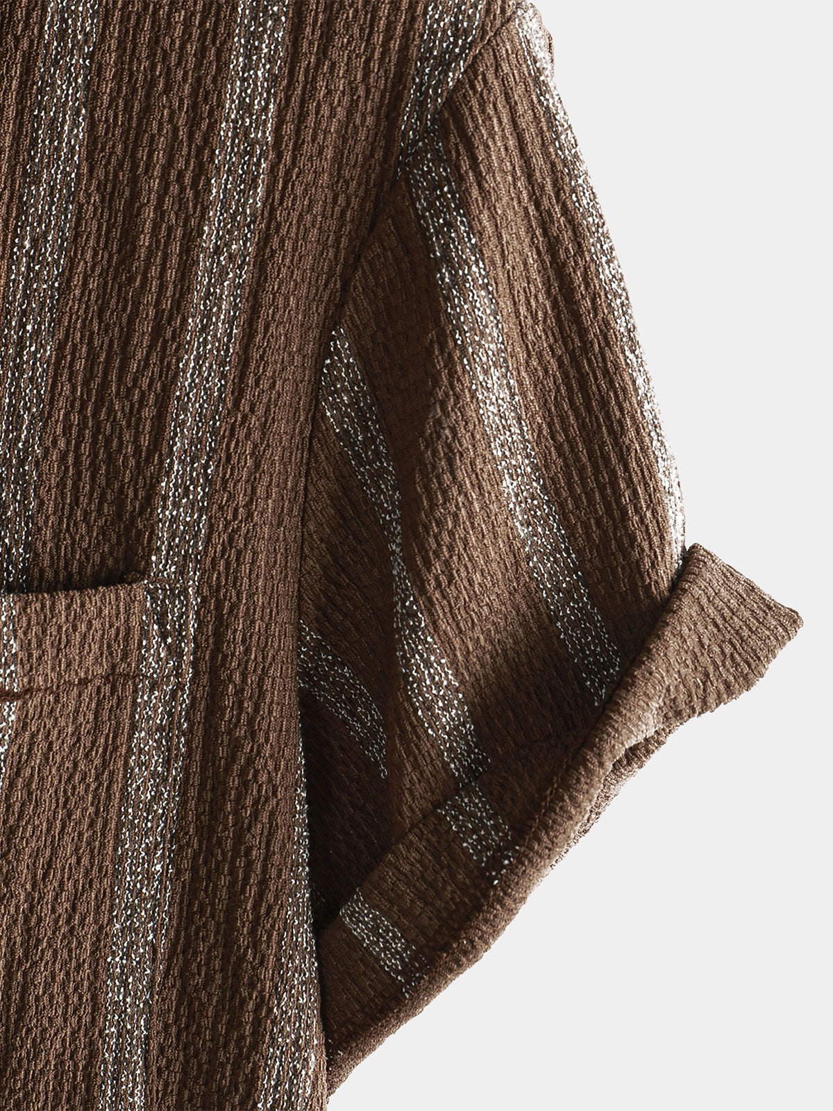 Men's Summer Striped Pocket Button Up Short Sleeve Hawaiian Shirt