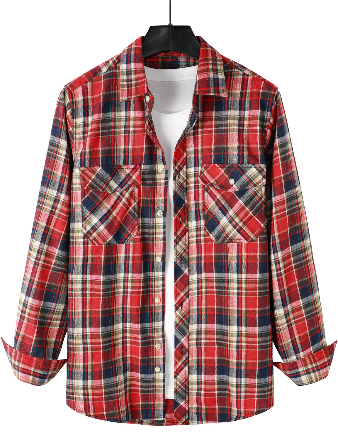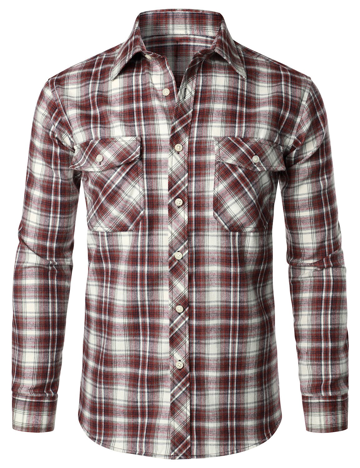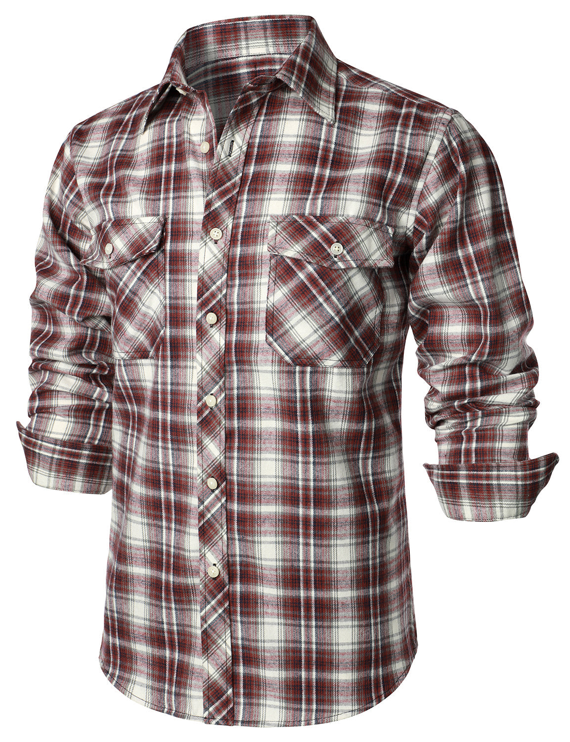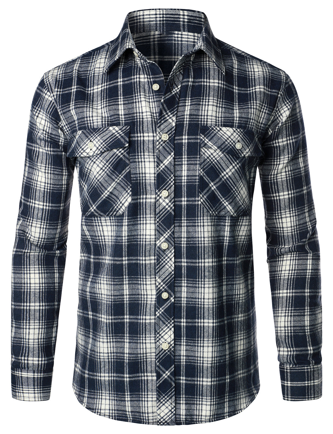 Men's Flannel Double Pocket Checkered Button Up Long Sleeve Casual Plaid Shirt