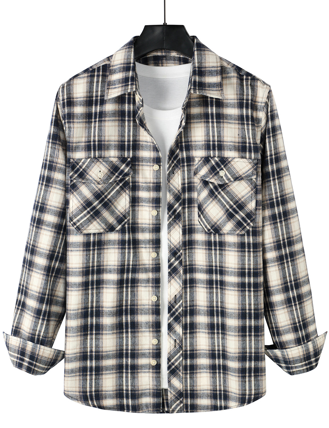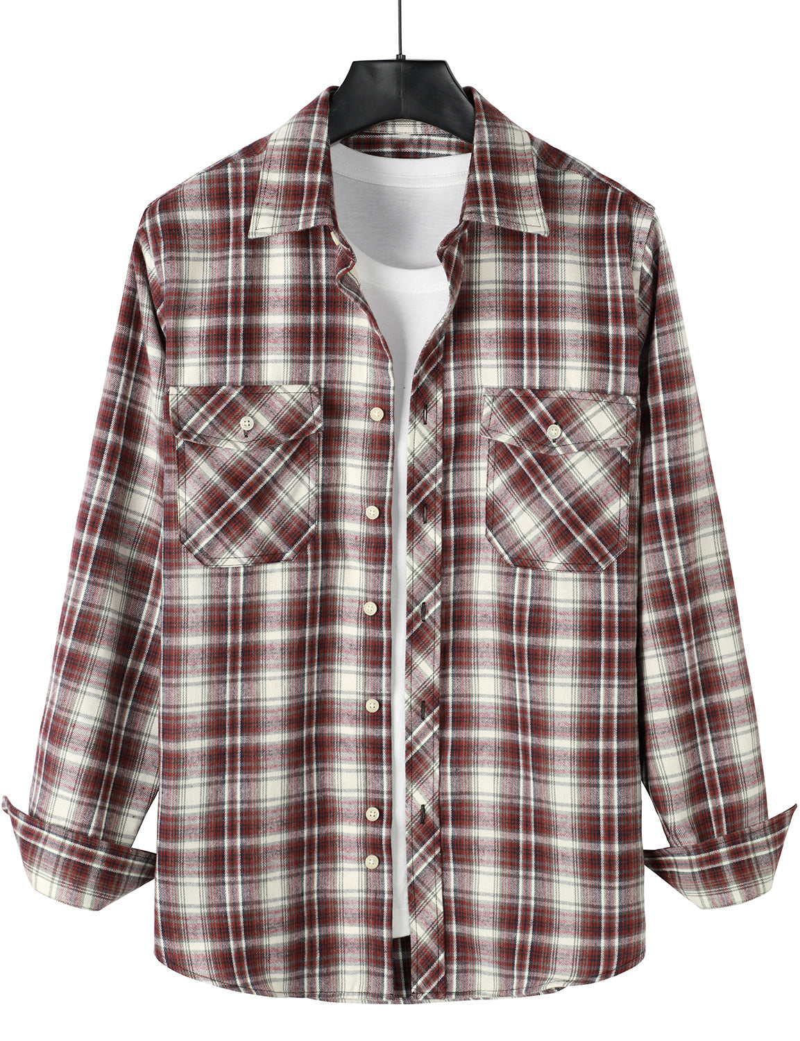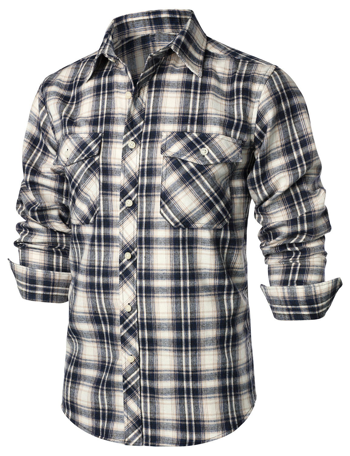 Men's Flannel Double Pocket Checkered Button Up Long Sleeve Casual Plaid Shirt