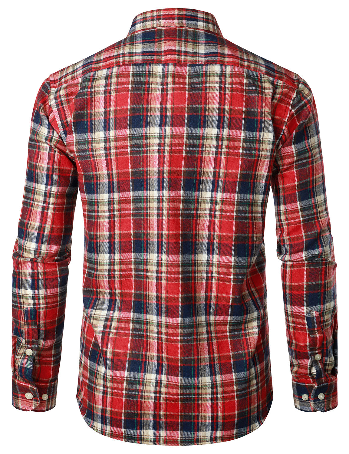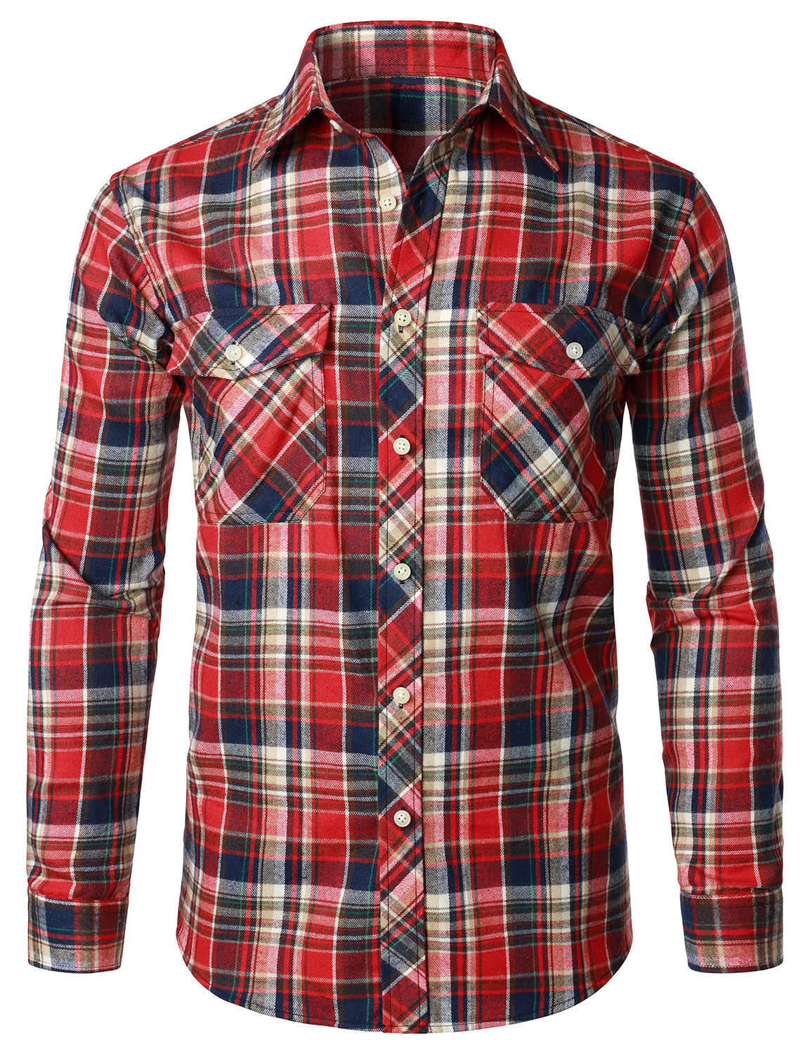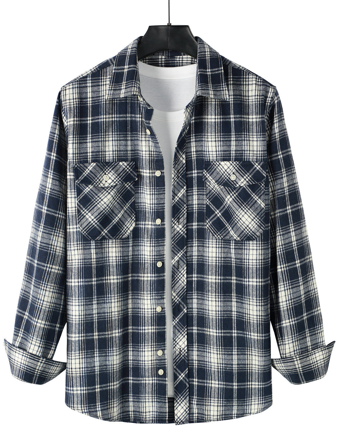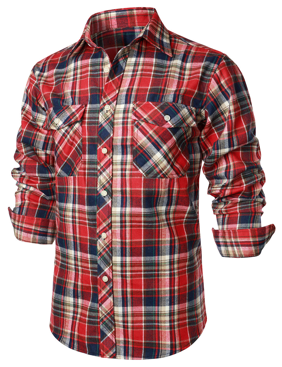 Men's Flannel Double Pocket Checkered Button Up Long Sleeve Casual Plaid Shirt