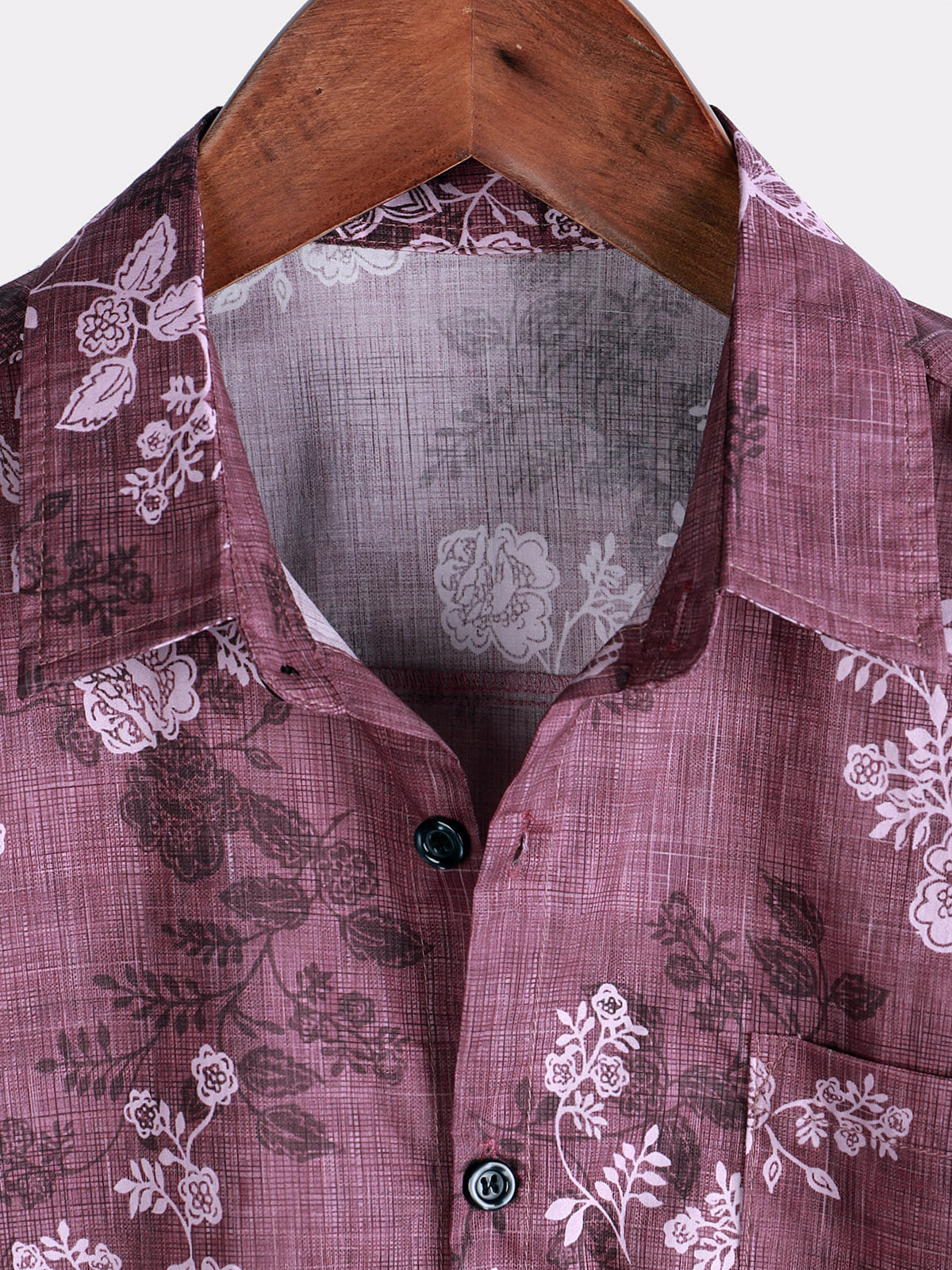 Men's Floral Print Hawaiian Button Holiday Short Sleeve Shirt