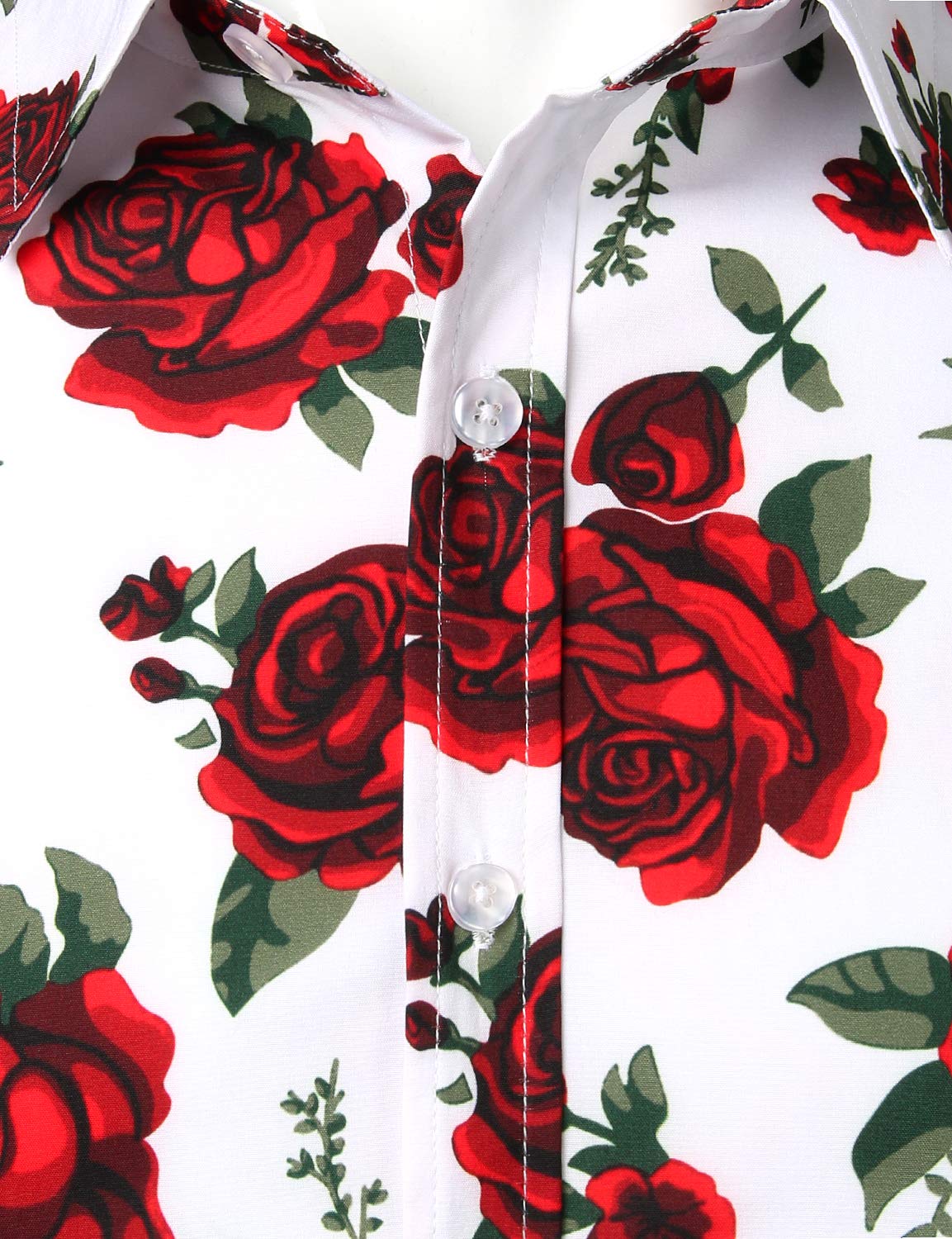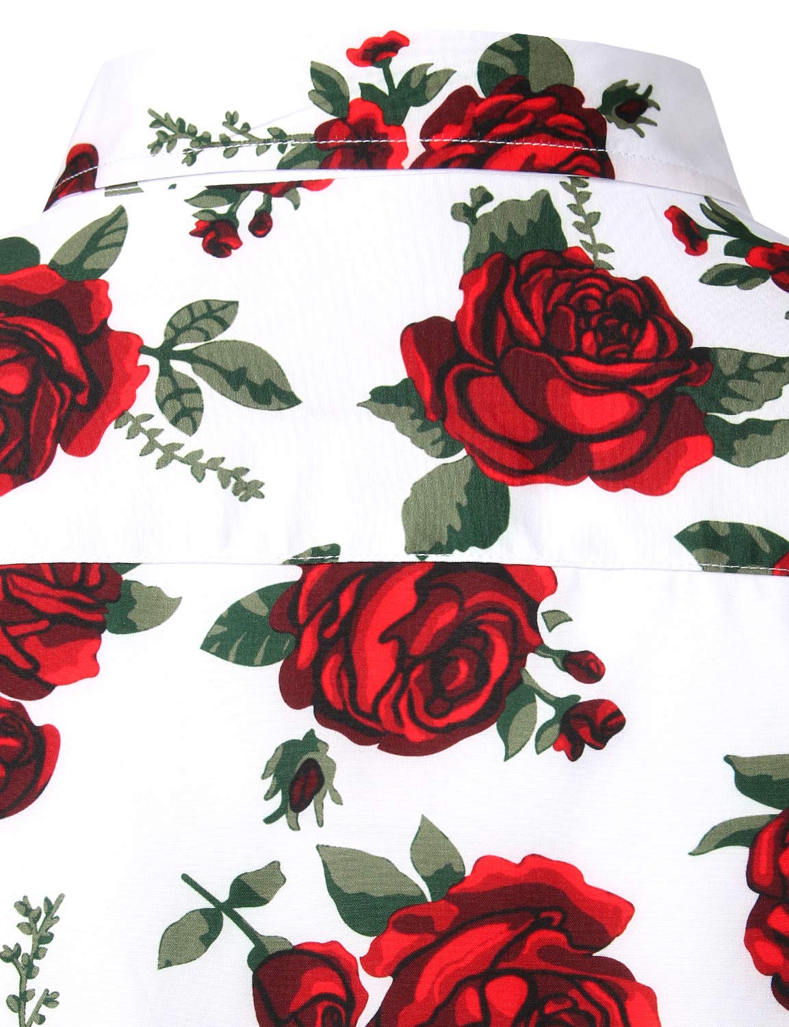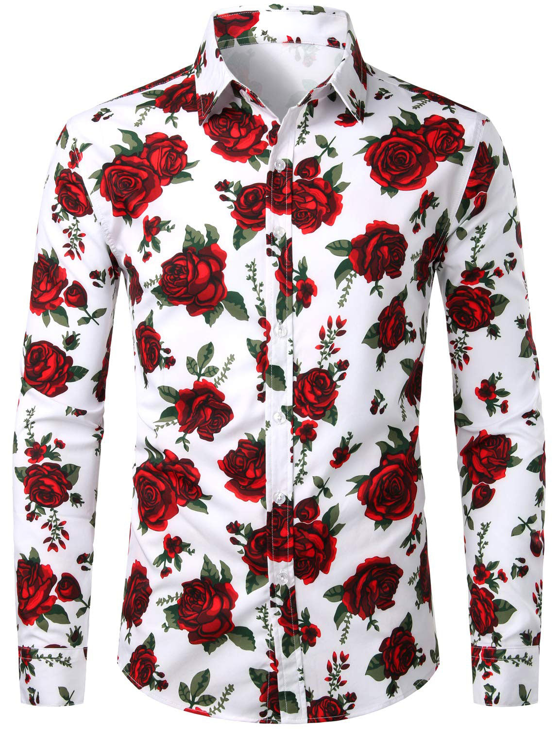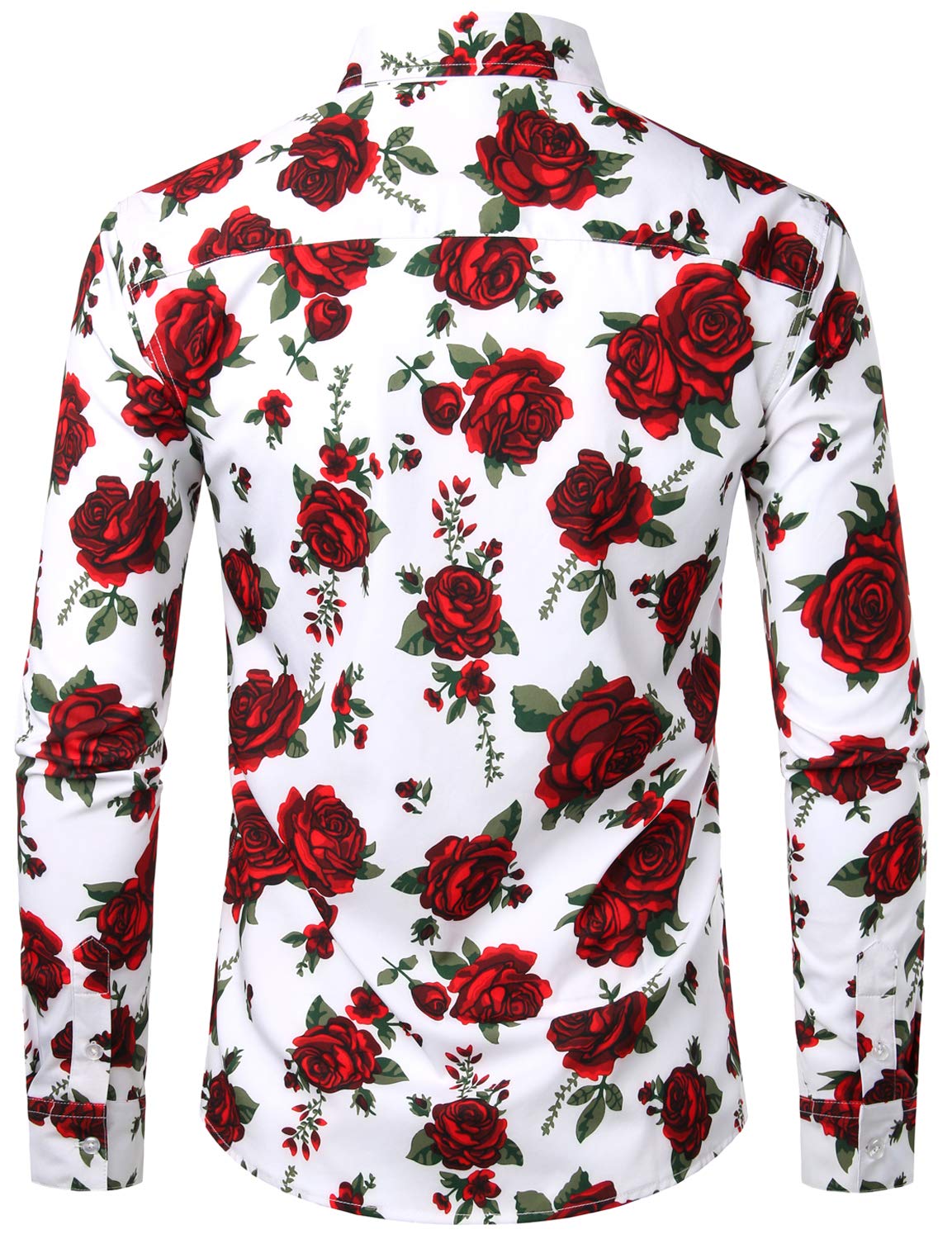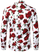 Men's Red Rose Casual Button Long Sleeve Shirt