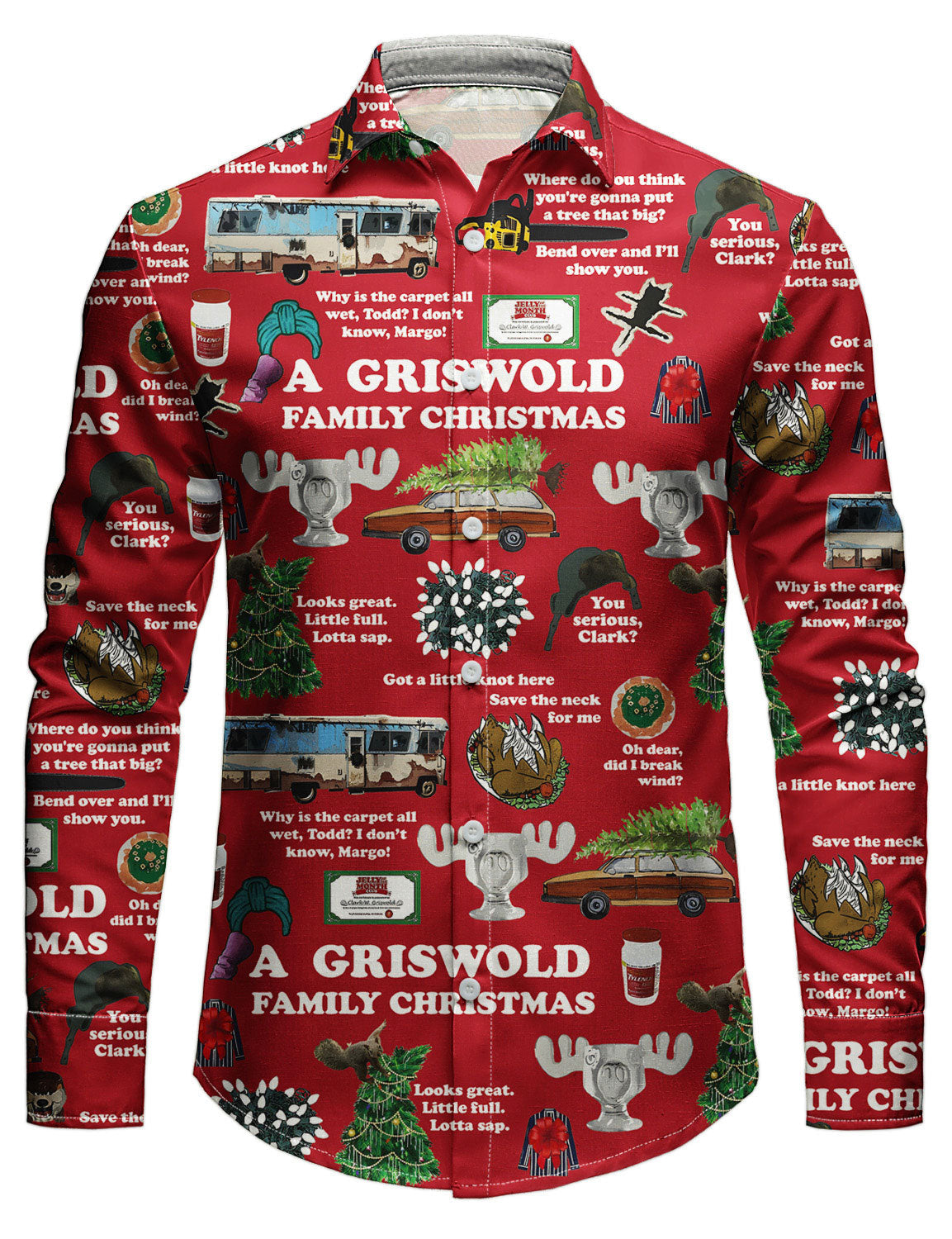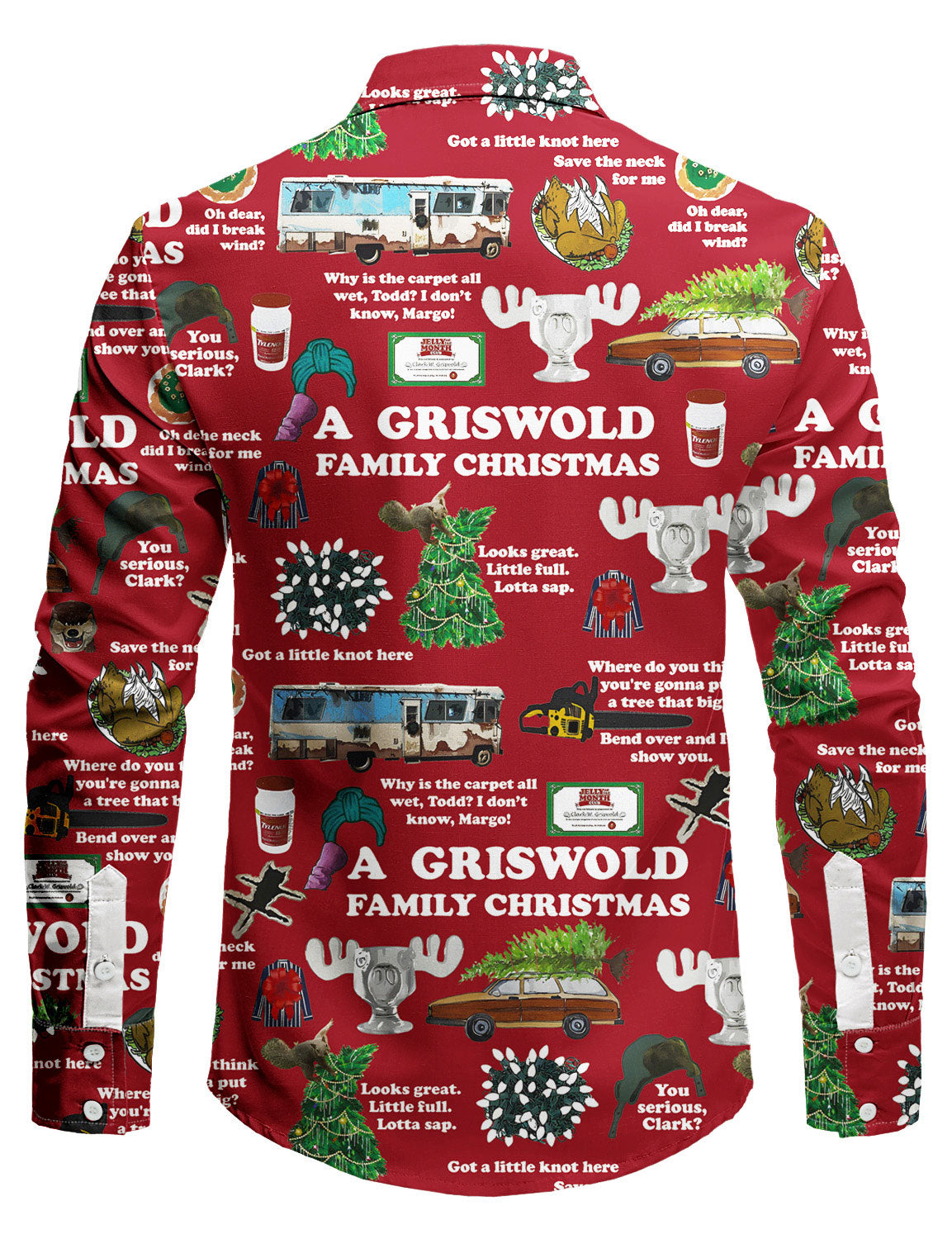 Men's Family Christmas Funny Print Red Long Sleeve Button Shirt