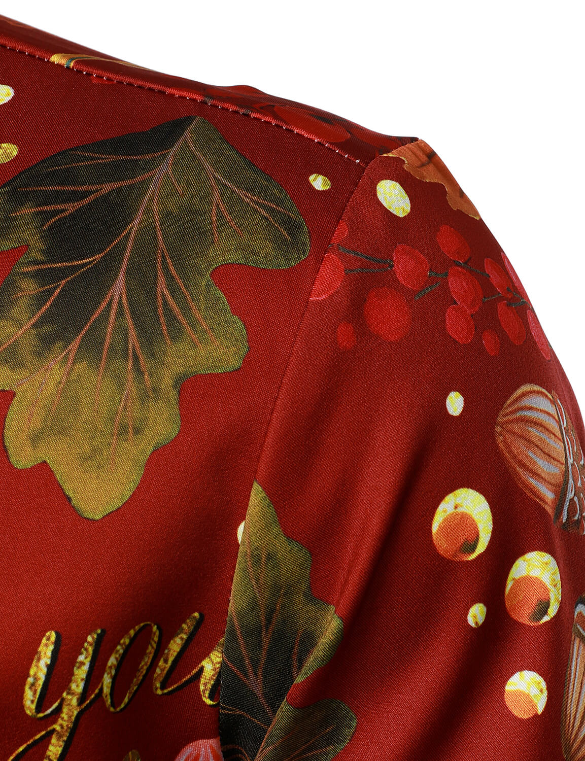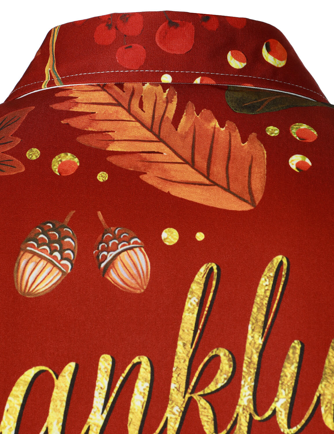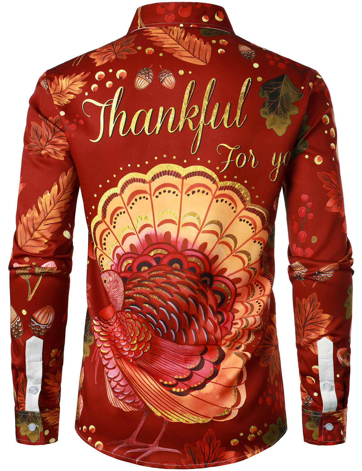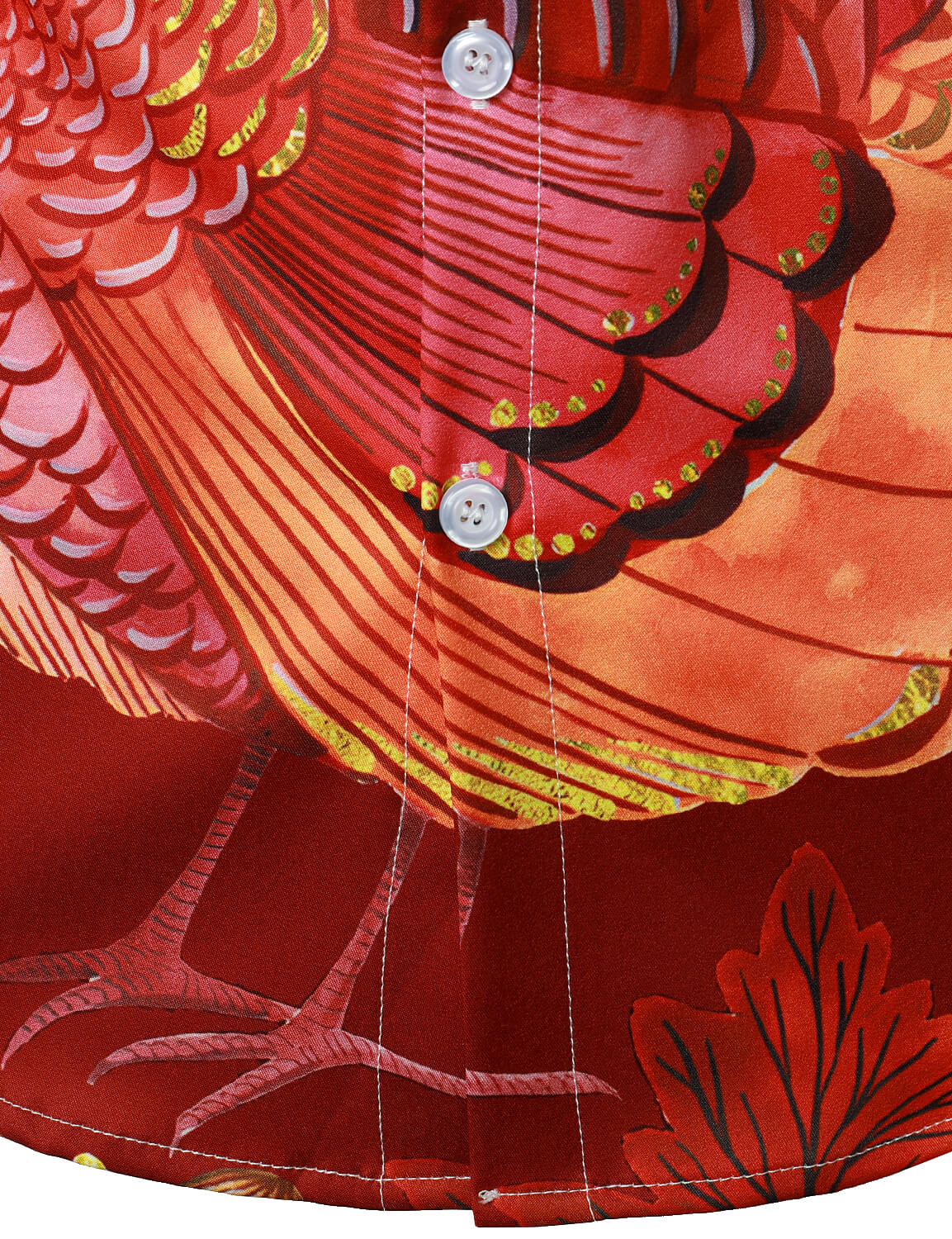 Men's Thanksgiving Festival Turkey Gift Button Burgundy Long Sleeve Shirt
