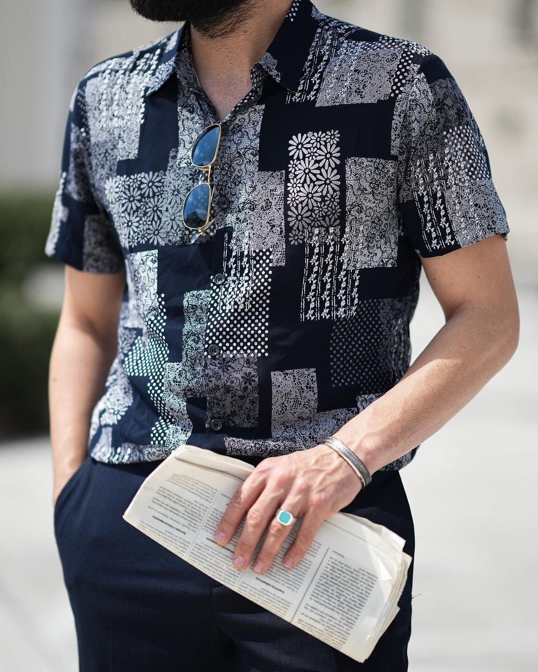 Navy Blue Men's Retro Button Up Short Sleeve Cotton 70s Shirt Brown Men's Retro Button Up Short Sleeve Cotton 70s Shirt White Men's Retro Button Up Short Sleeve Cotton 70s Shirt Black Men's Retro Button Up Short Sleeve Cotton 70s Shirt + 1 more
