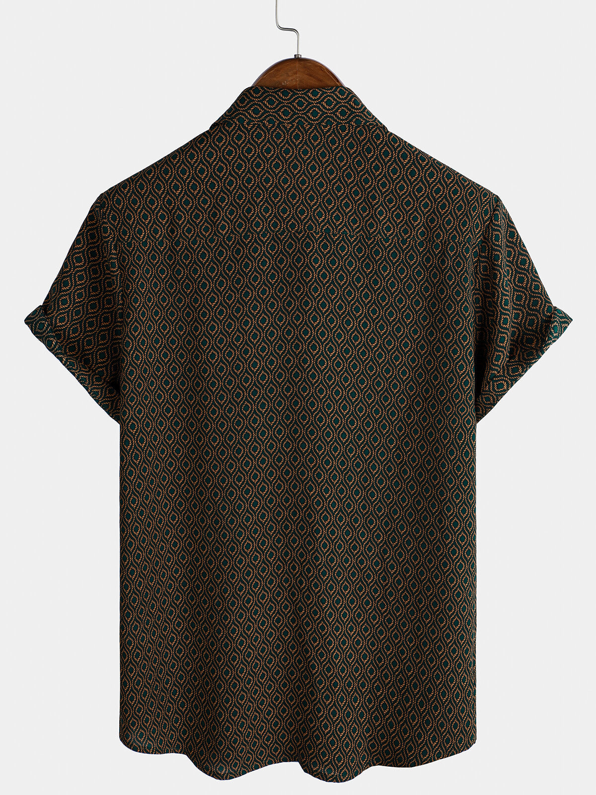 Men's Casual Holiday Short Sleeve Button Up Retro Shirt