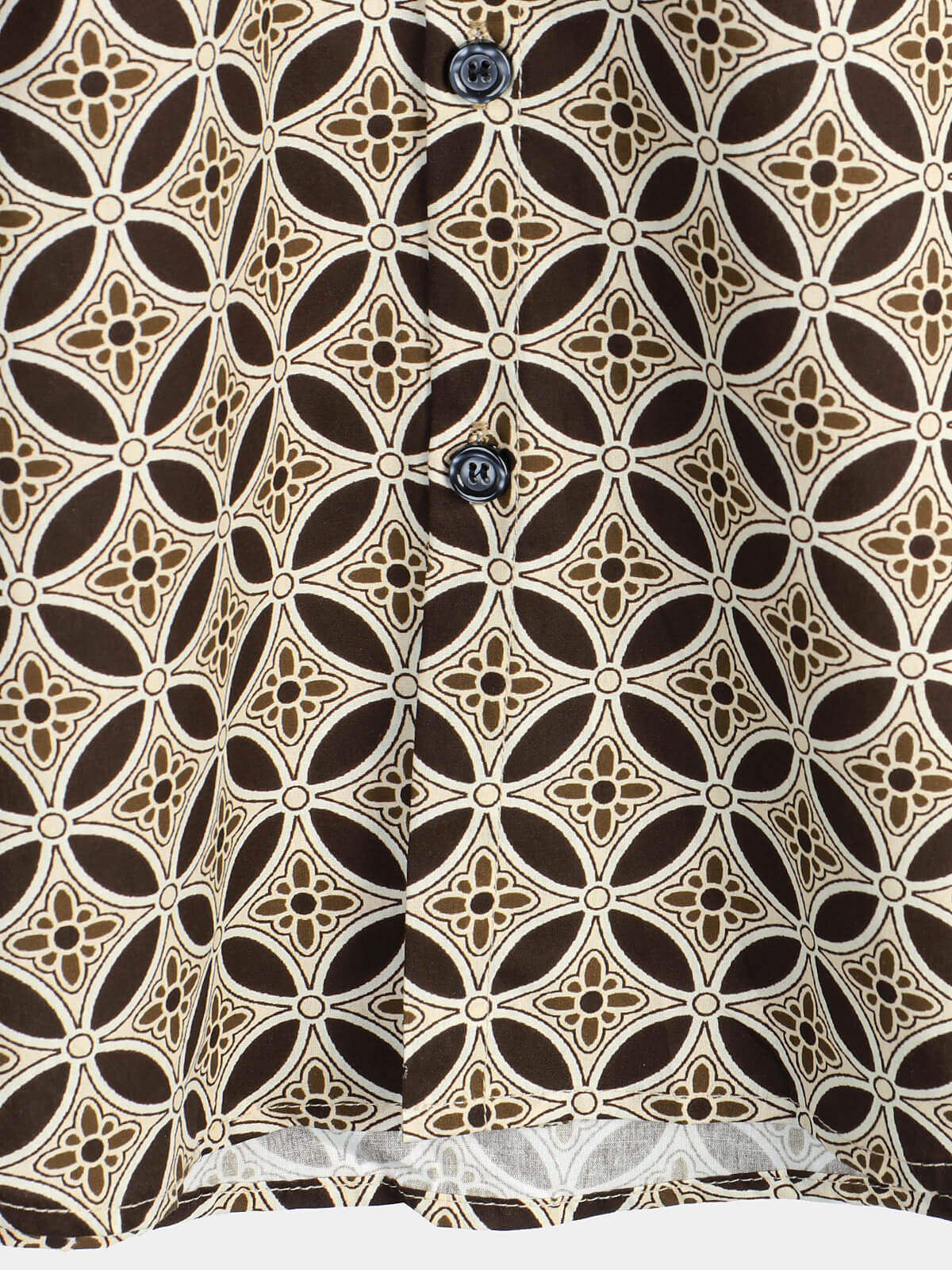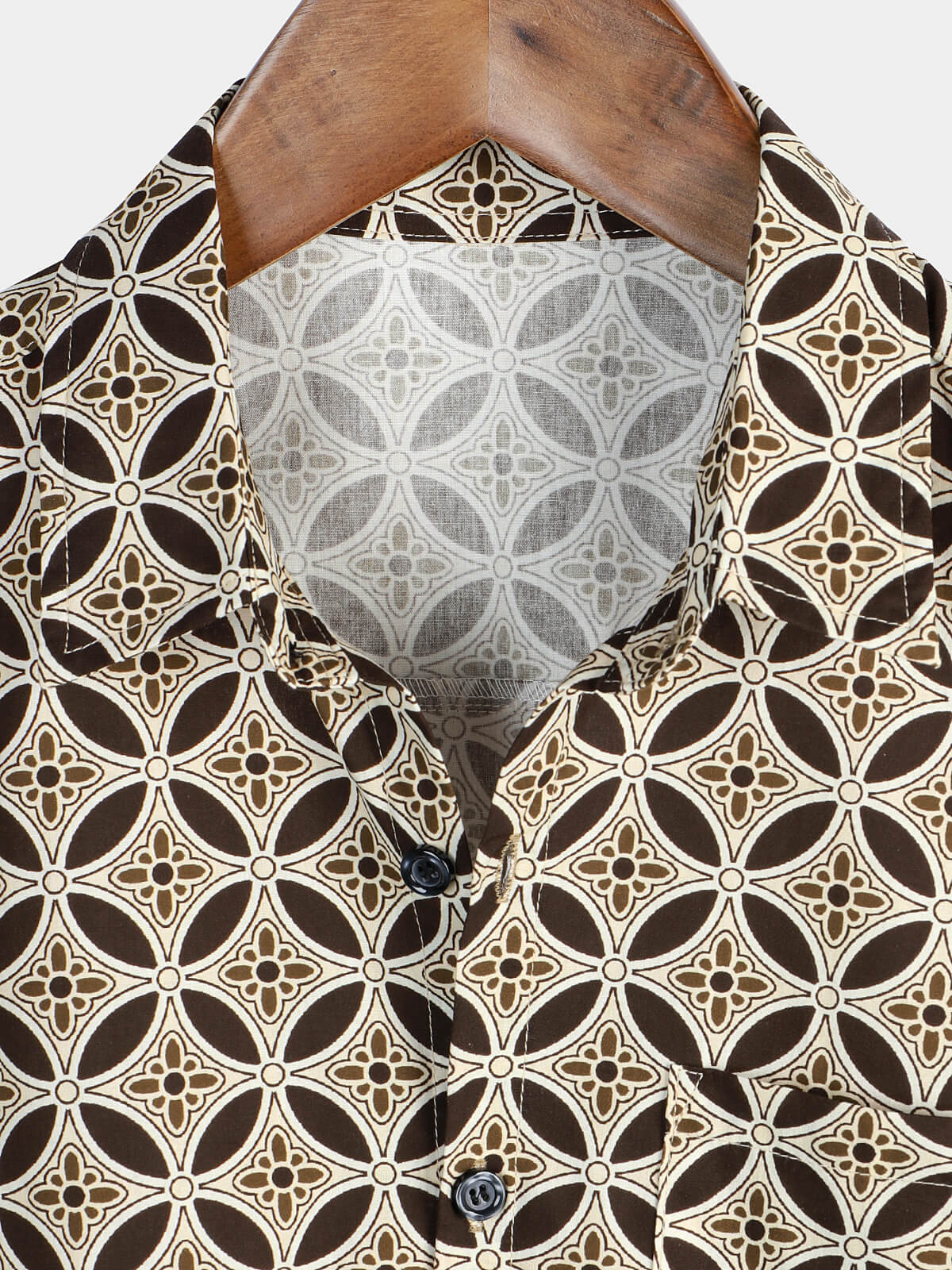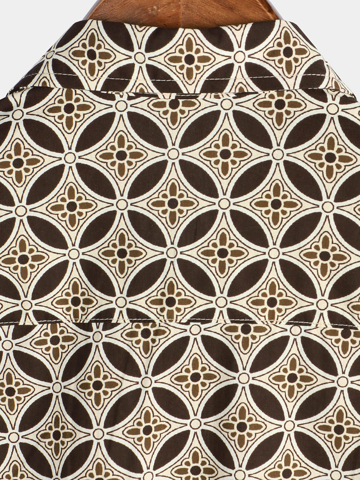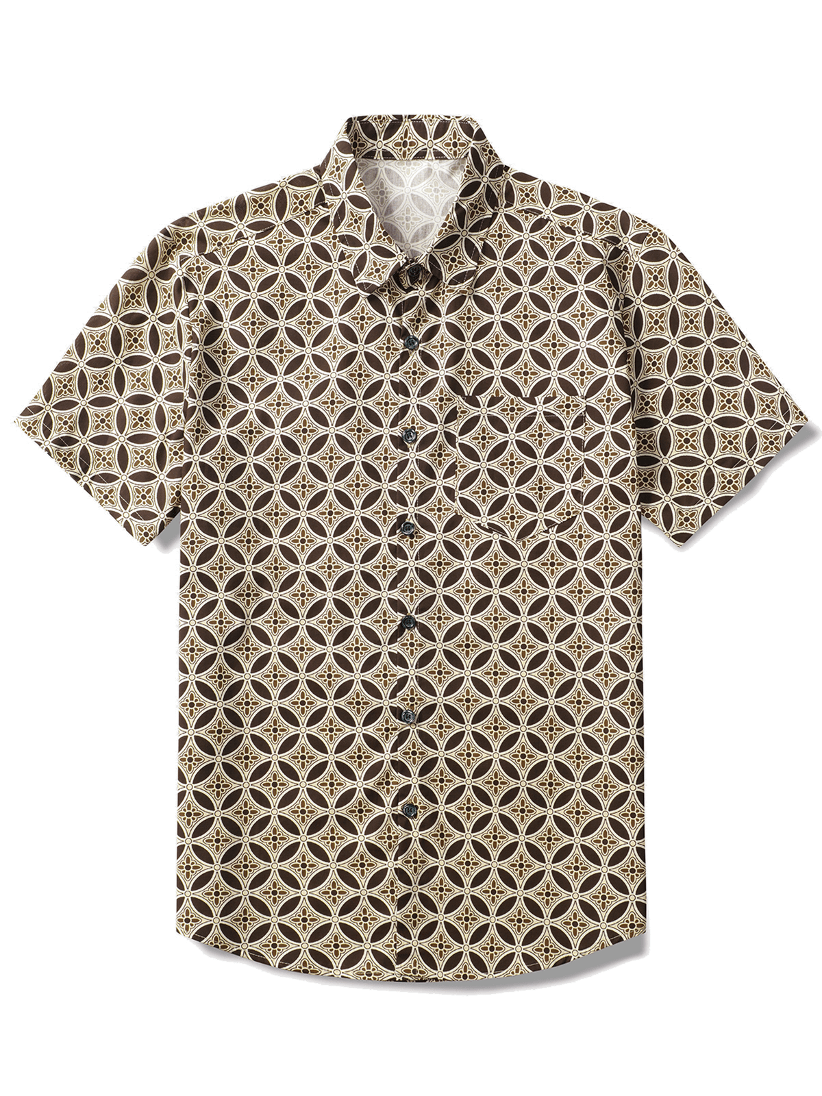 Men's Khaki Geometric Floral Pocket Short Sleeve Shirt