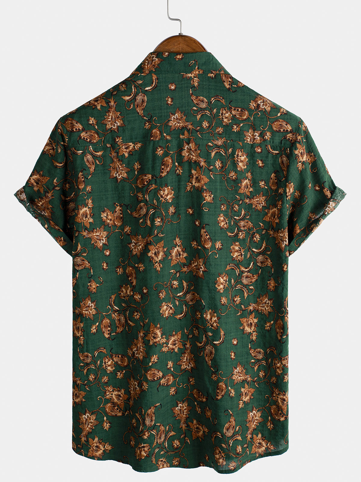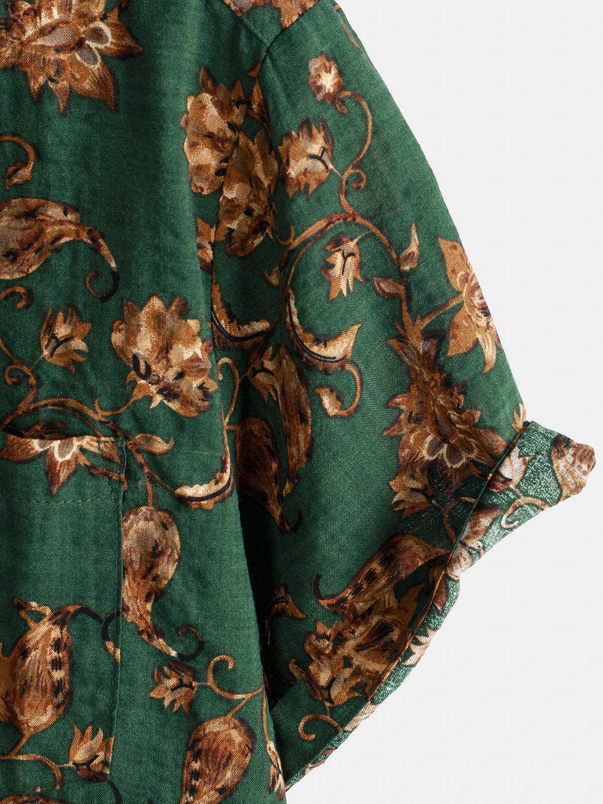 Men's Retro Floral Print Pocket Breathable Short Sleeve Shirt
