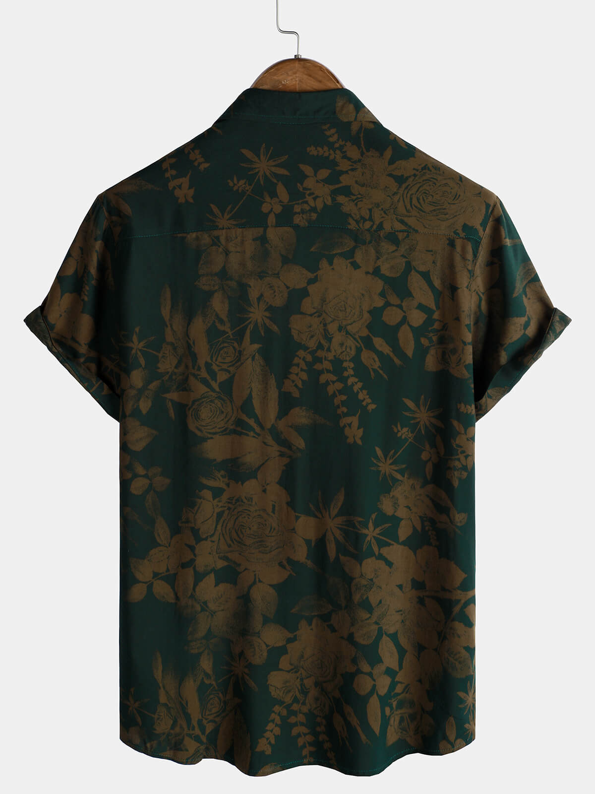 Men's Retro Floral Print Short Sleeve Resort Shirt