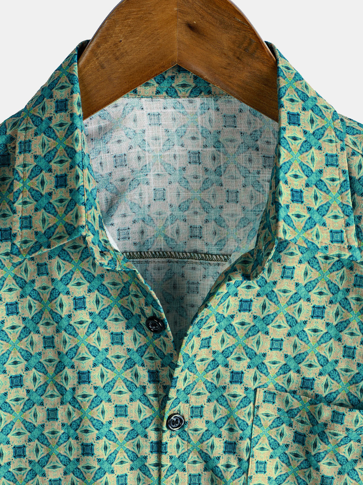 Men's Casual Retro Summer Beach Cotton Short Sleeve Shirt