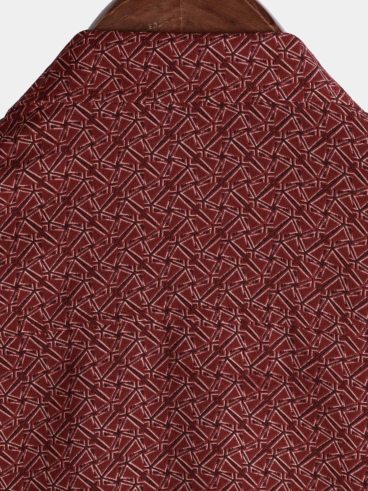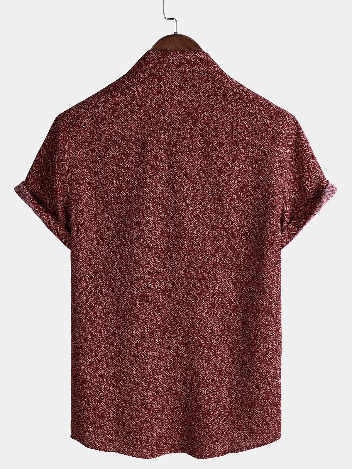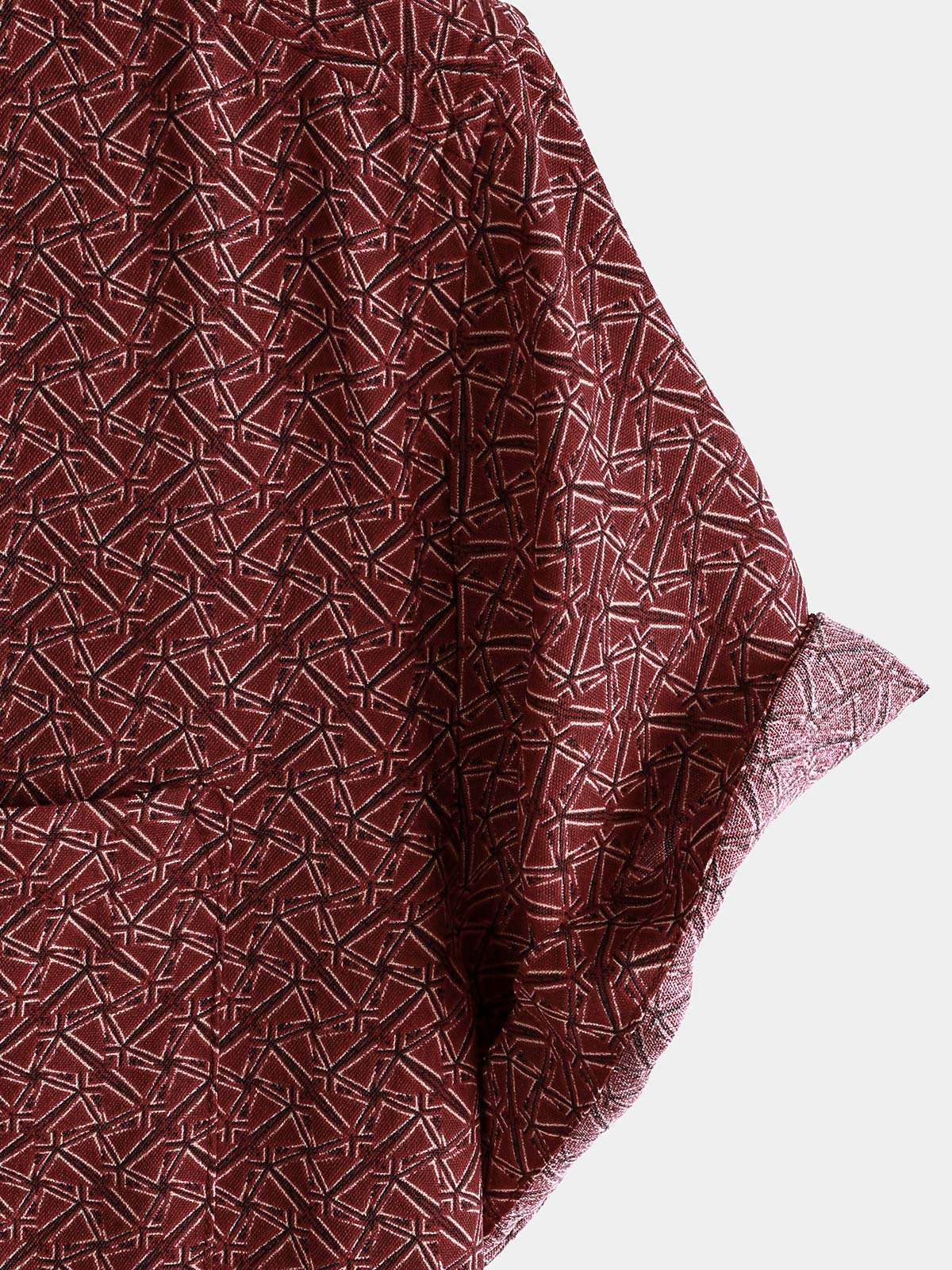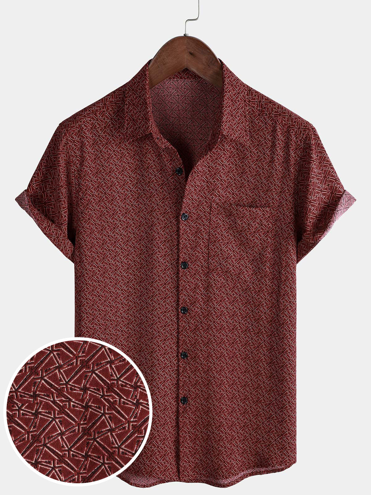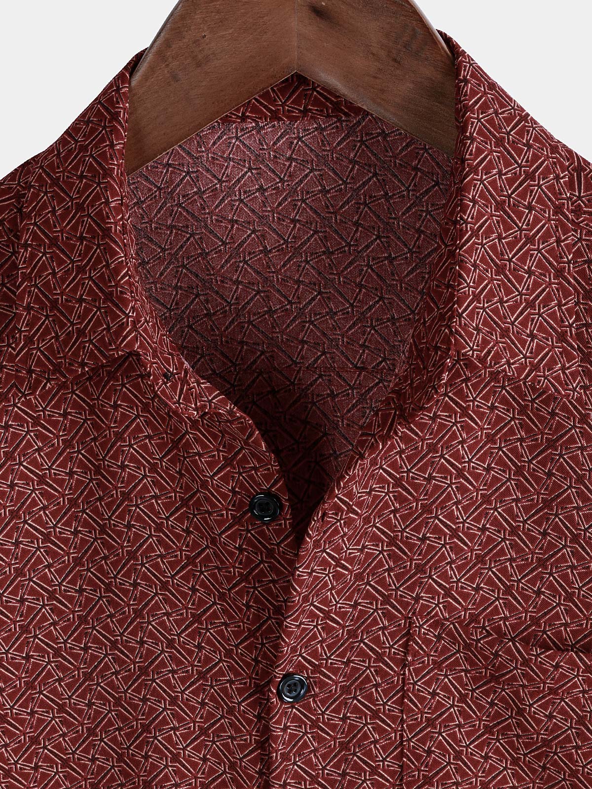 Men's Casual Red Geometric Print Holiday Pocket Short Sleeve Shirt