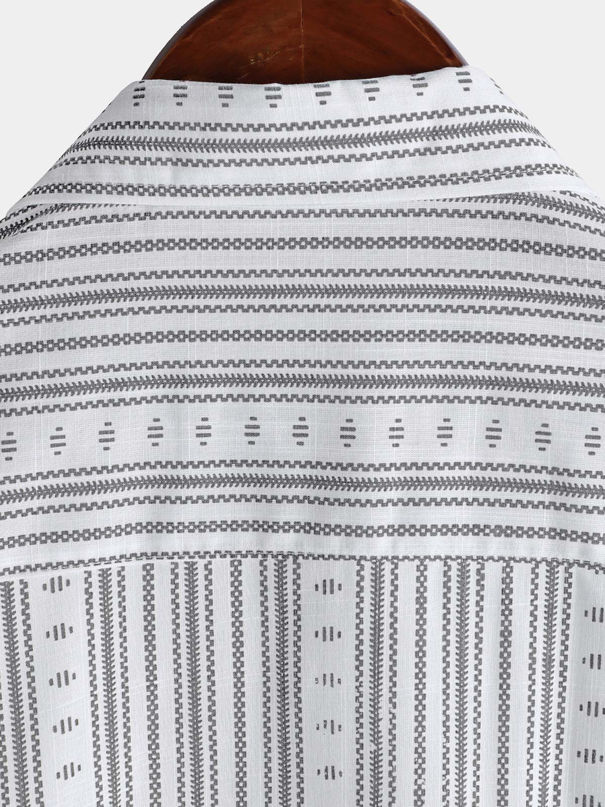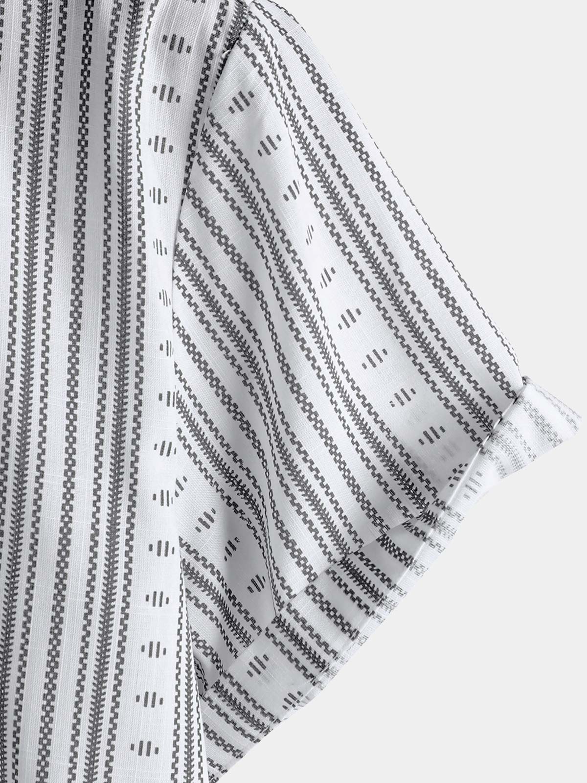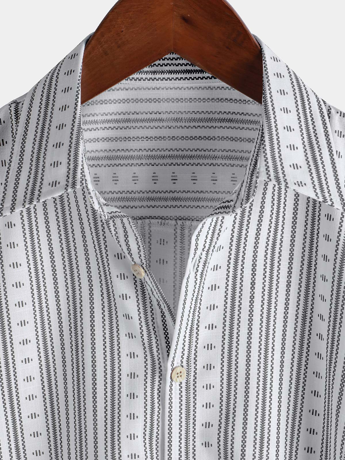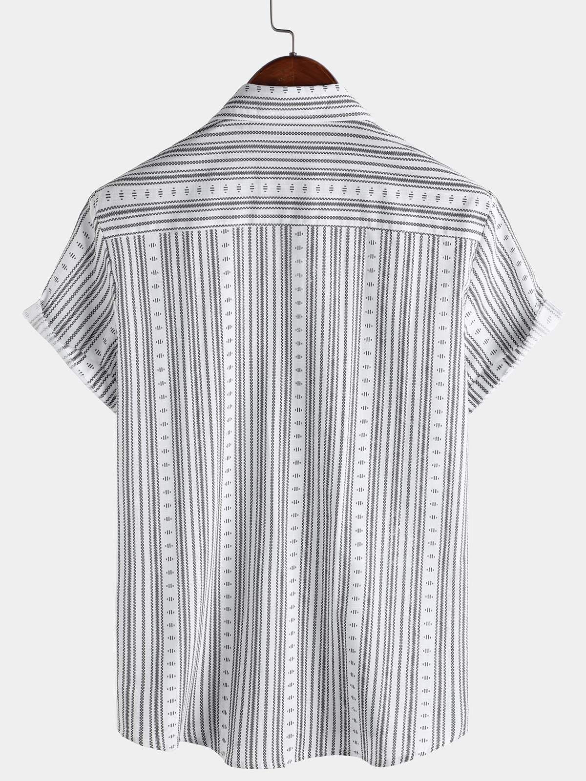 Men's Casual Striped Short Sleeve Summer Button Up Shirt