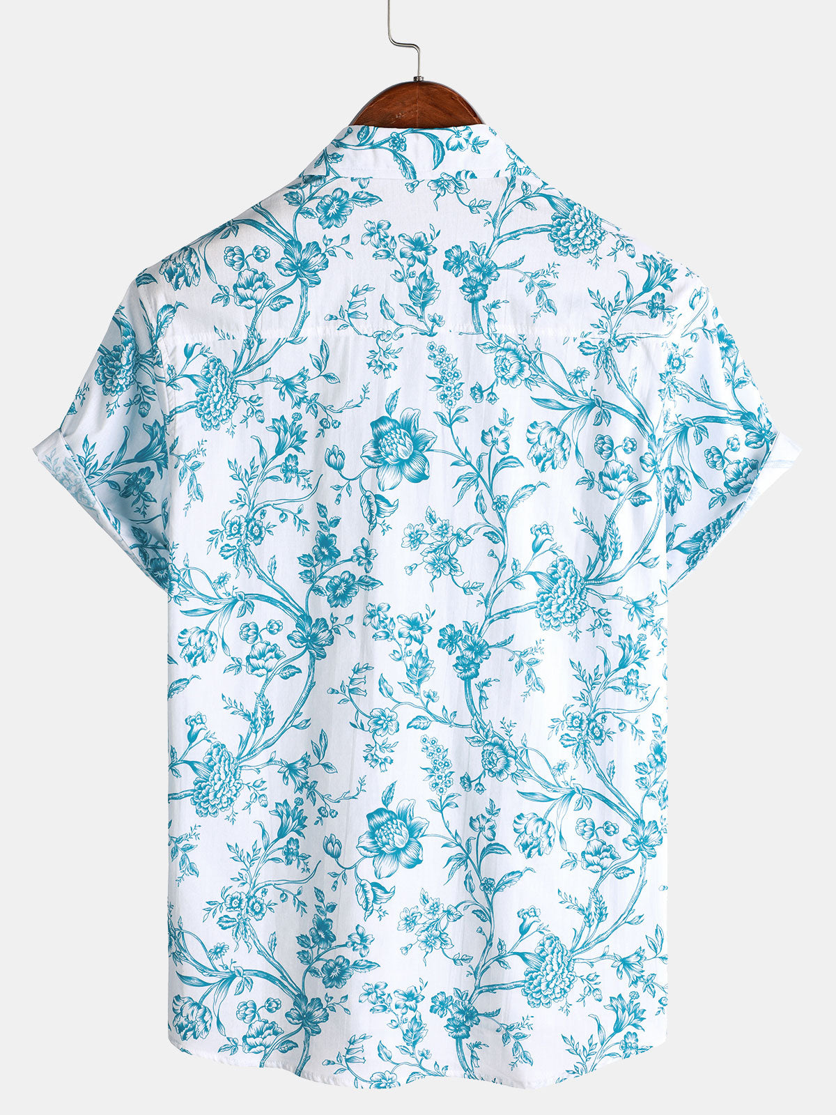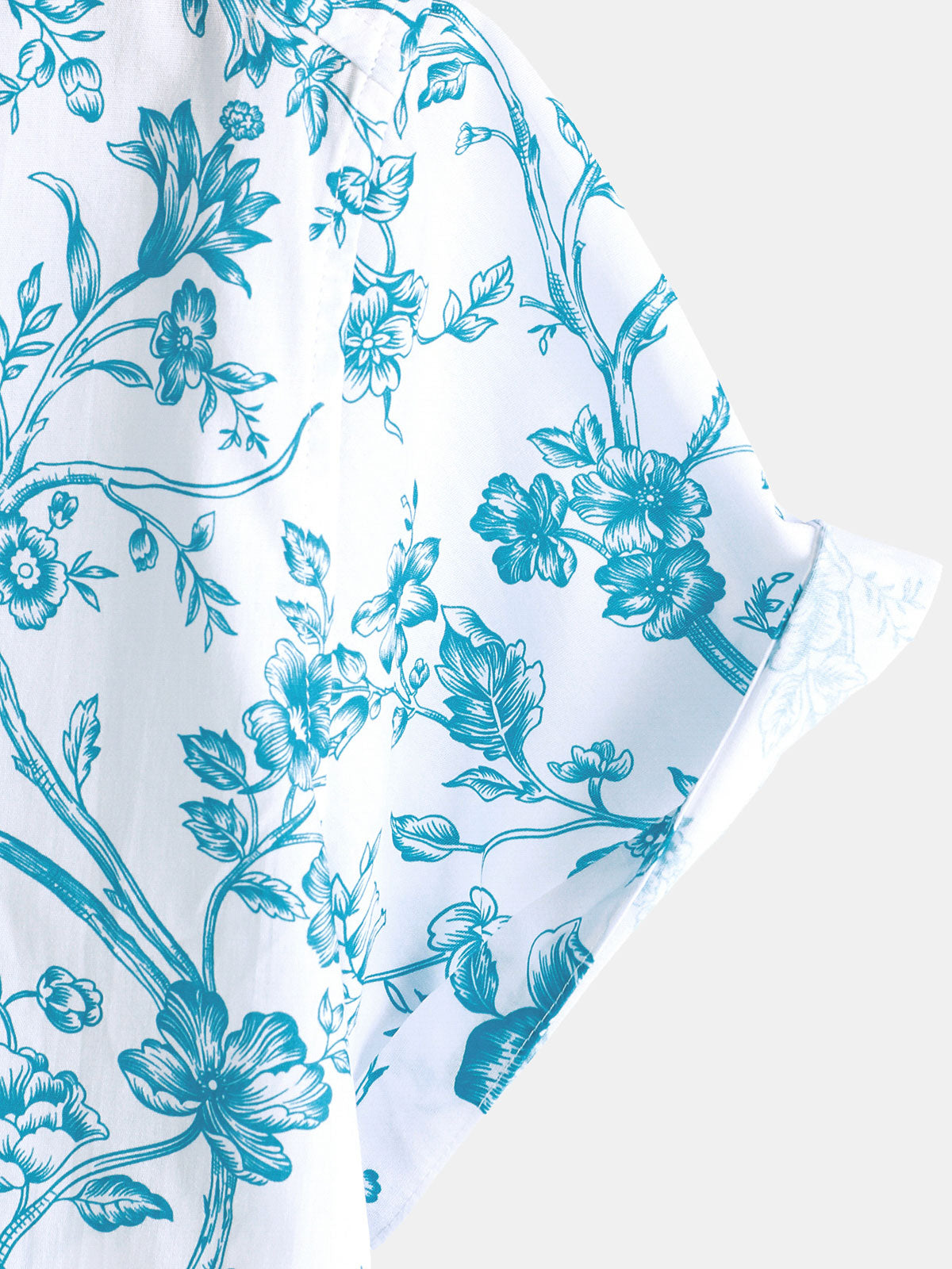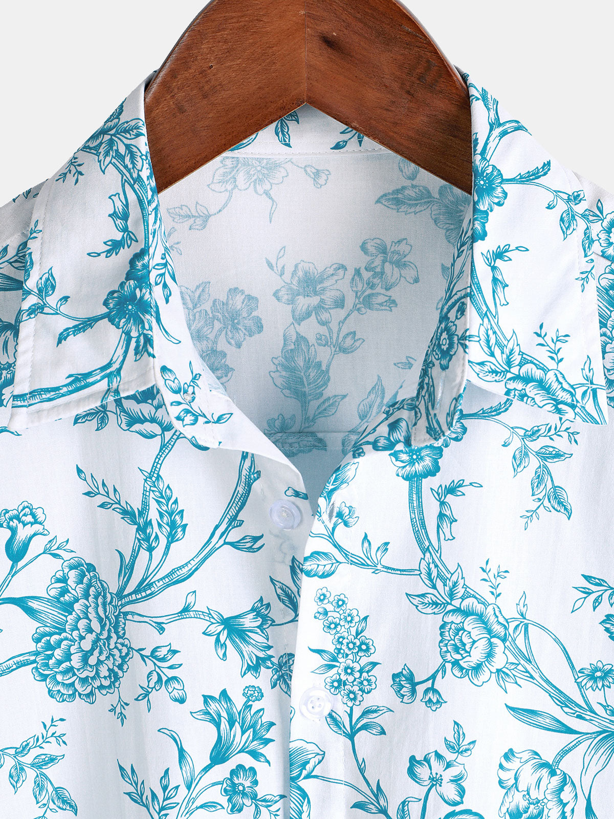 Men's Floral Cotton Holiday Short Sleeve Shirt