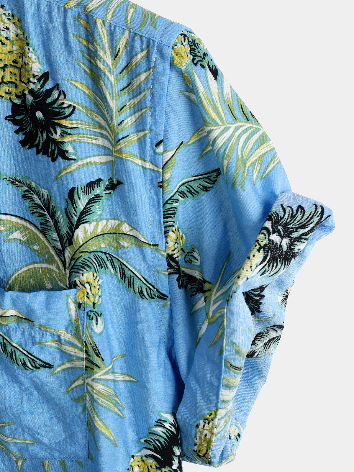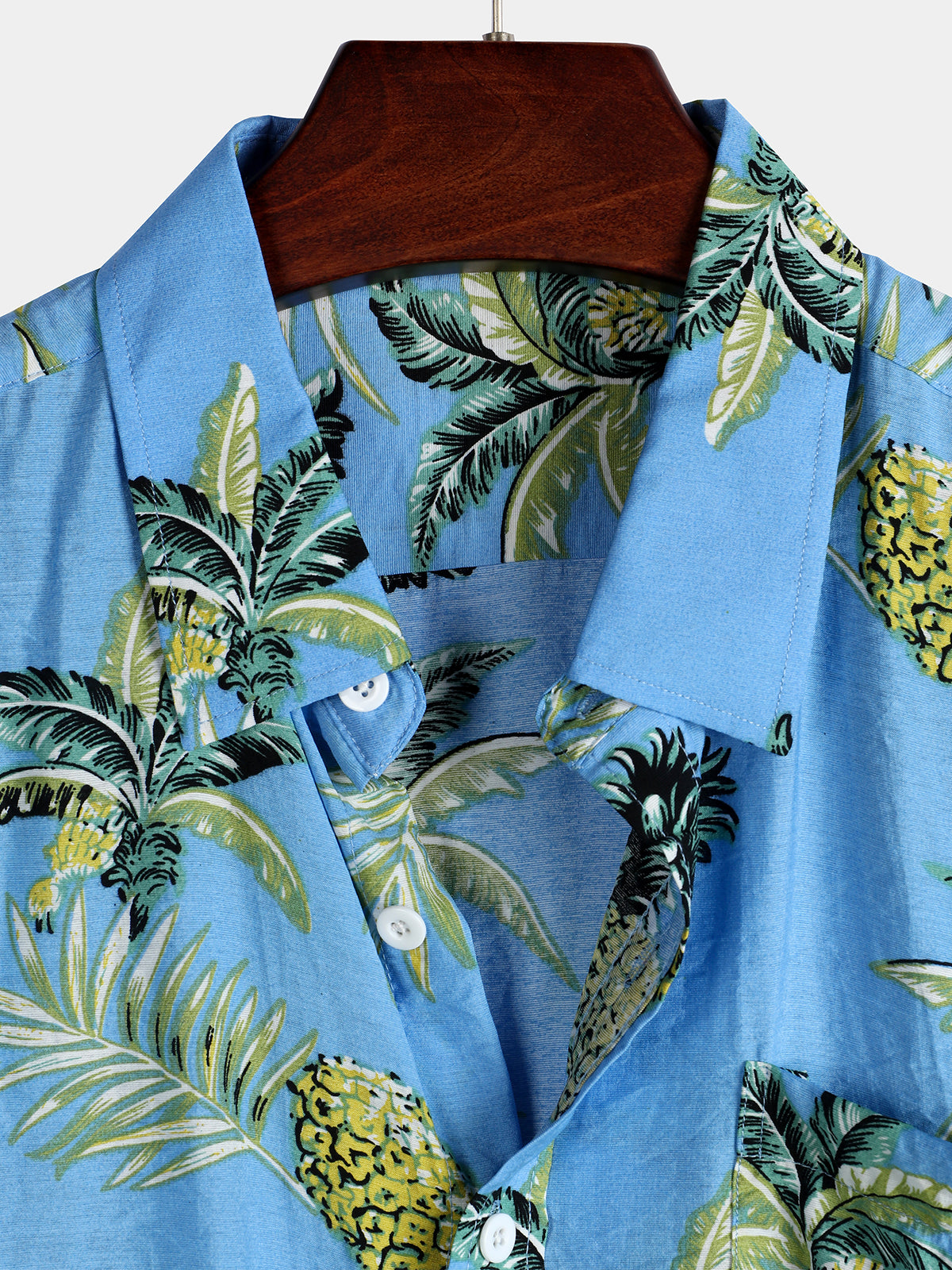 Men's Tropical Fruit Pineapple Holiday Cotton Shirt