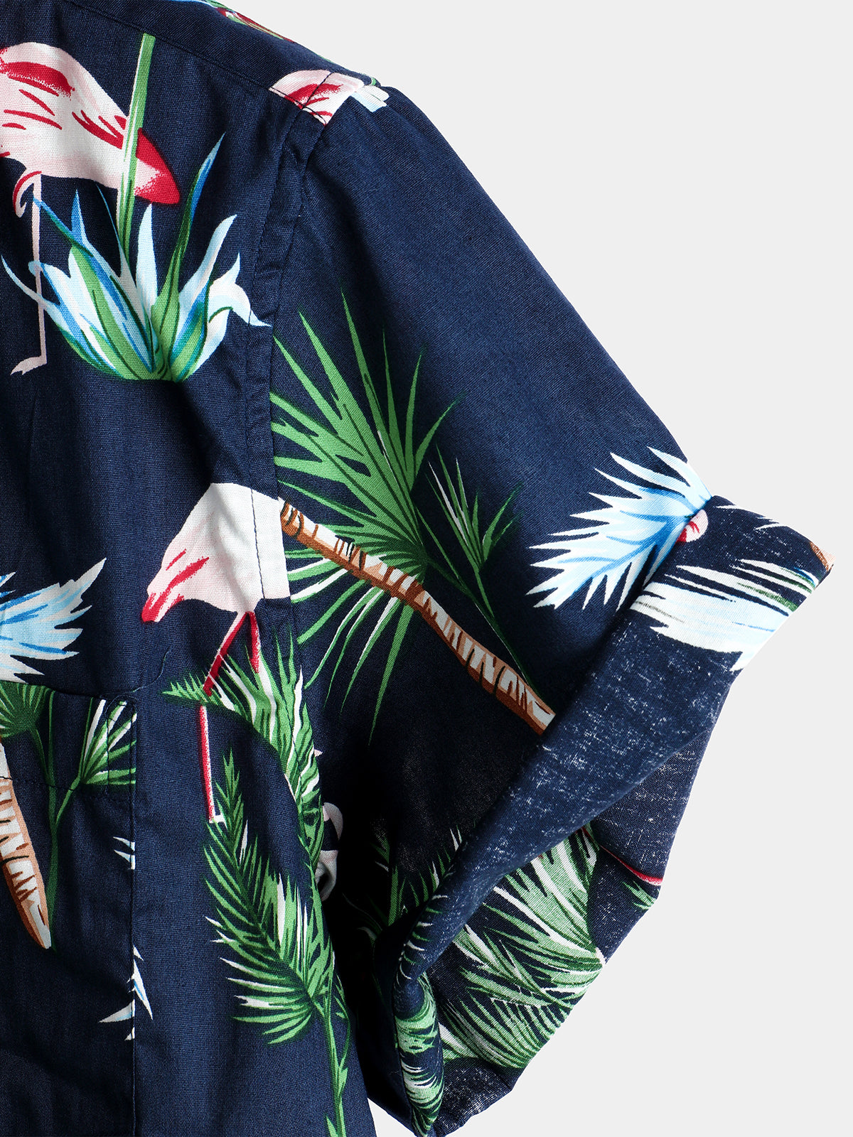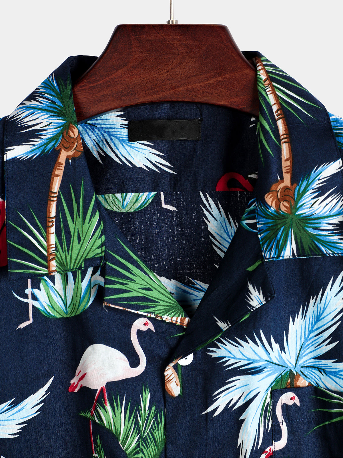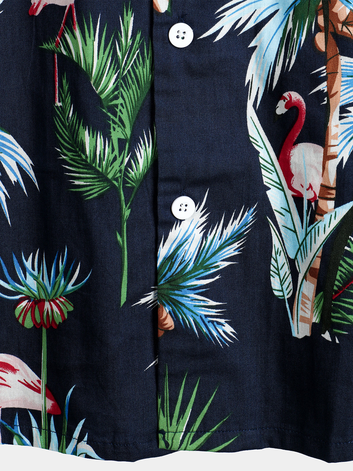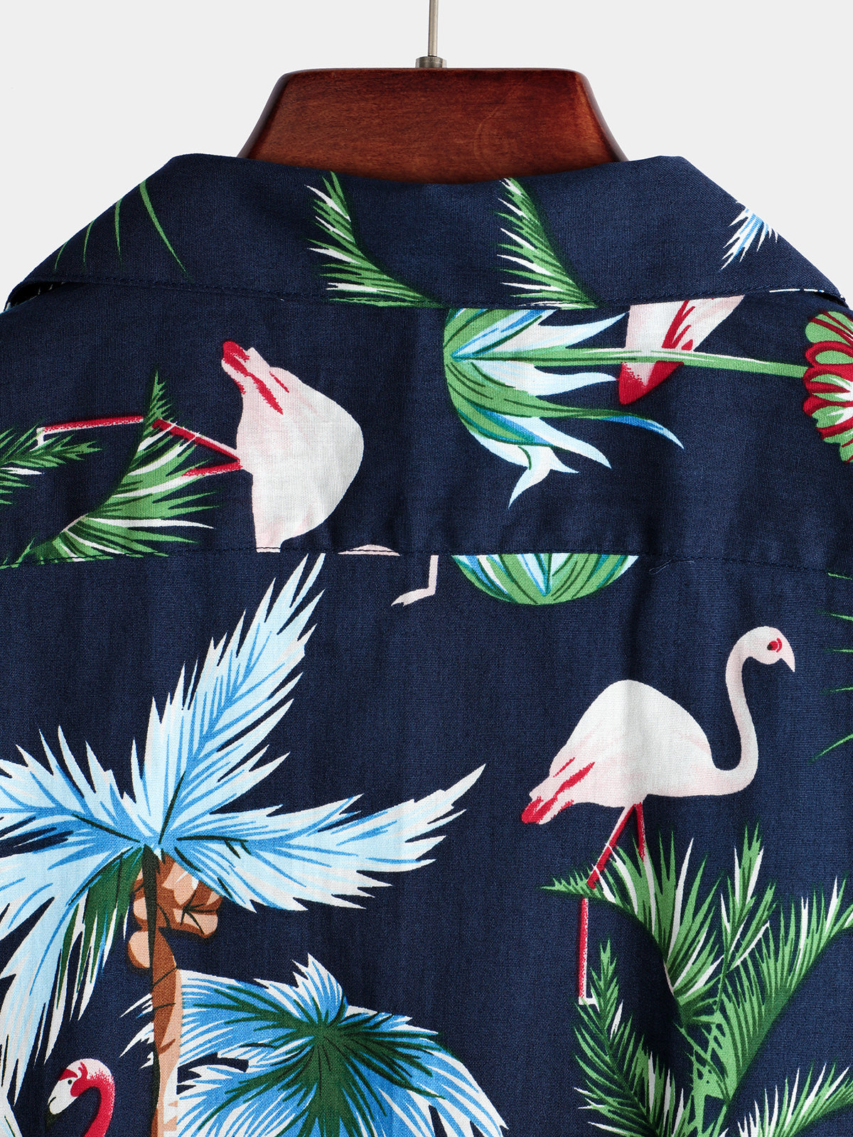 Men's Flamingo Print Cotton Hawaiian Short Sleeve Shirt