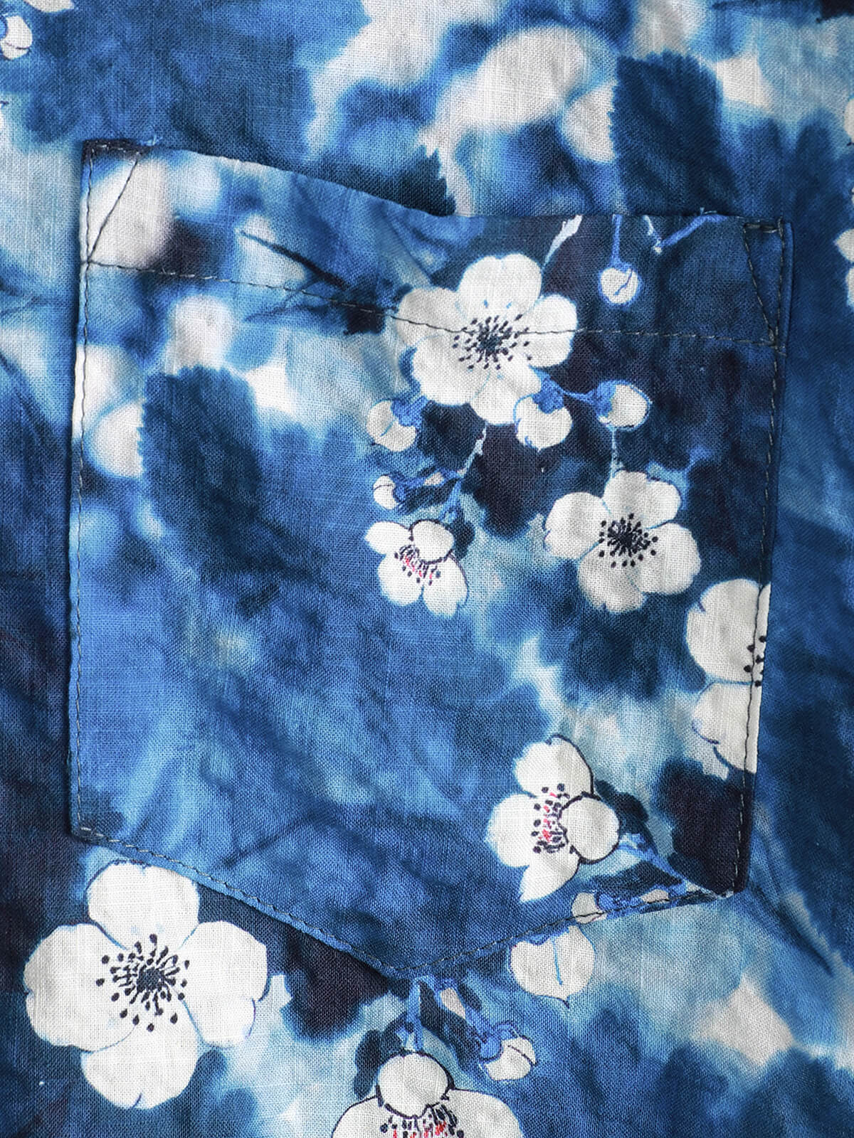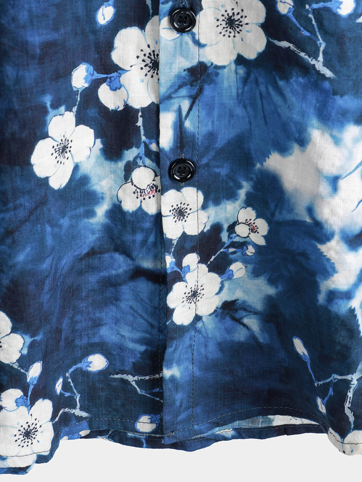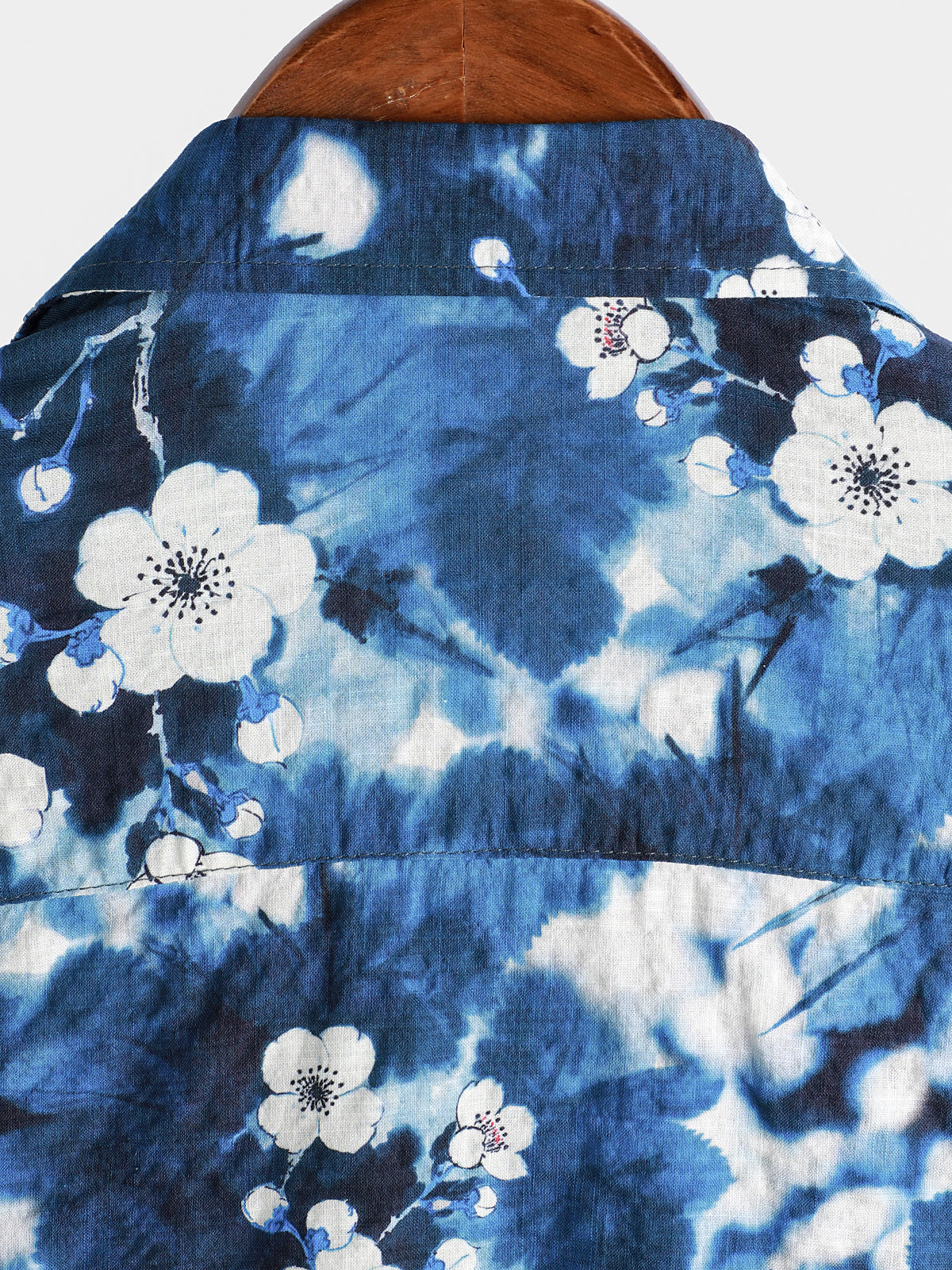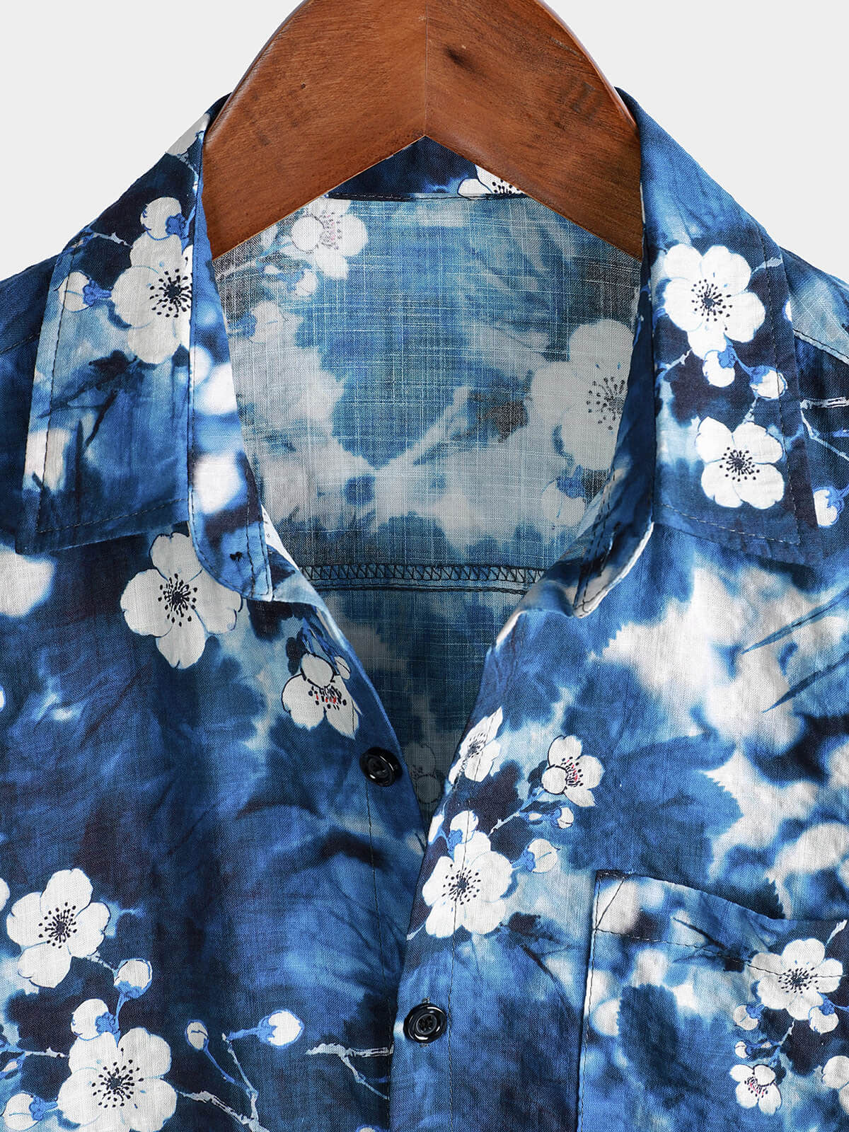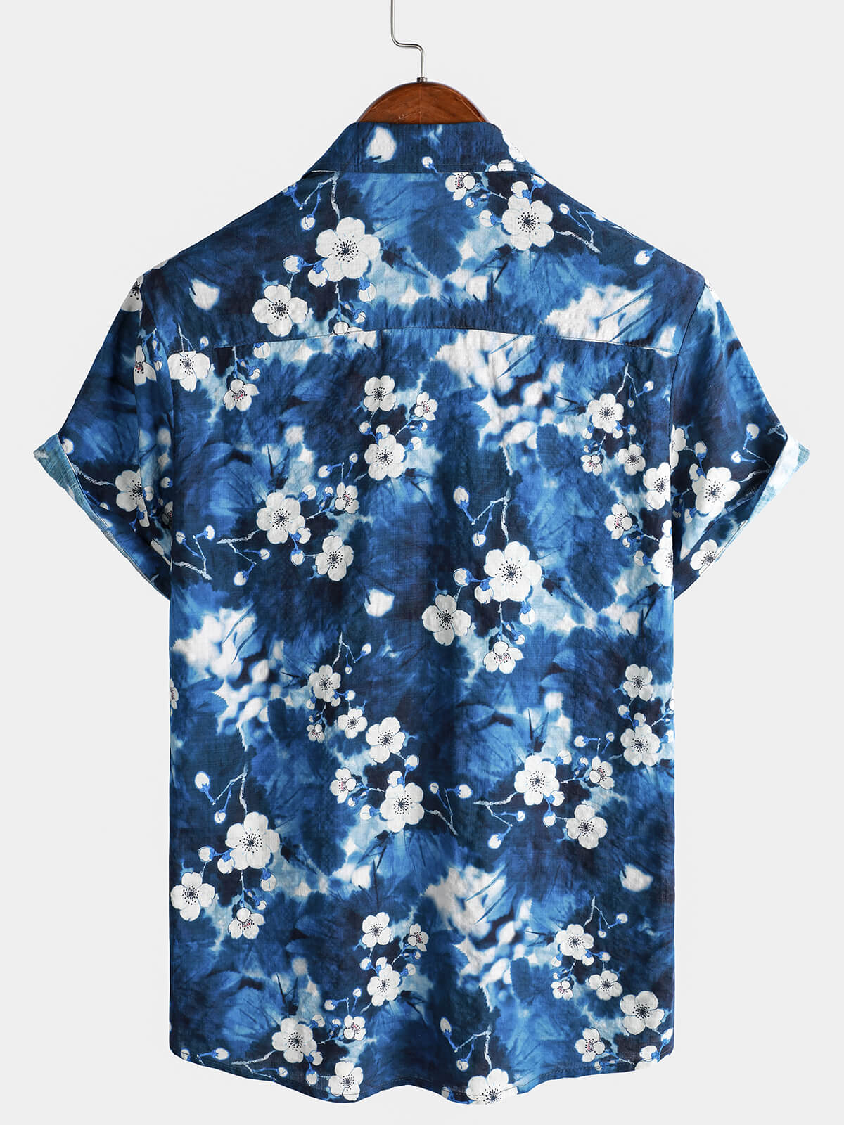 Men's Floral Print Pocket Hawaiian Short Sleeve Shirt