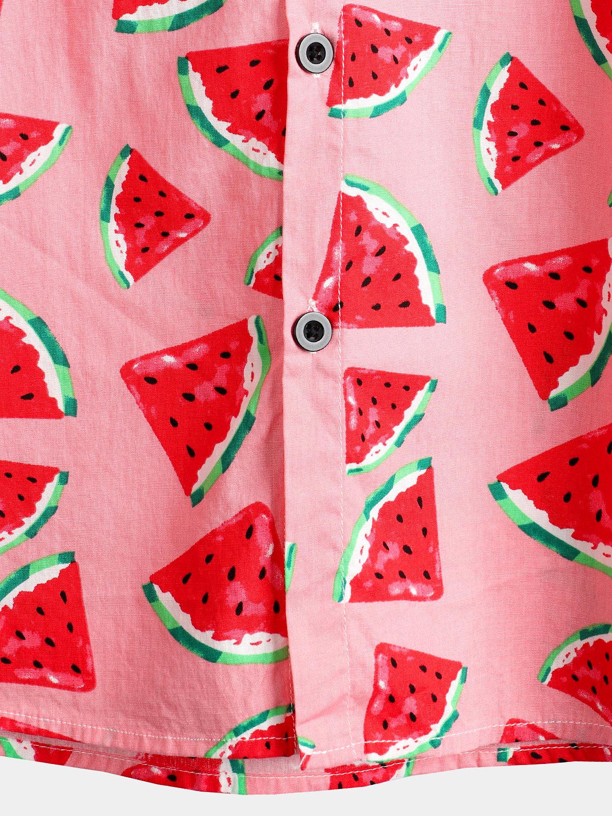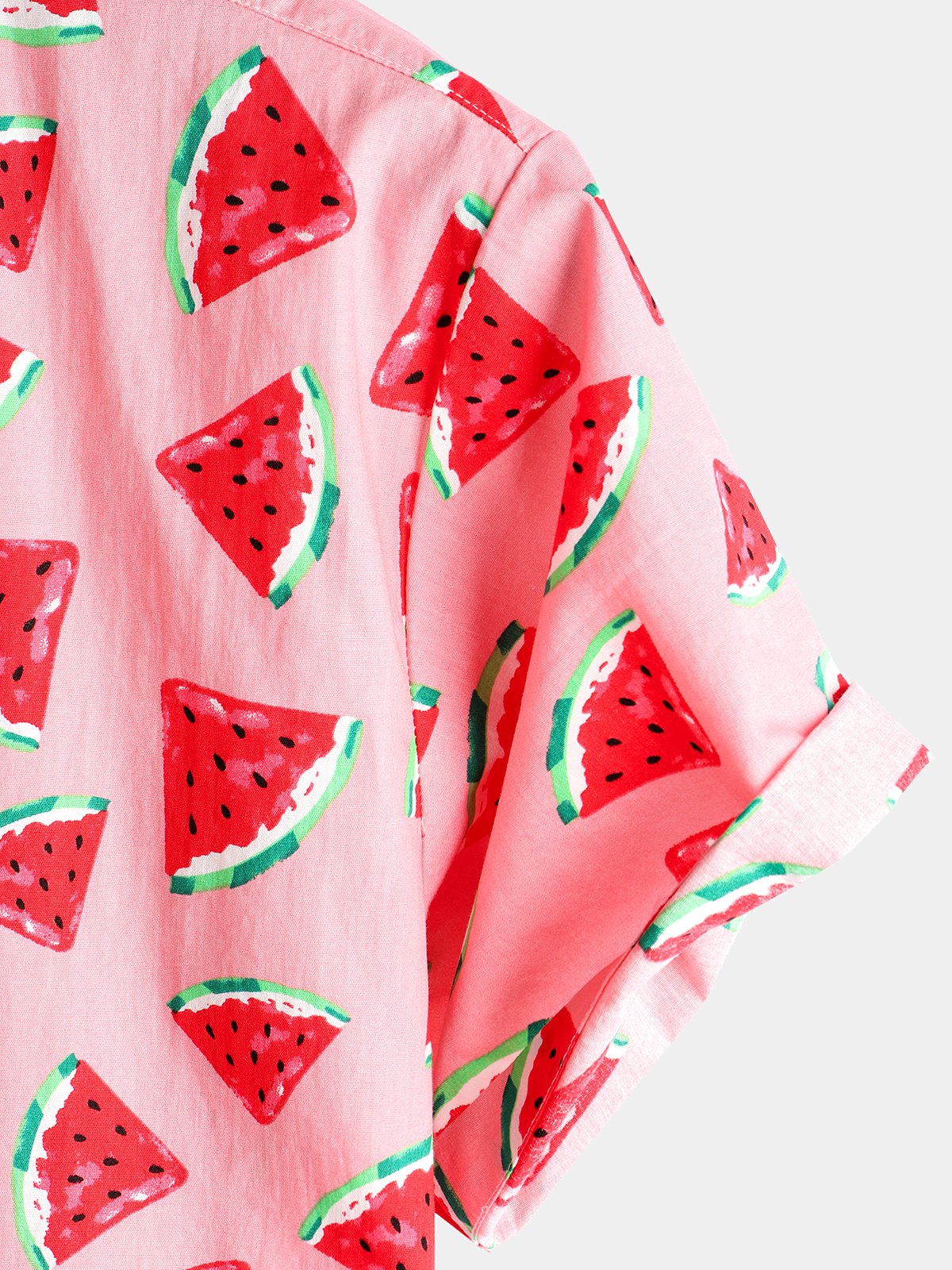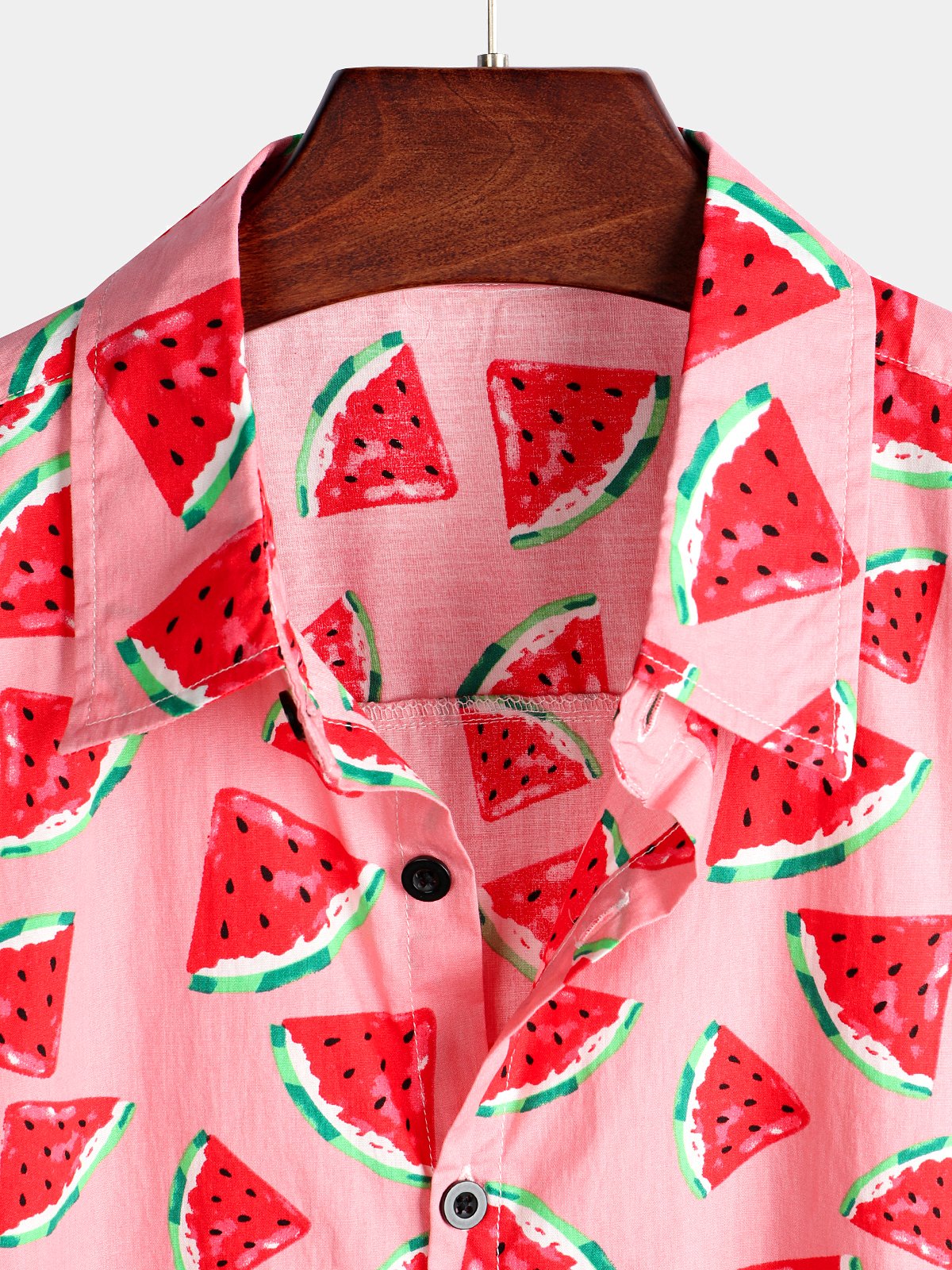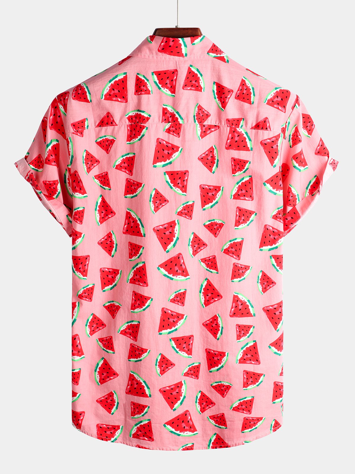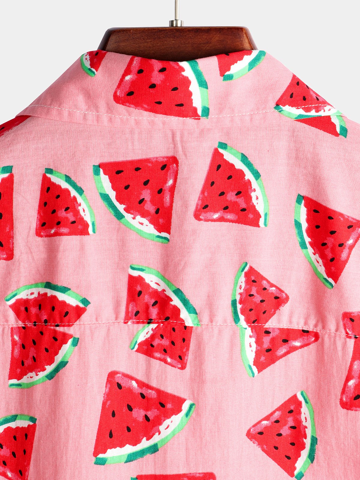 Men's Pink Watermelon Tropical Hawaii Fruit Print Cotton Shirt