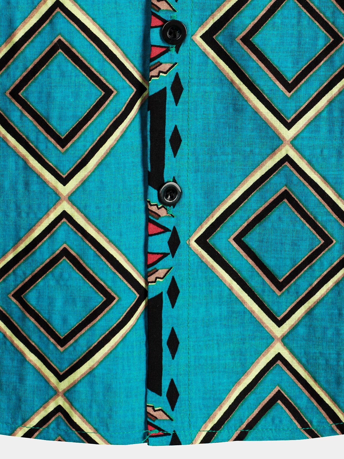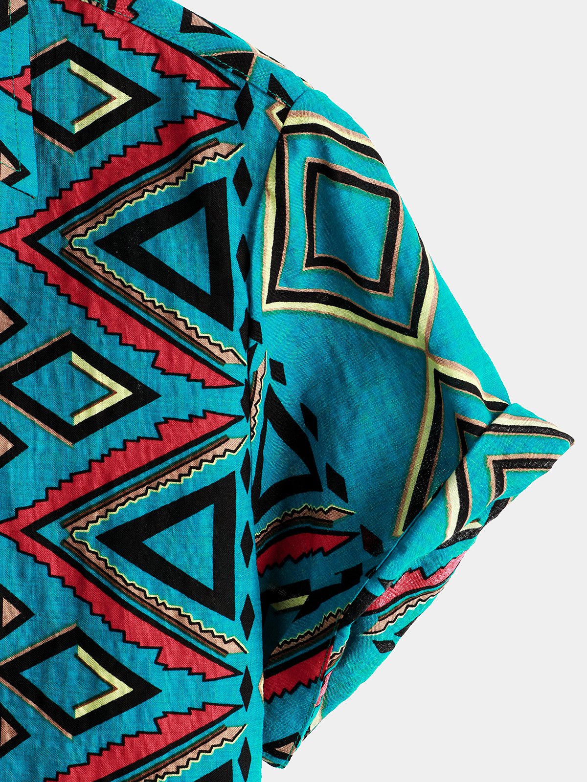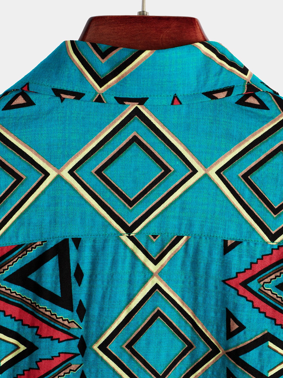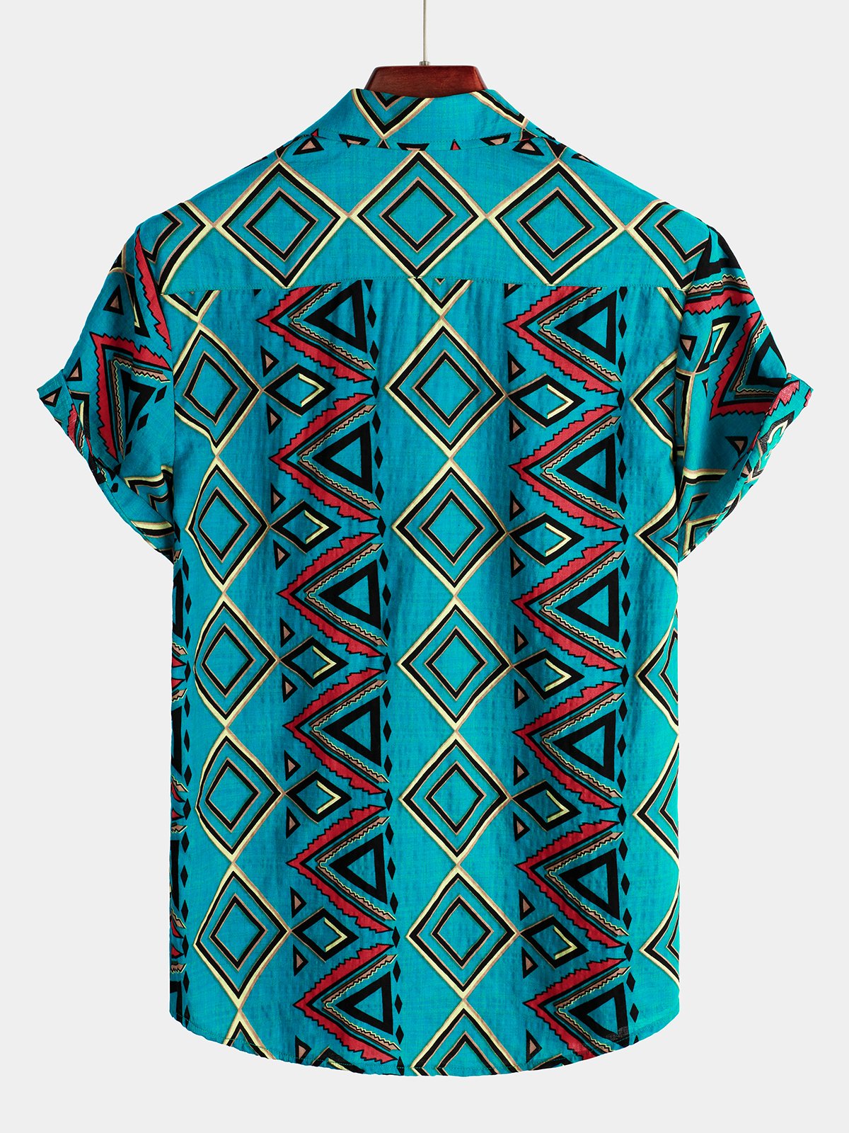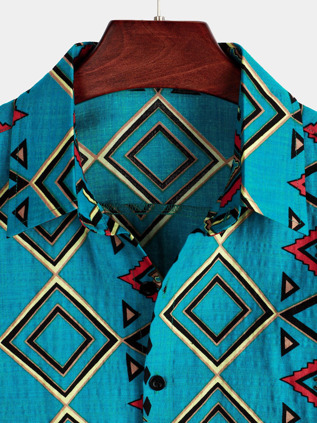 Men's Retro Blue Short Sleeve Cotton Shirt