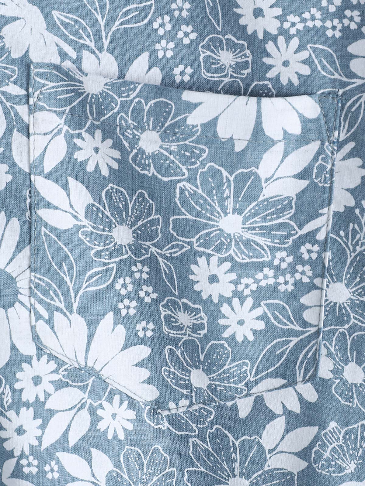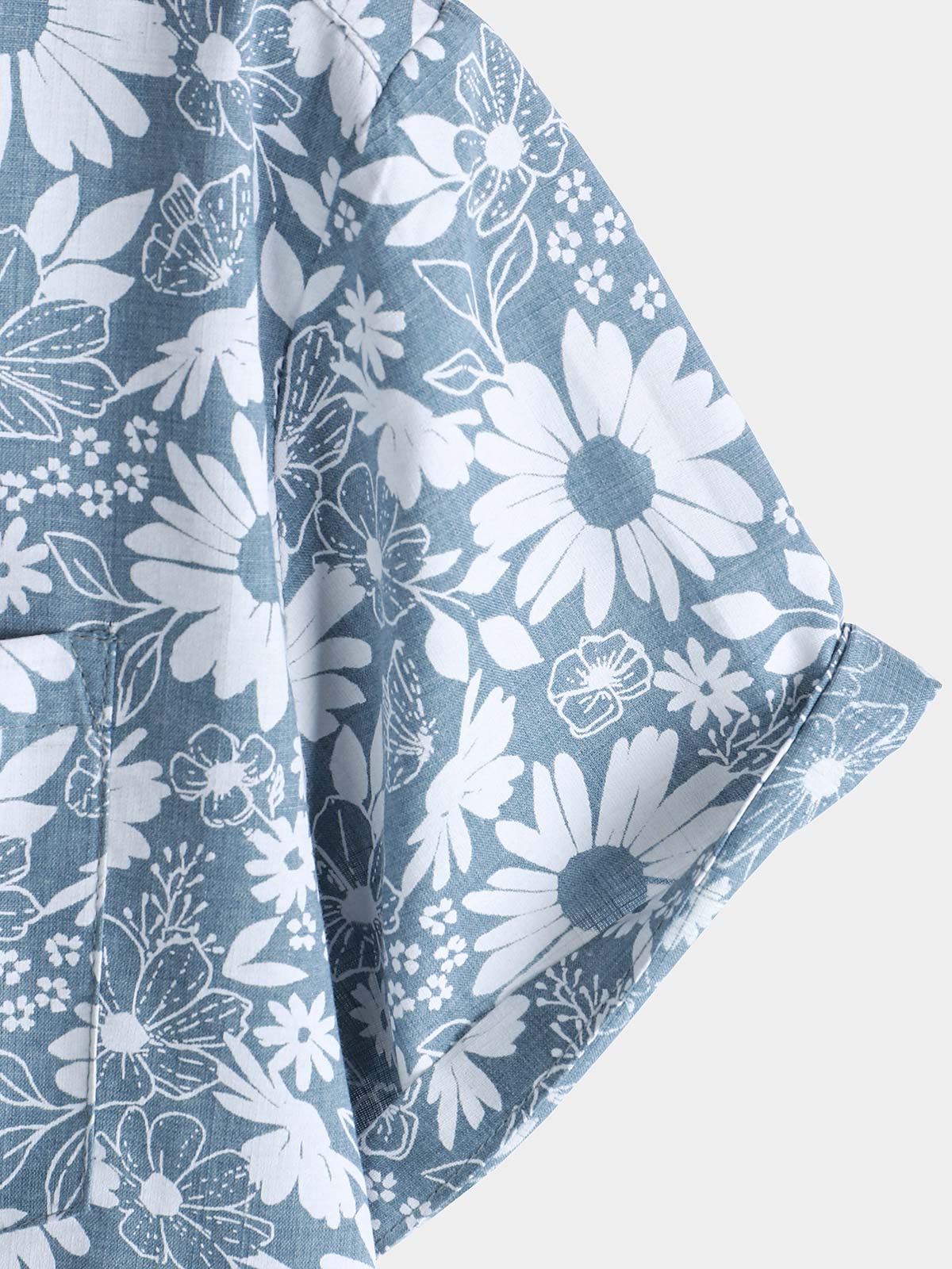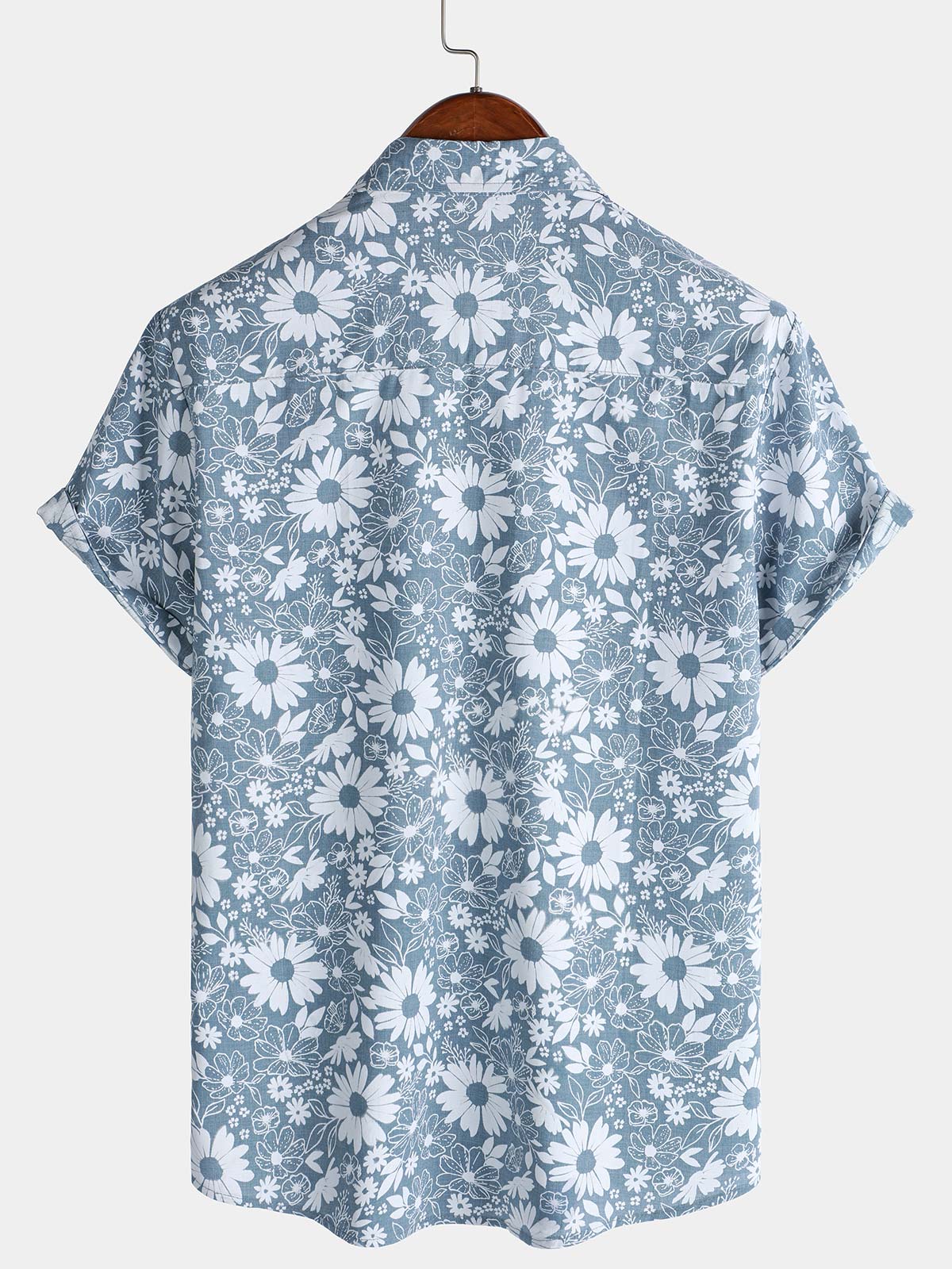 Men's Holiday Blue Daisy Print Pocket Short Sleeve Shirt