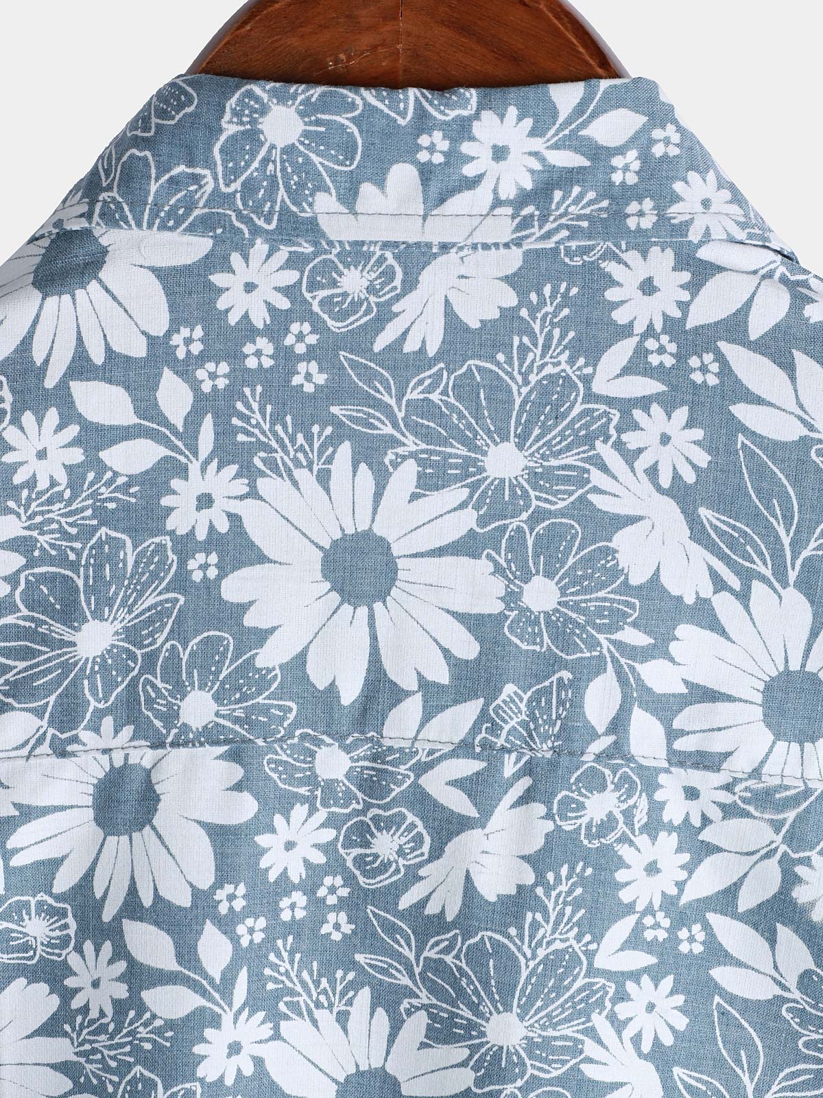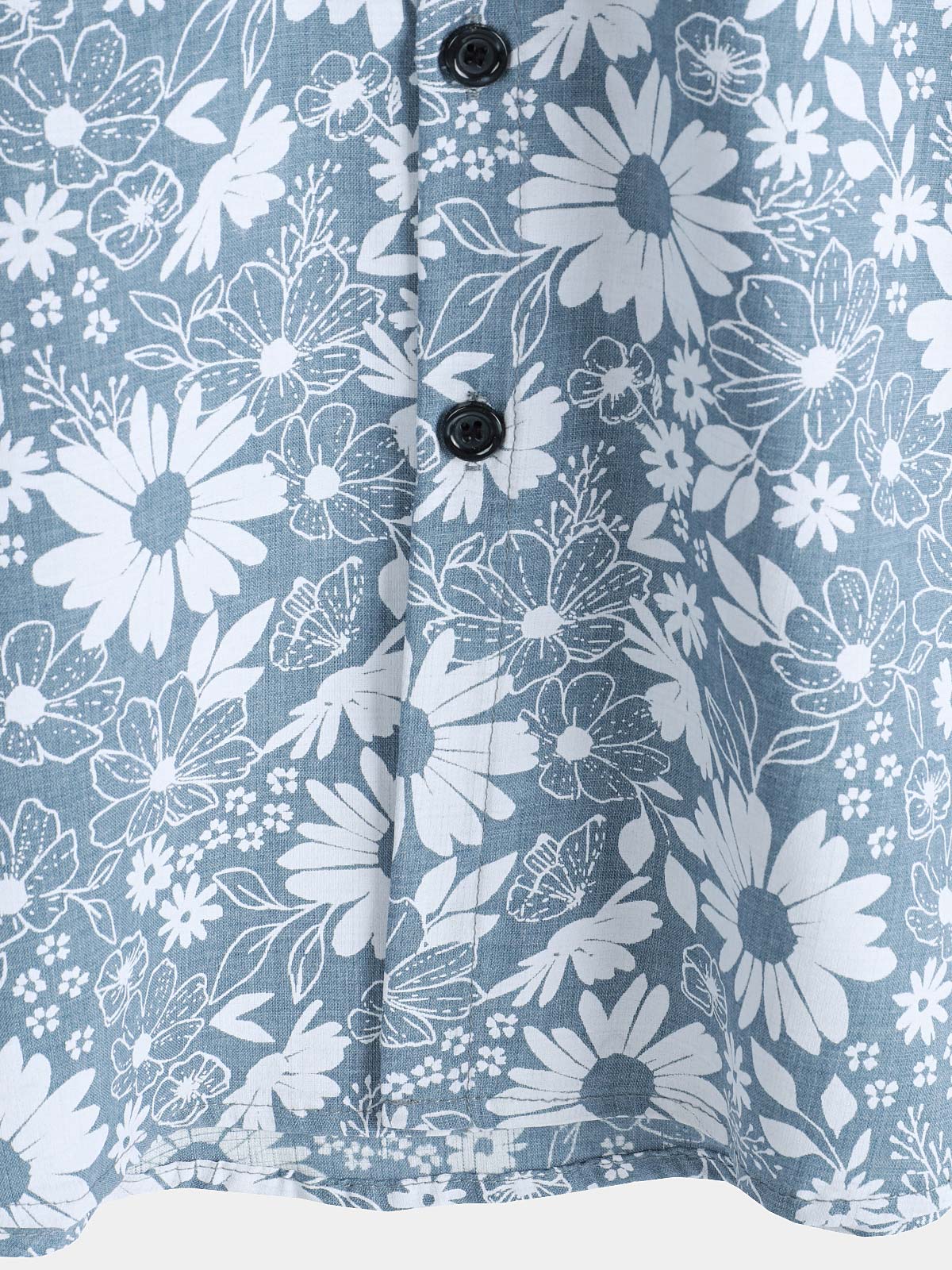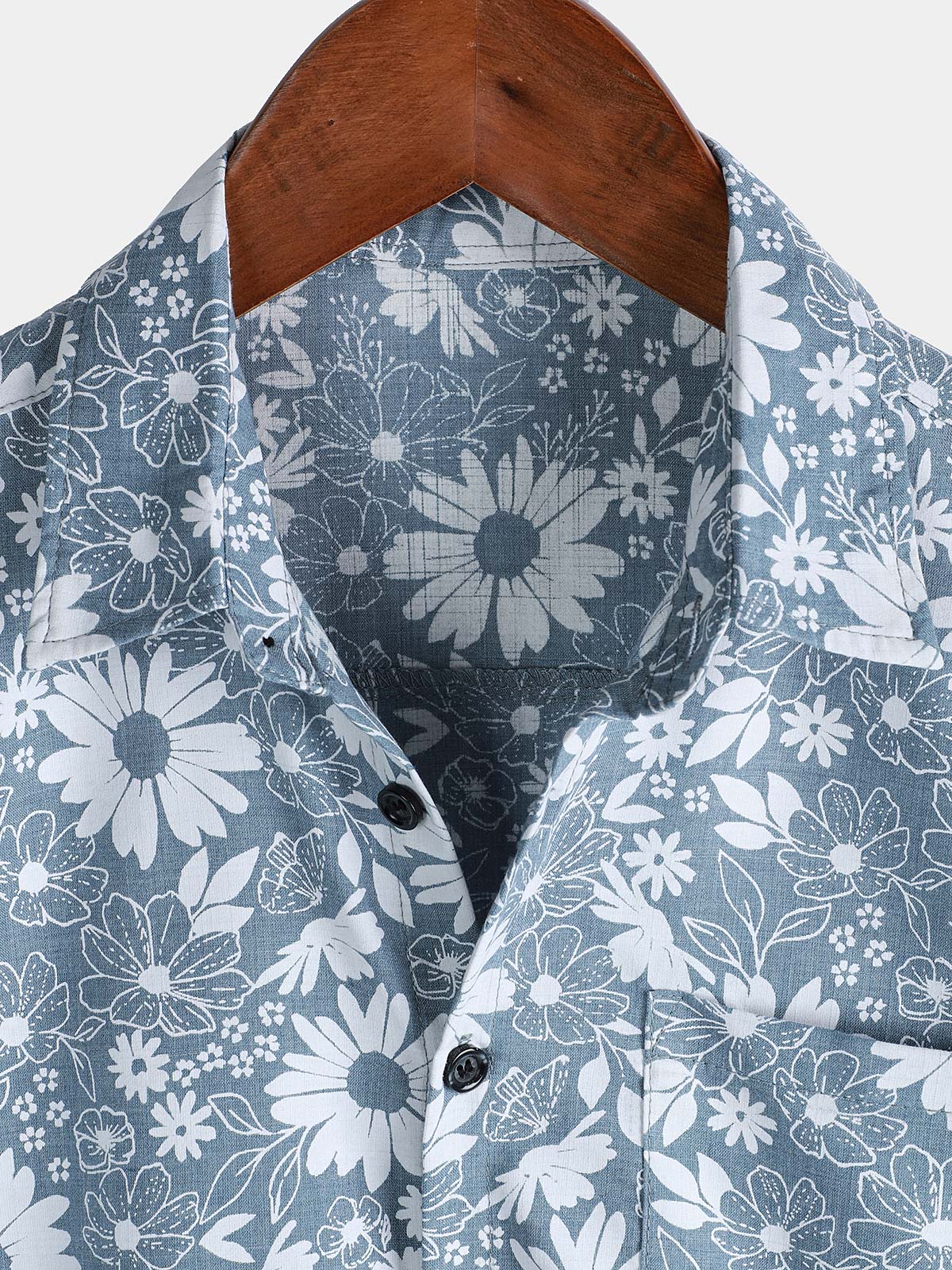 Men's Holiday Blue Daisy Print Pocket Short Sleeve Shirt