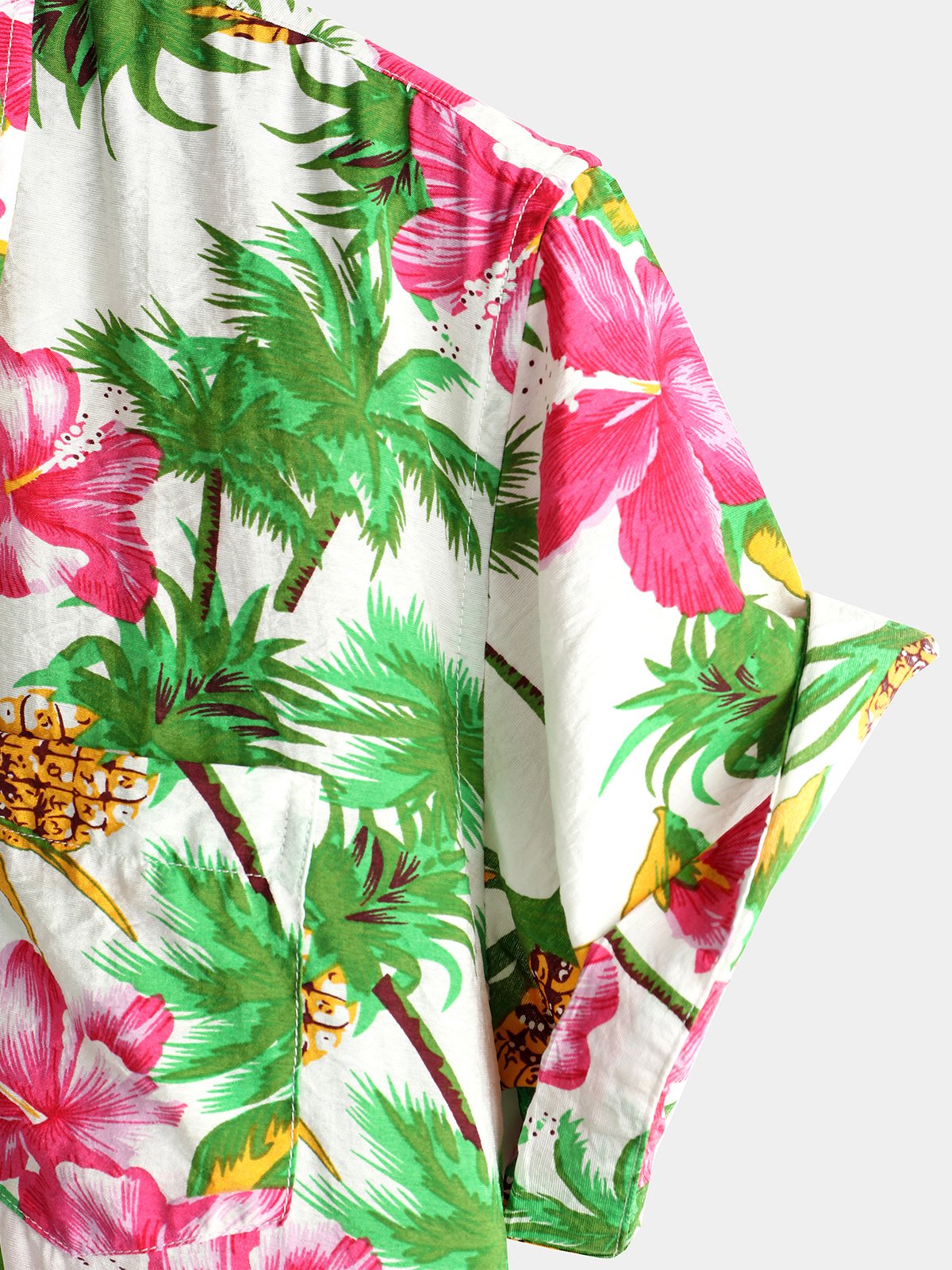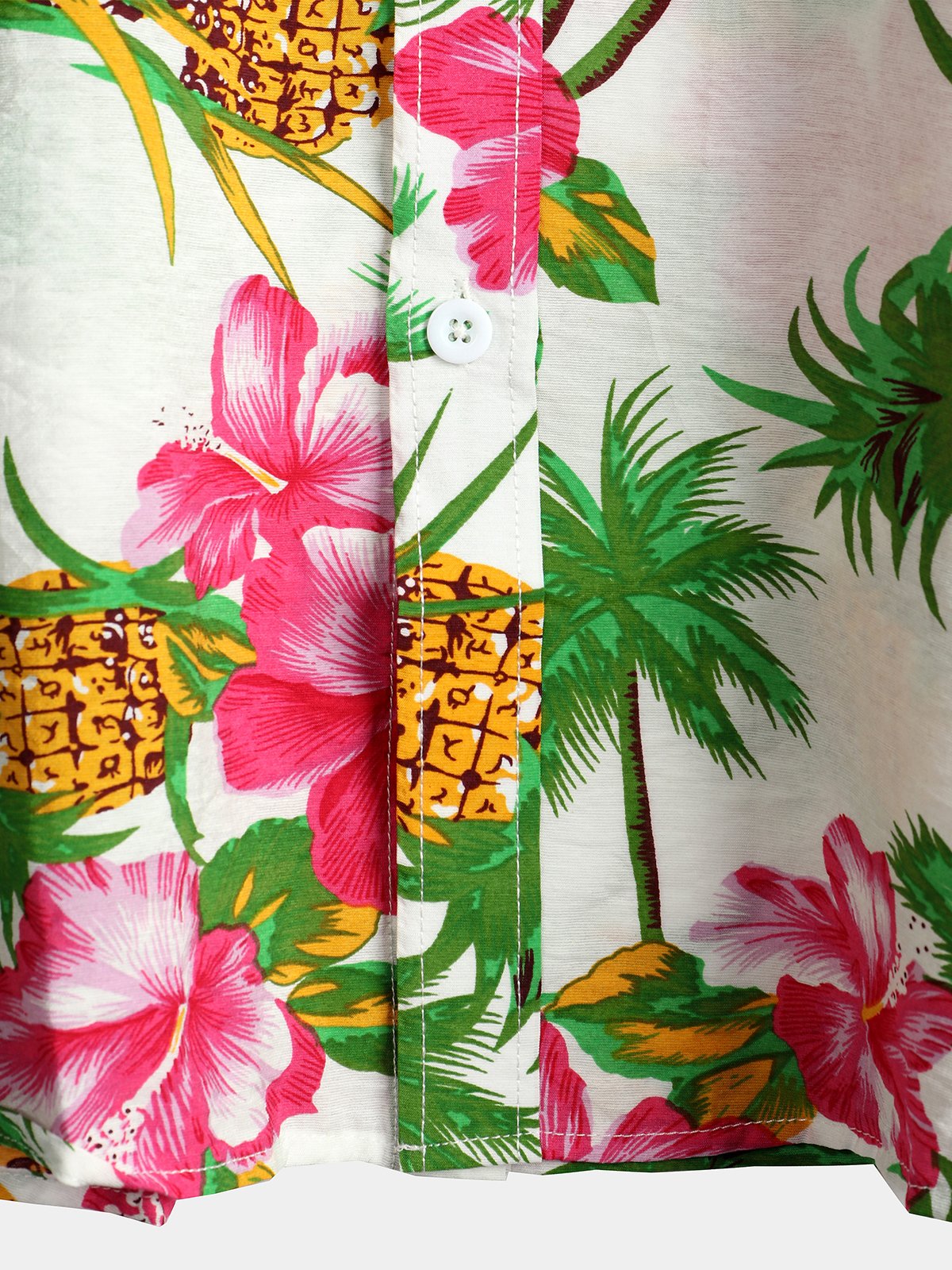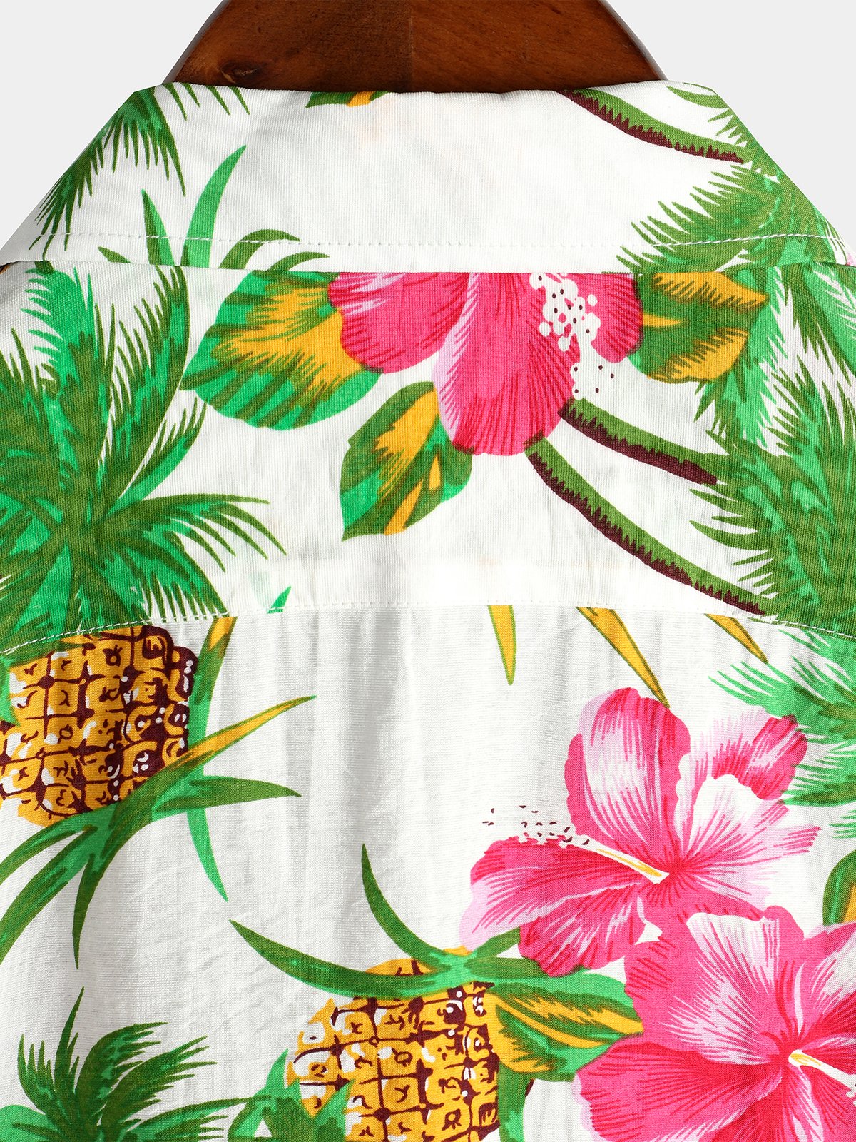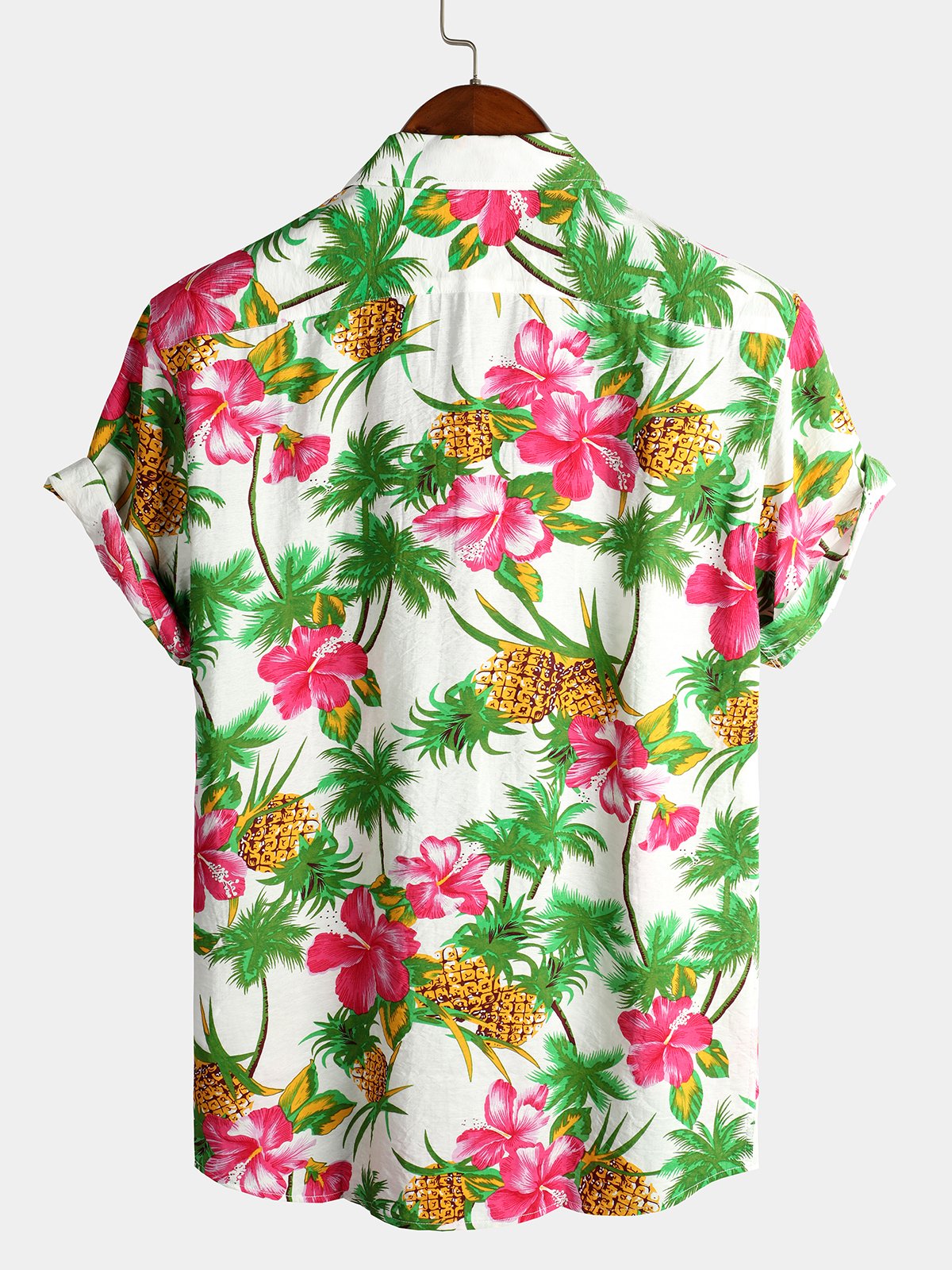 Men's Holiday Floral Print Short Sleeve Cotton Shirt