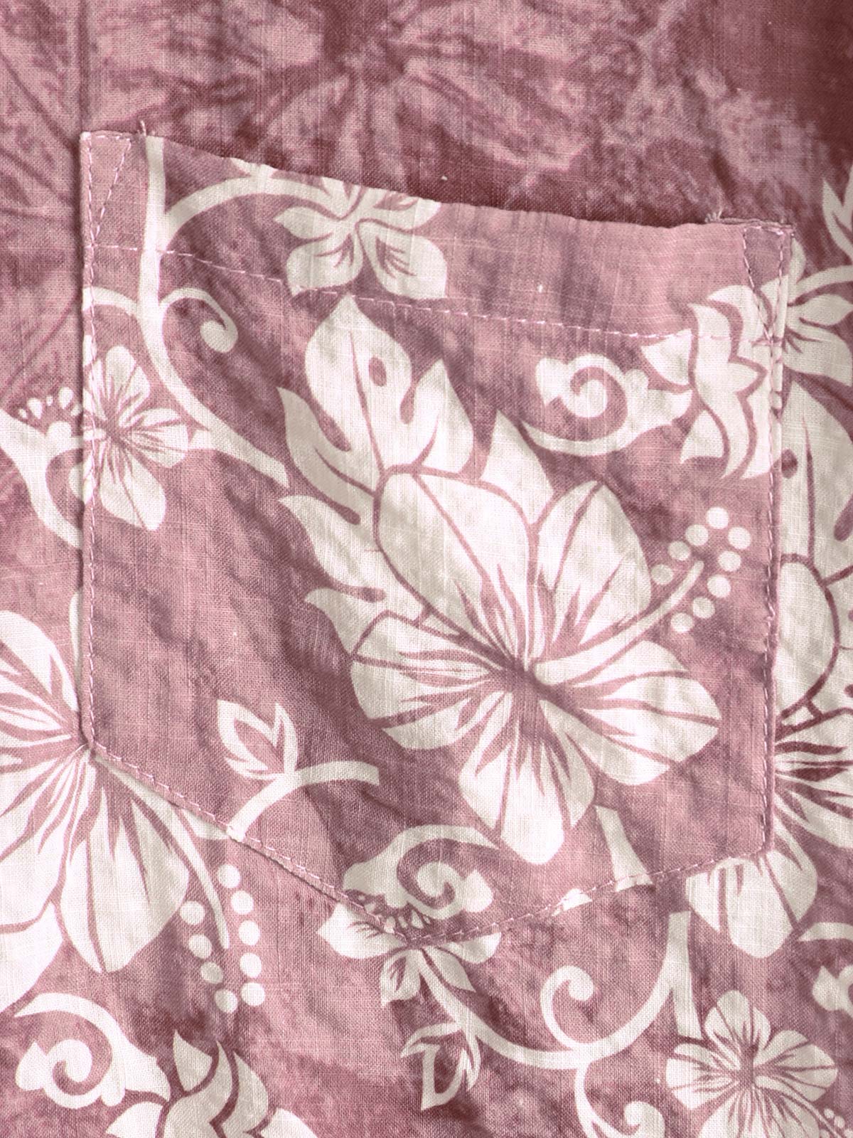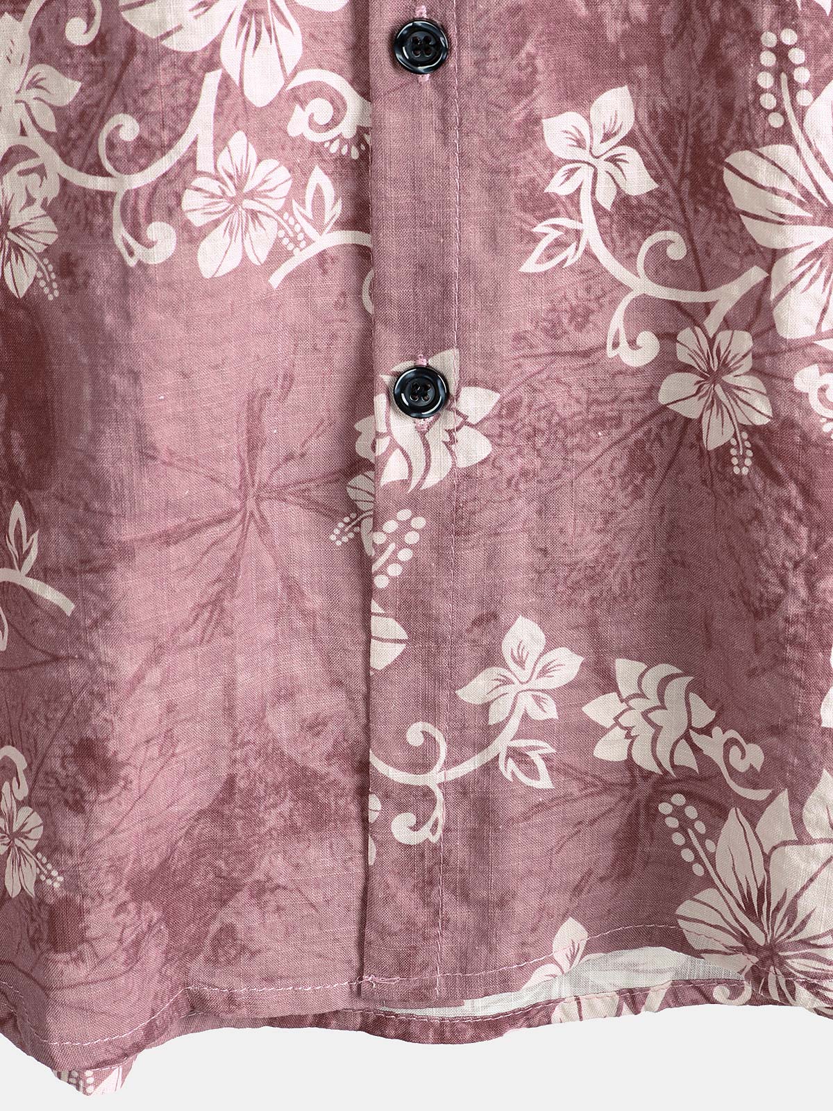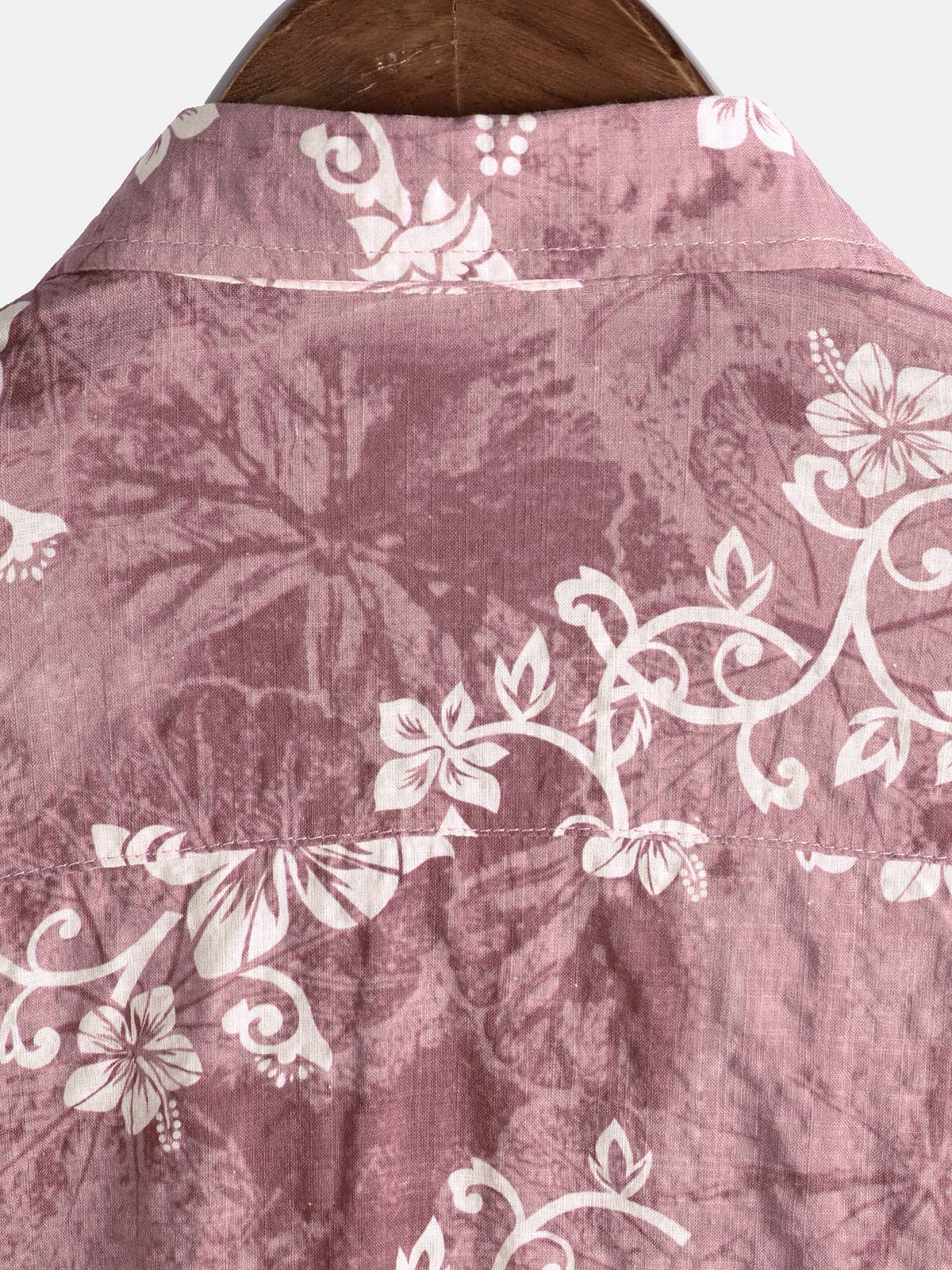 Men's Holiday Pink Floral Print Short Sleeve Pocket Shirt