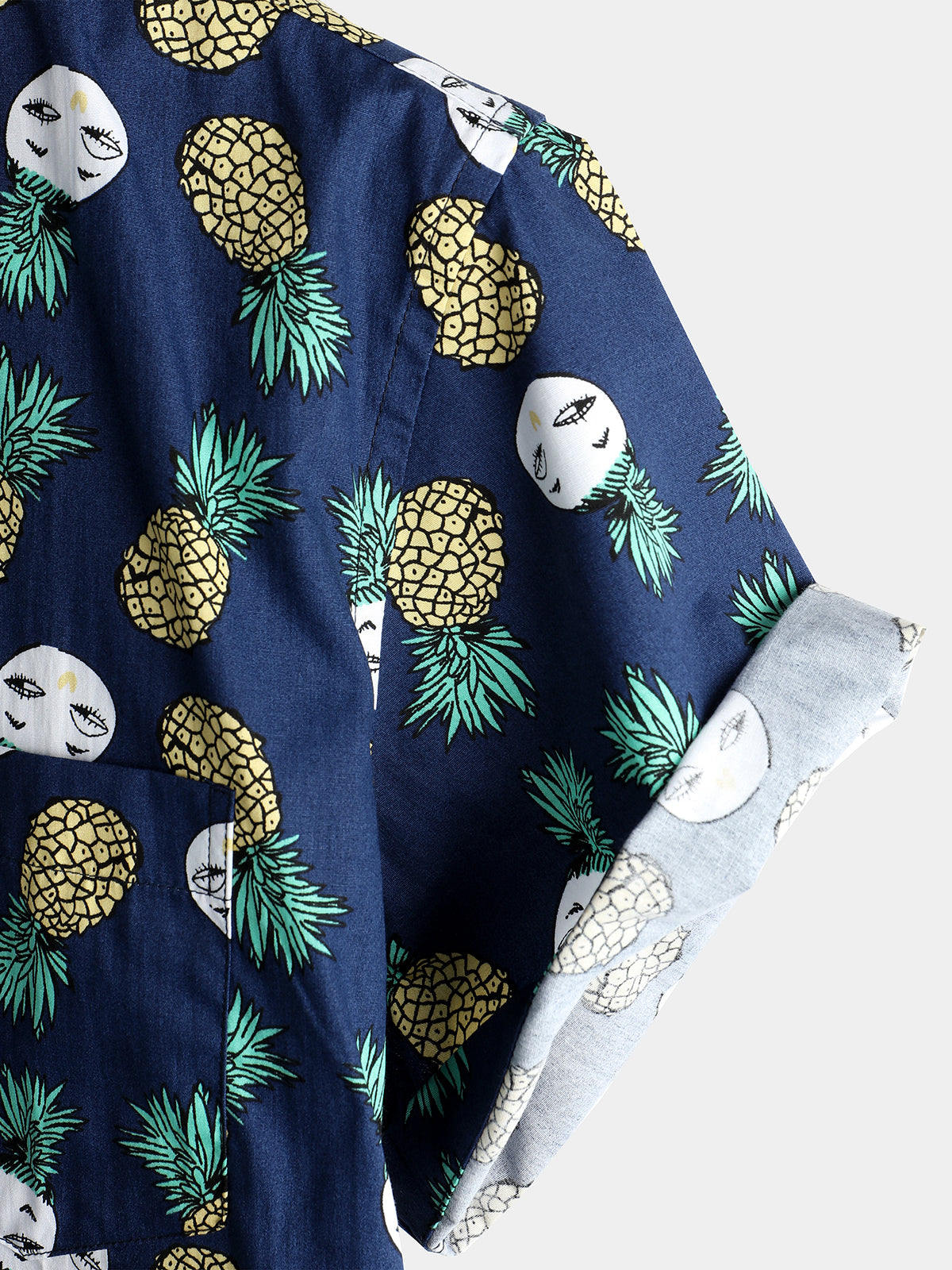 Men's Holiday Tropical Pineapple Pocket Cotton Shirt