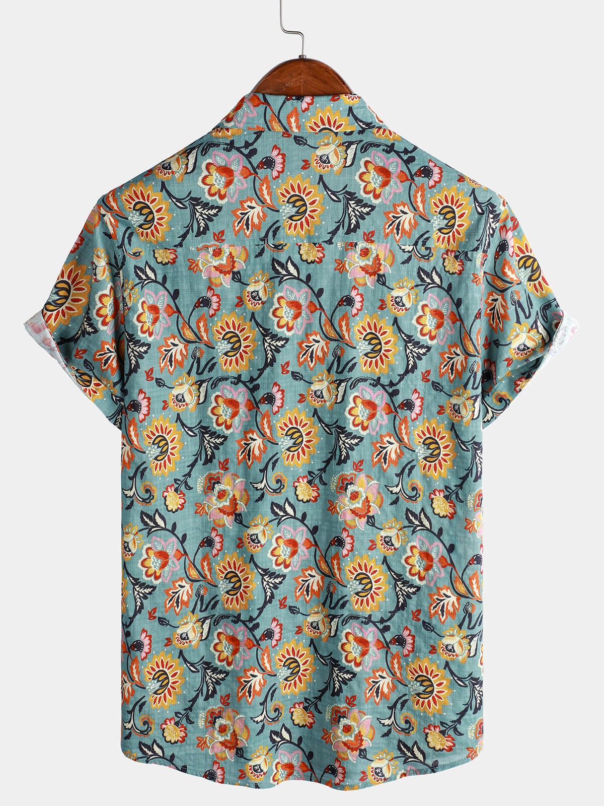 Men's Paisley Print Pocket Short Sleeve Shirt