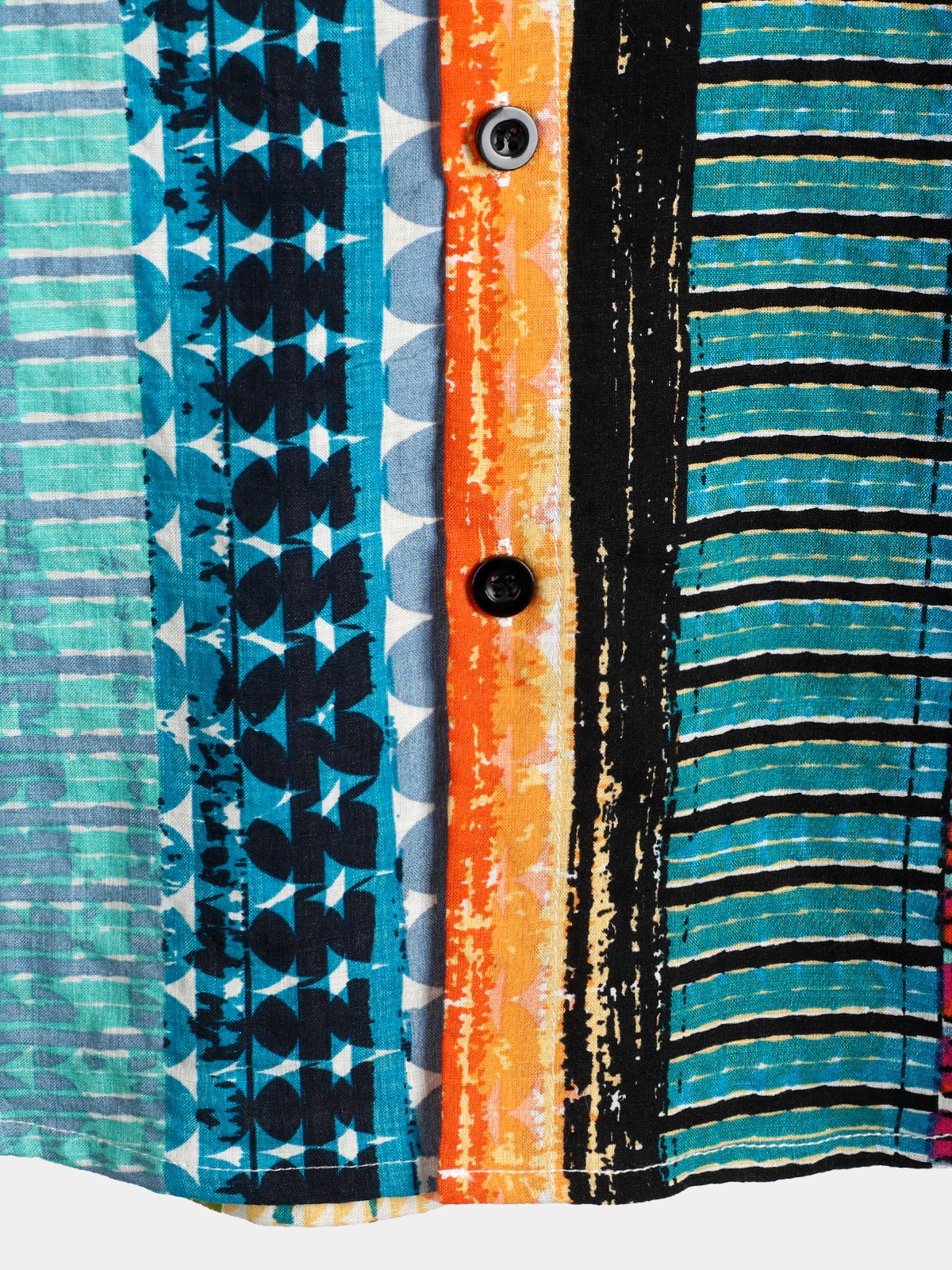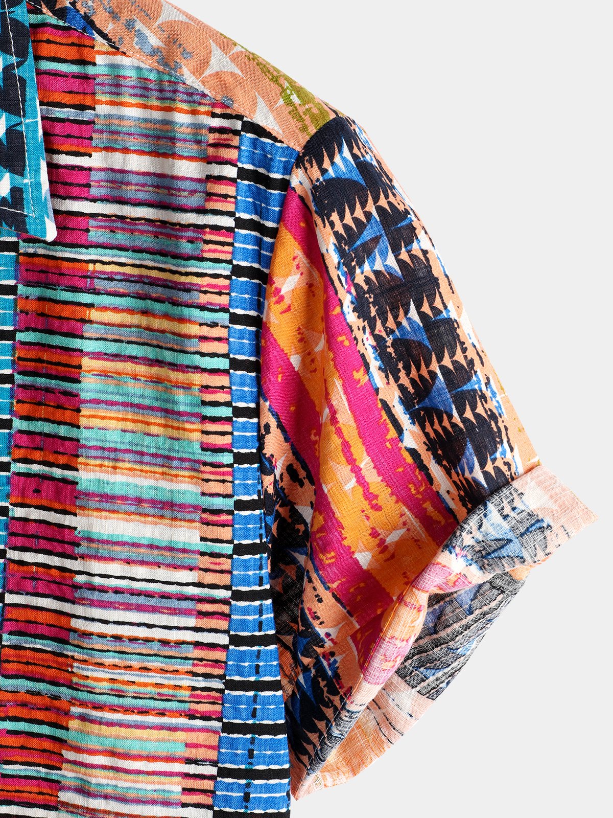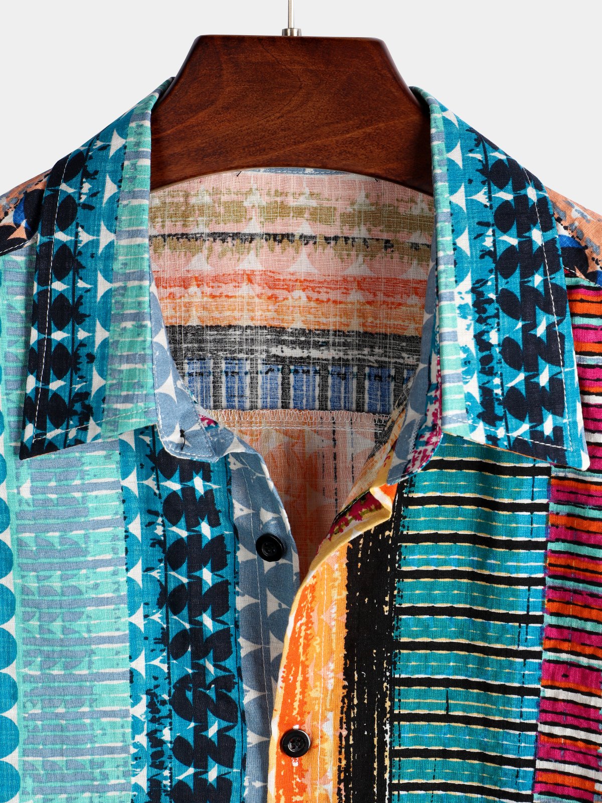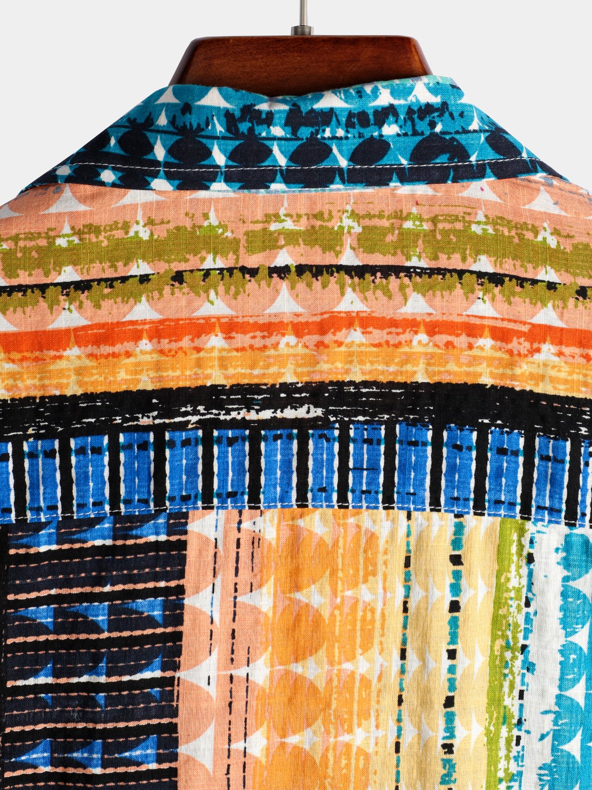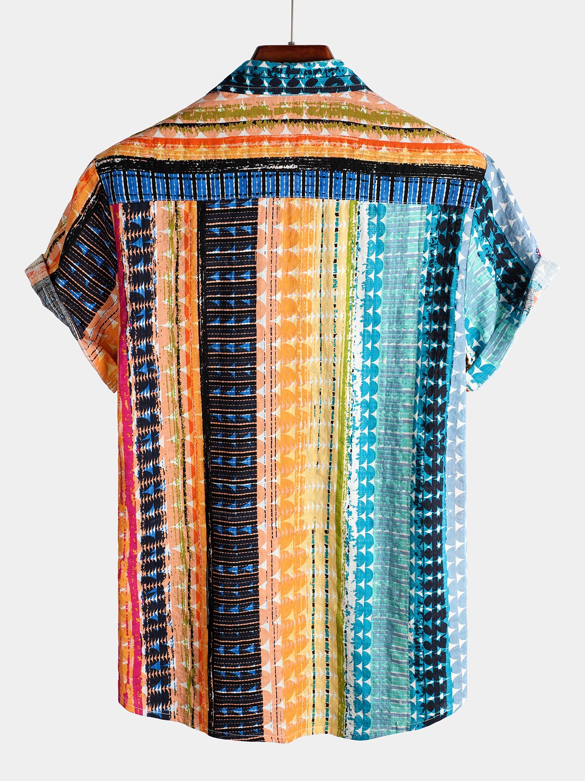 Men's Colorful Casual Retro Striped Short Sleeve Shirt