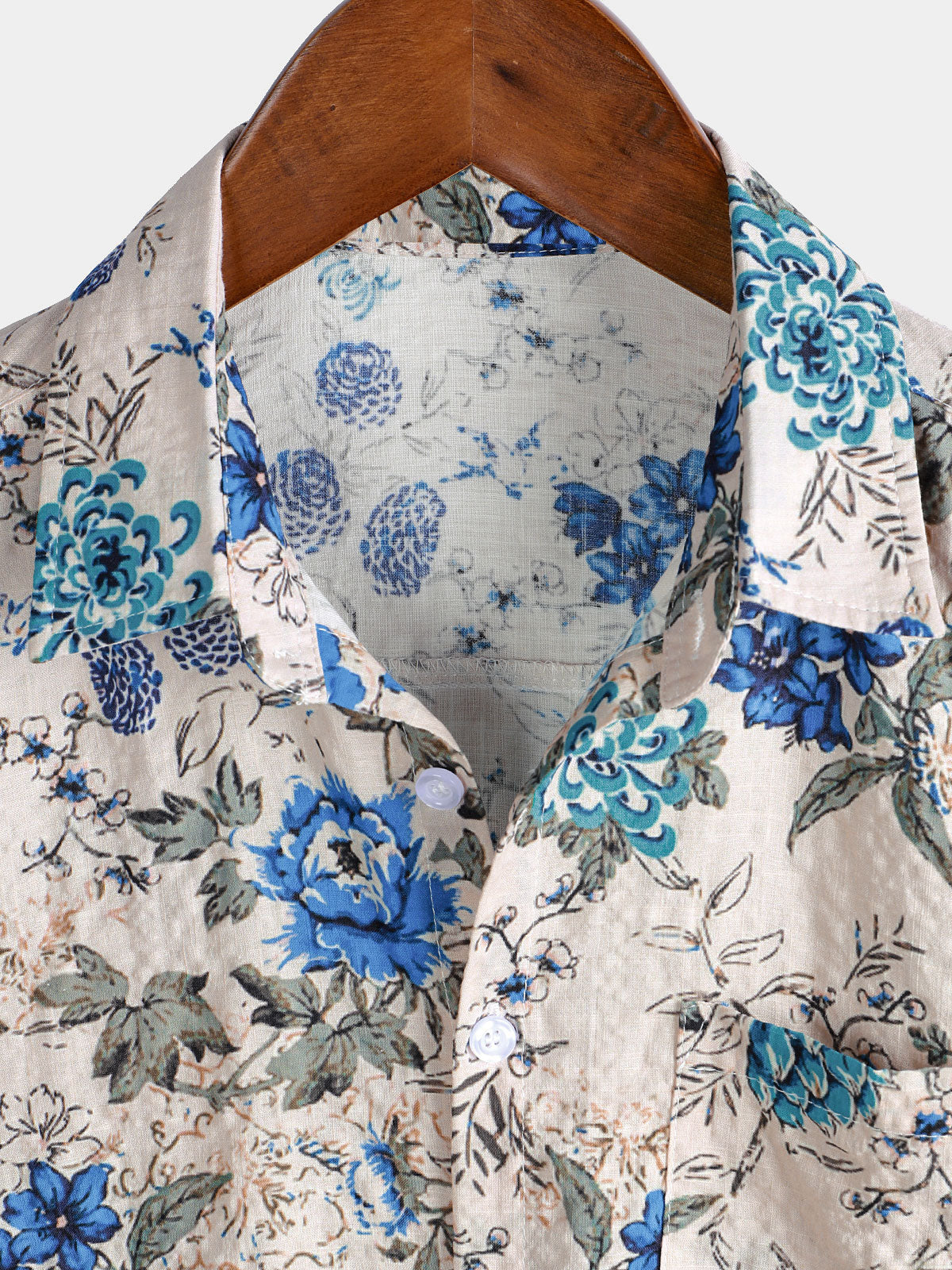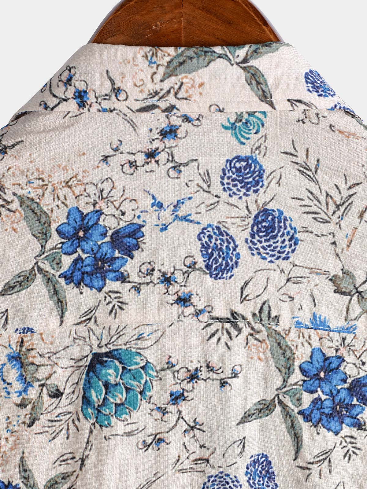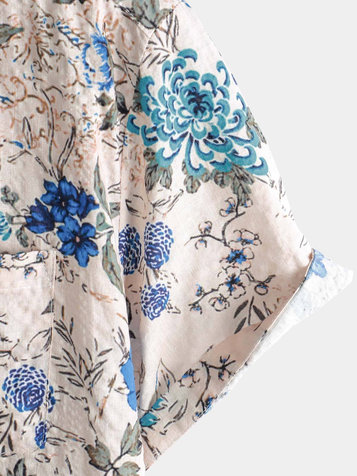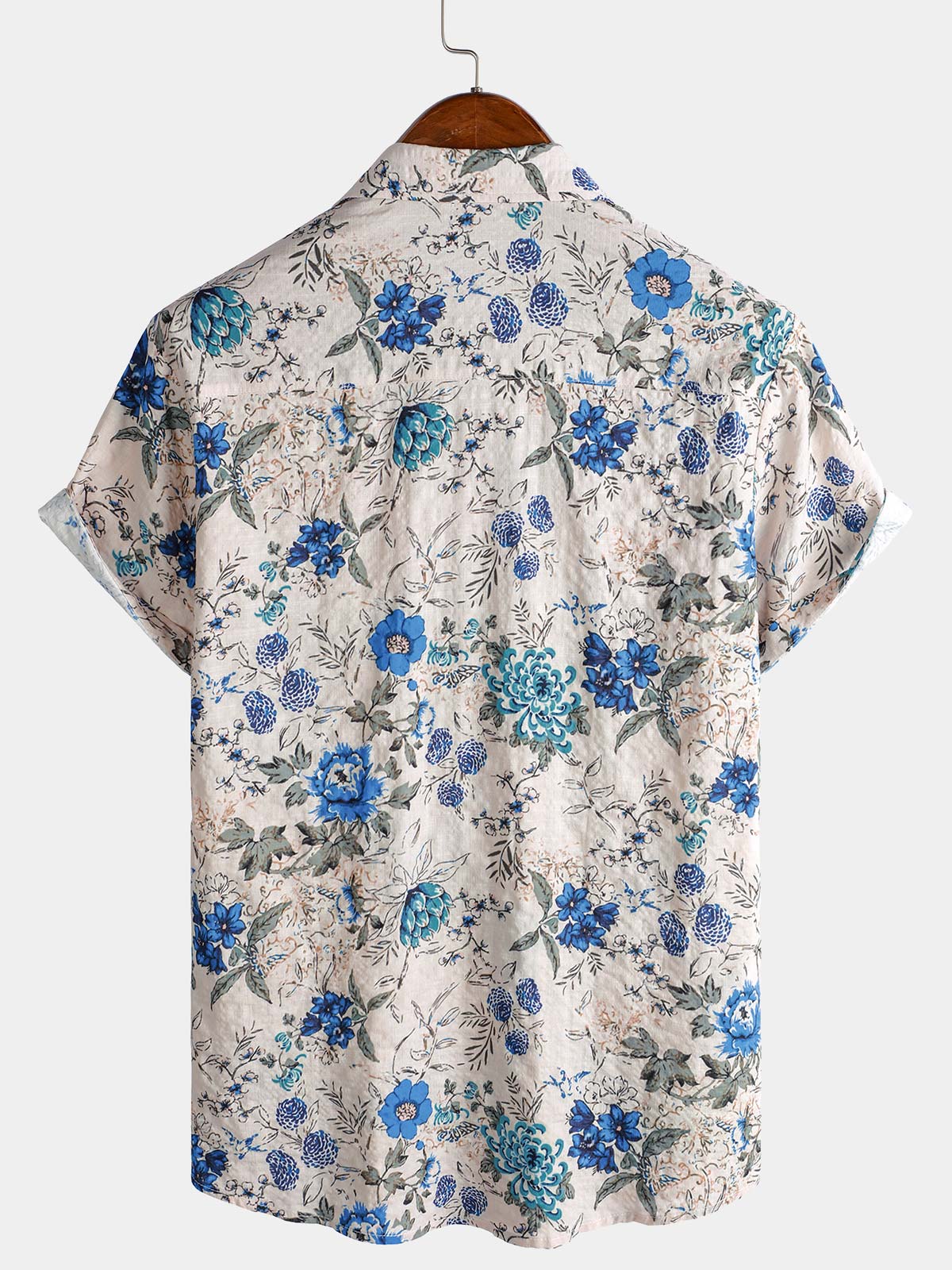 Men's Retro Floral Print Resort Short Sleeve Shirt