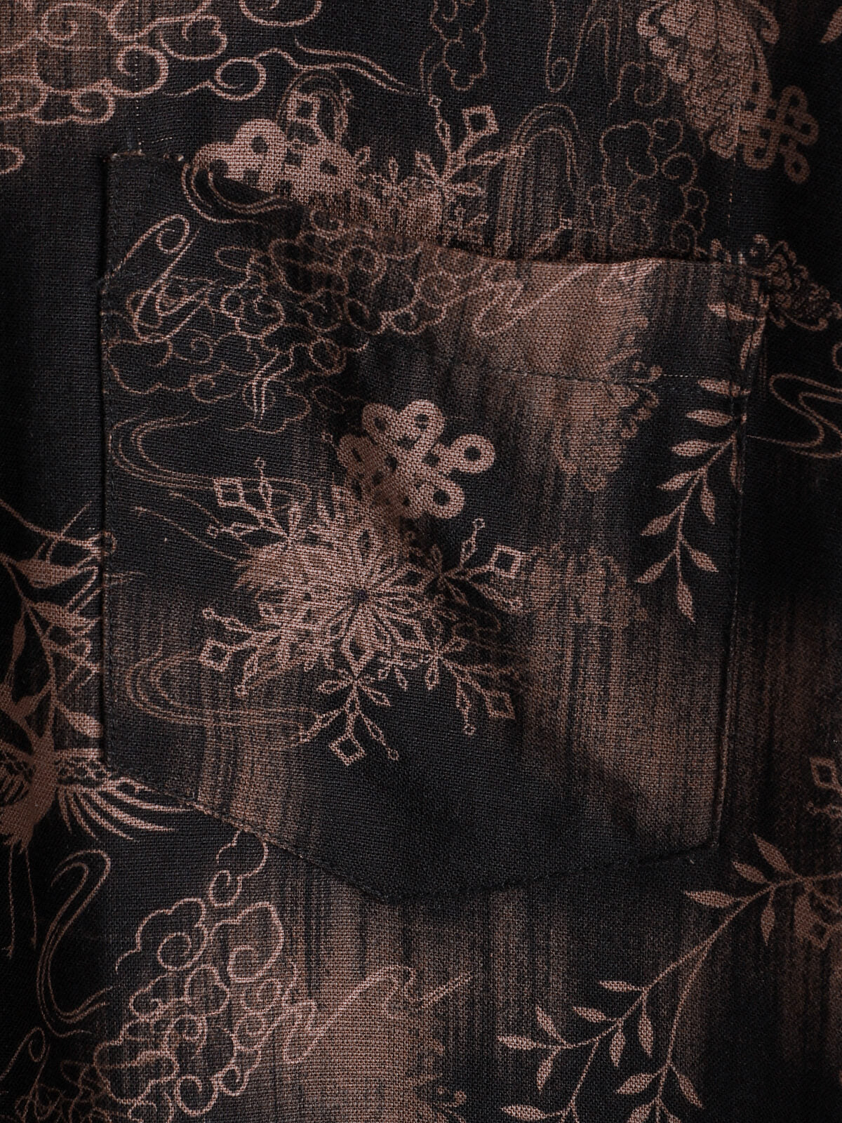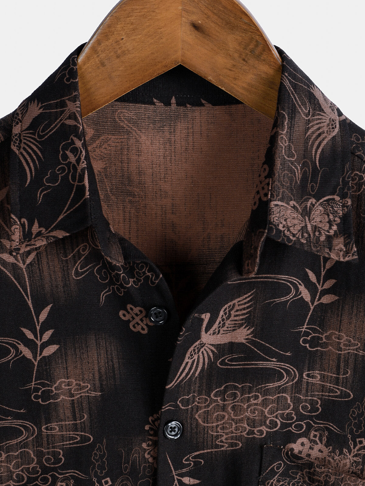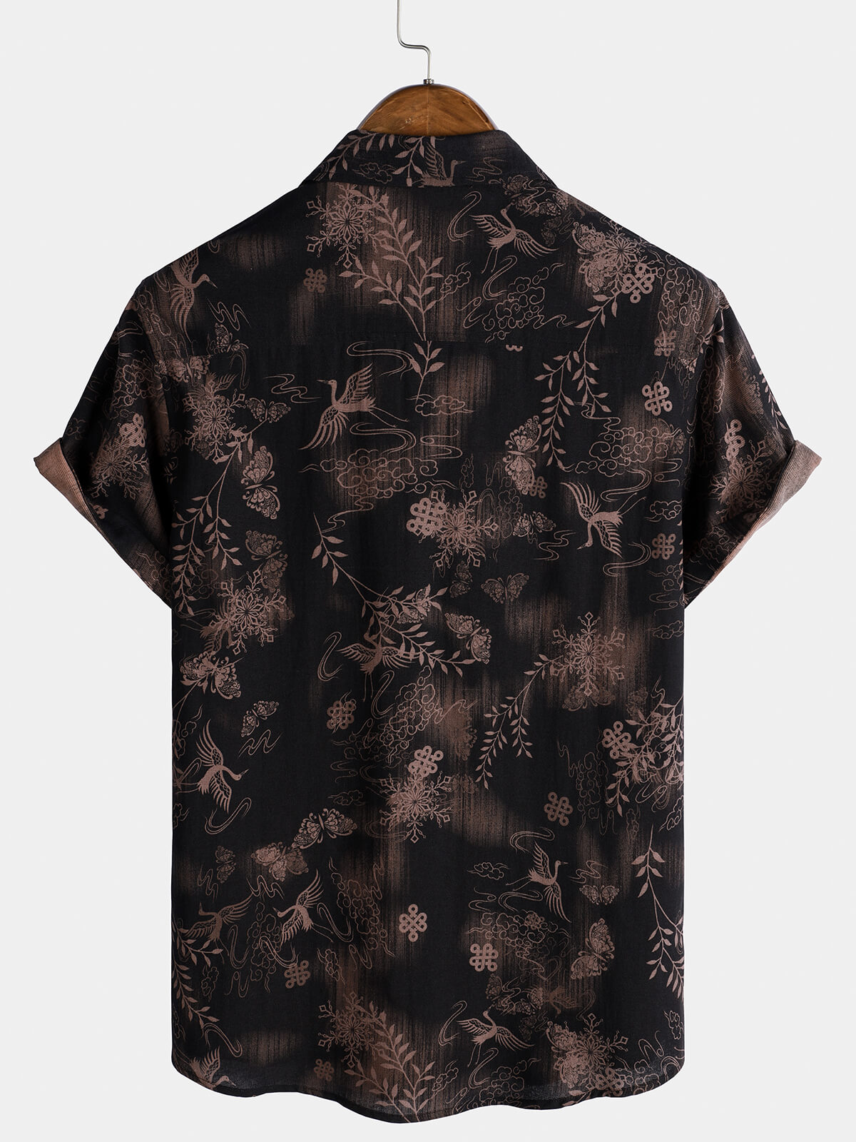Men's Retro Print Pocket Short Sleeve Button Up Shirt