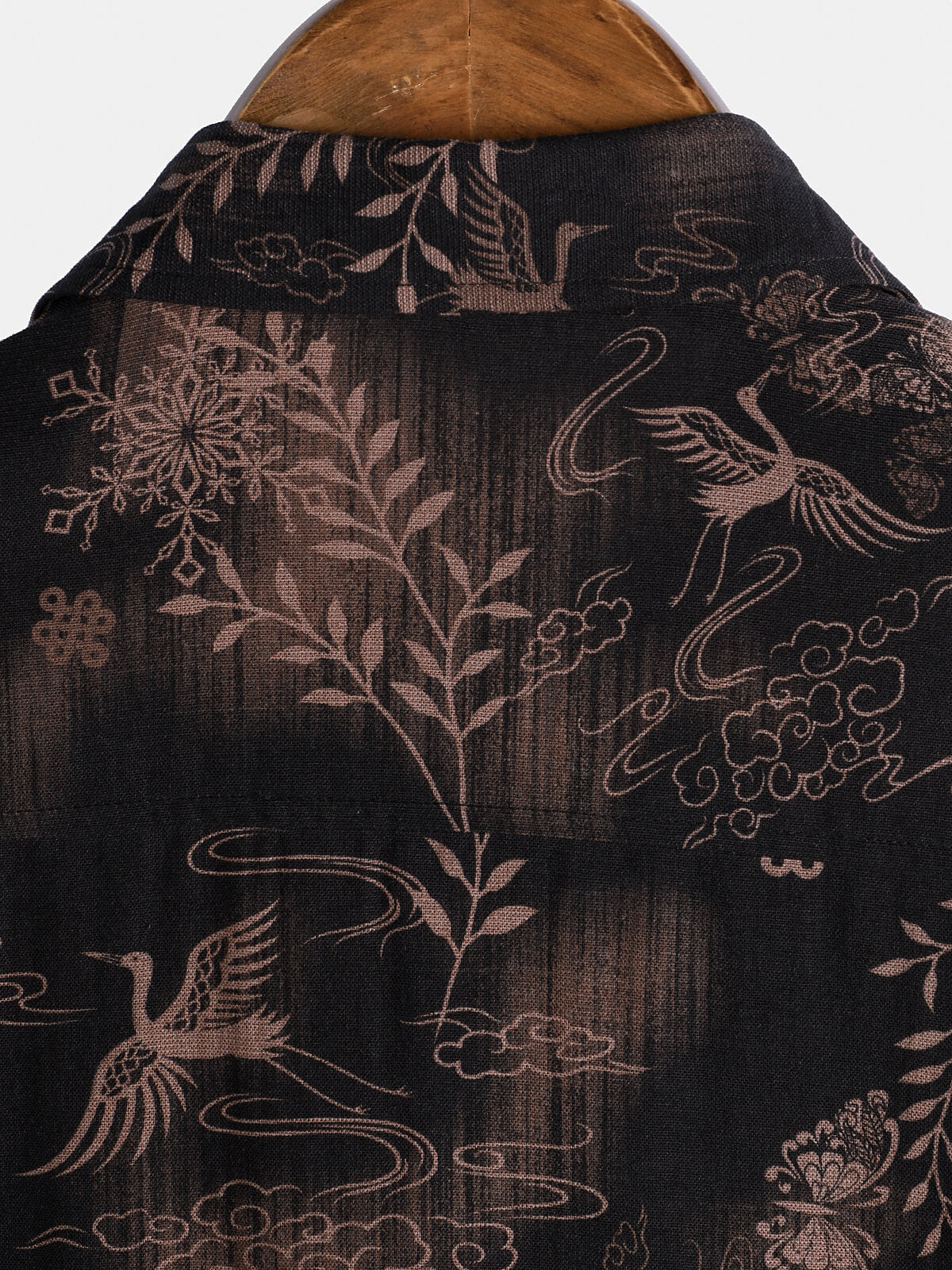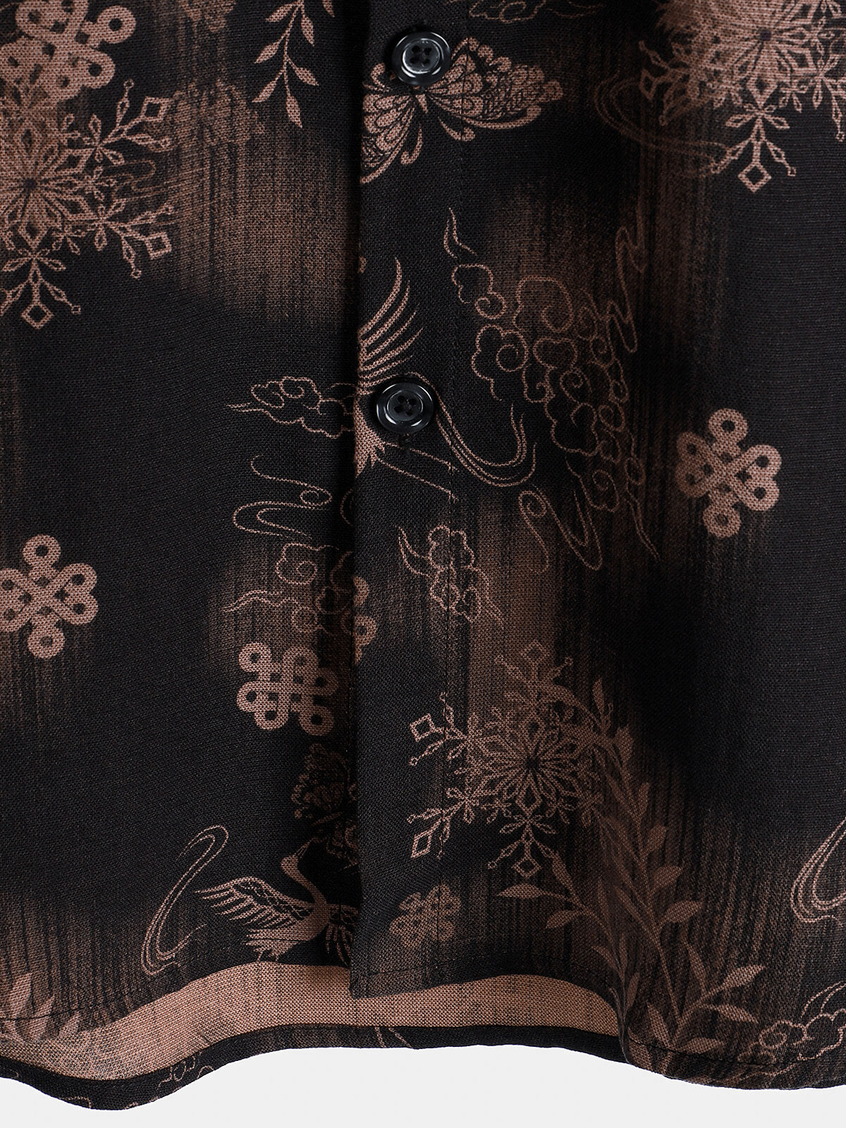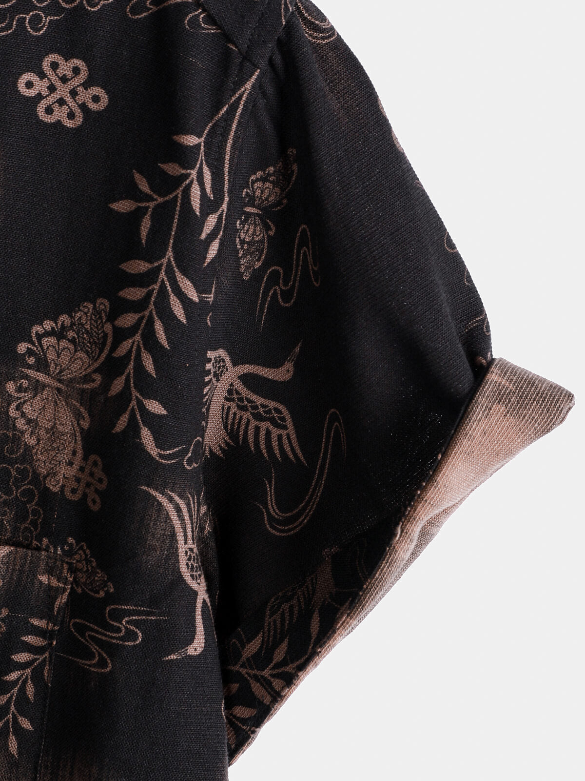 Men's Retro Print Pocket Short Sleeve Button Up Shirt