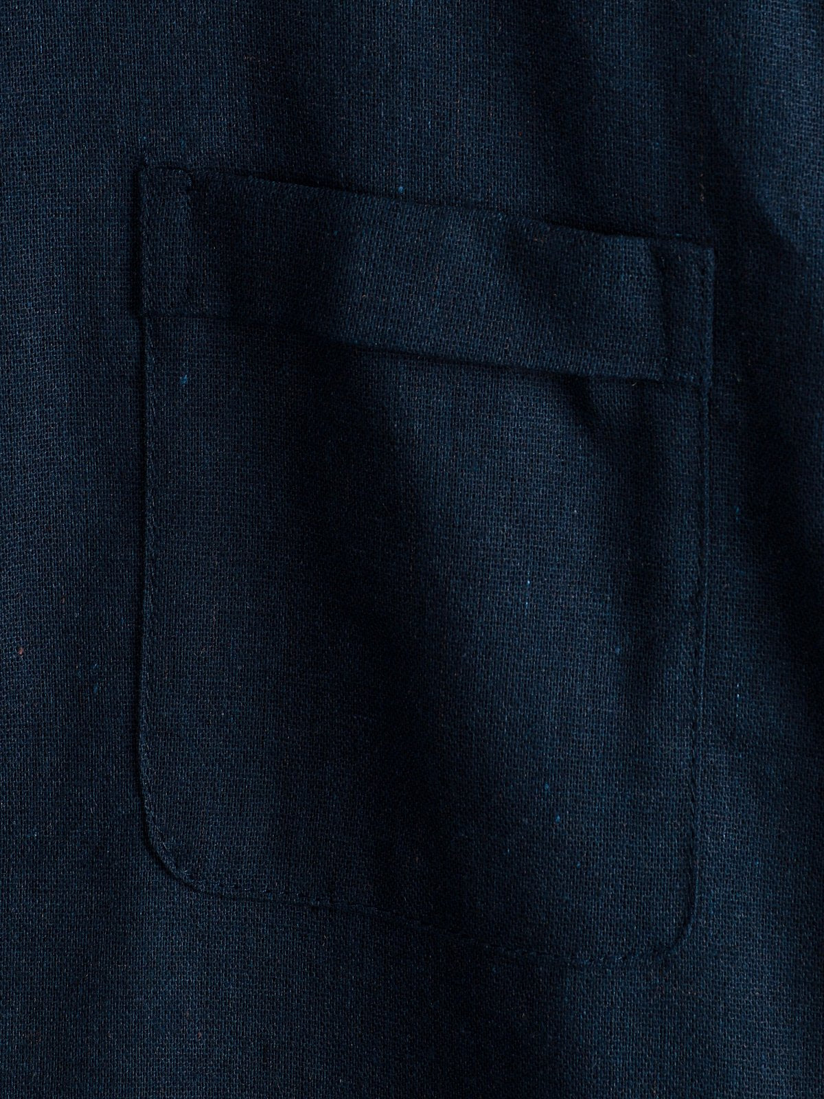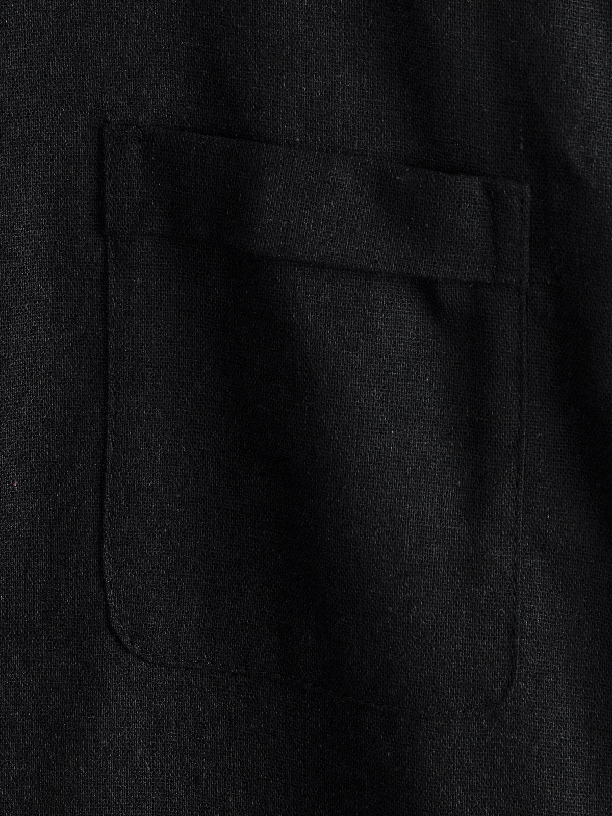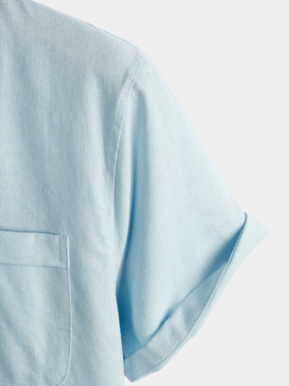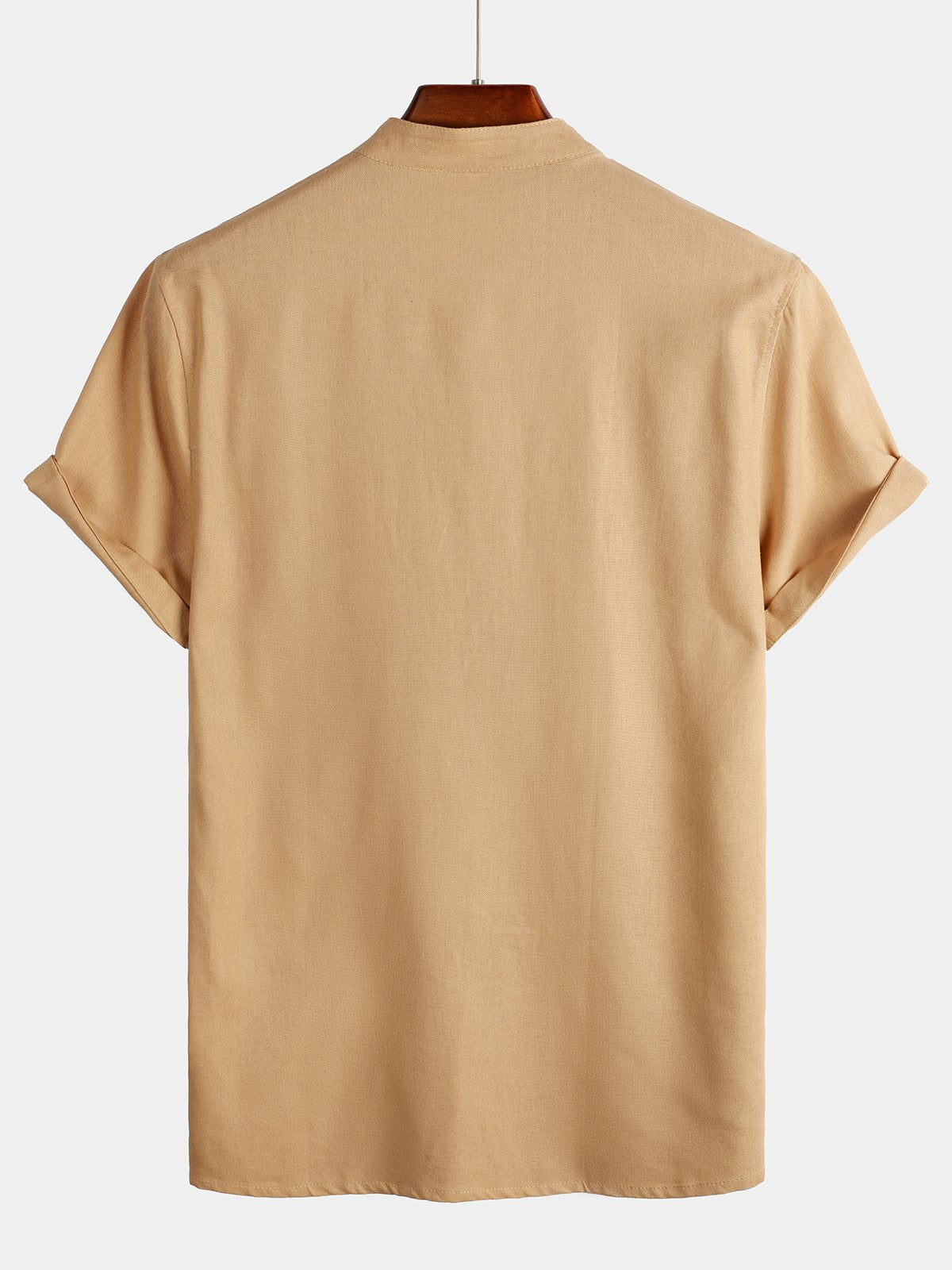 Men's Solid Color Stand Collar Half Button Pocket Front Shirt