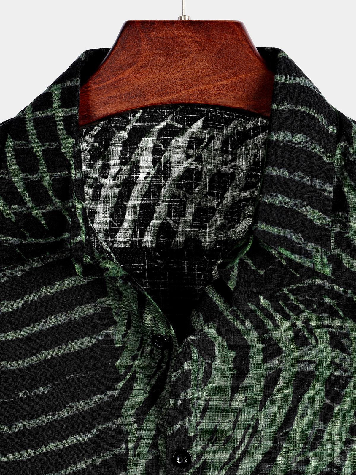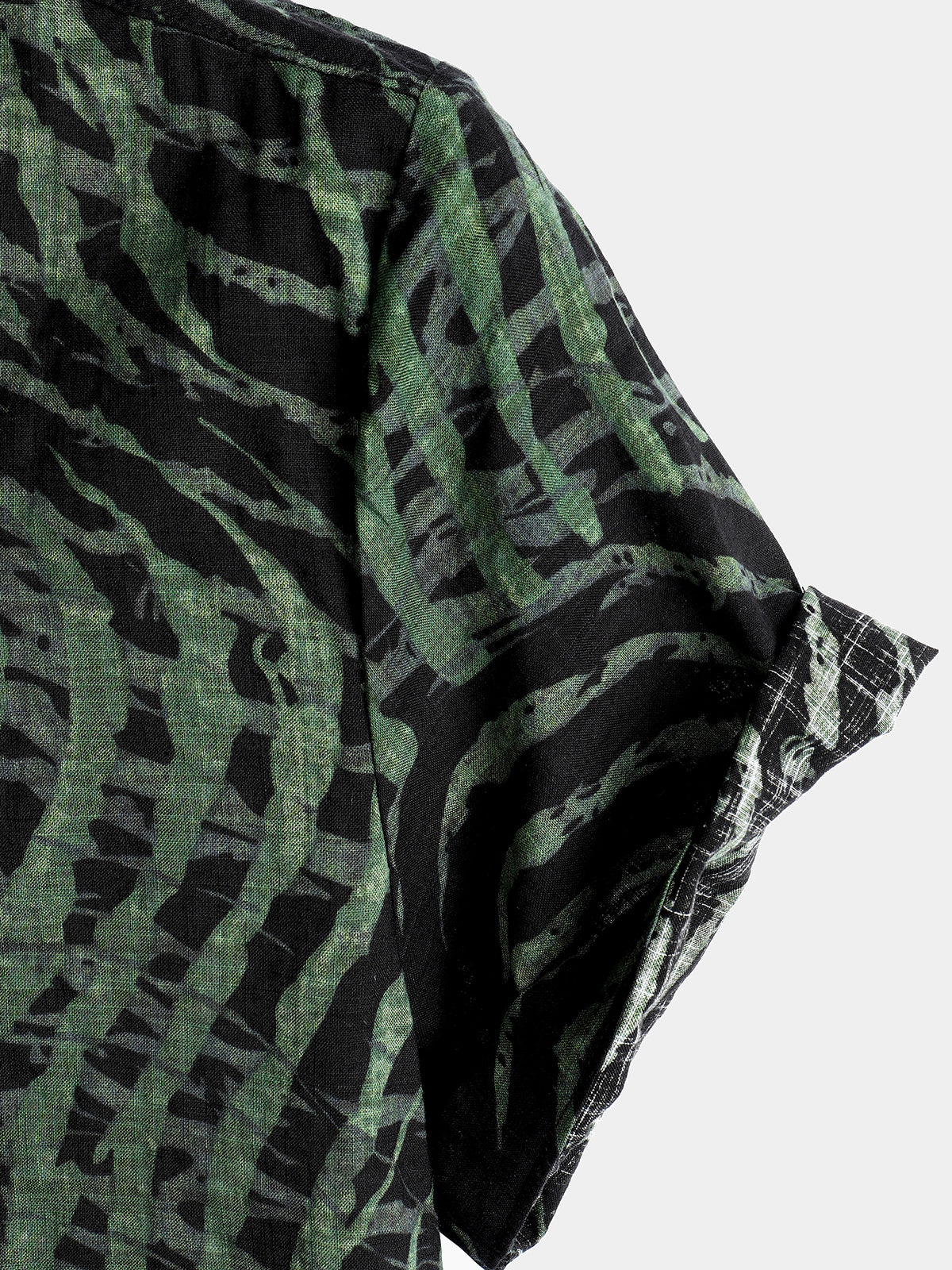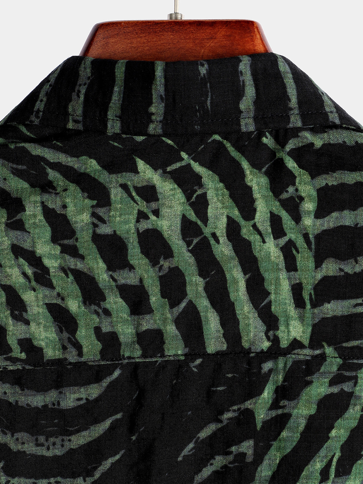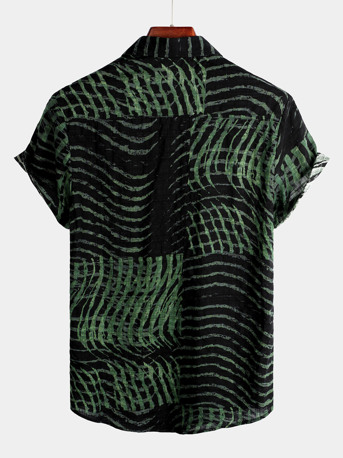Men's Short Sleeve Striped Printed Retro Cotton Shirt