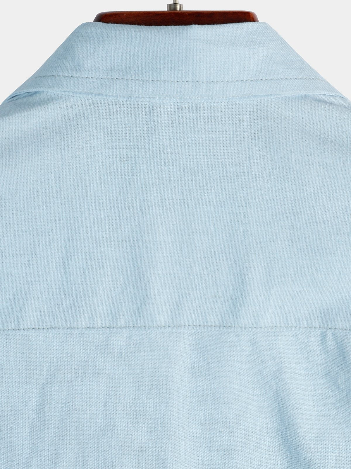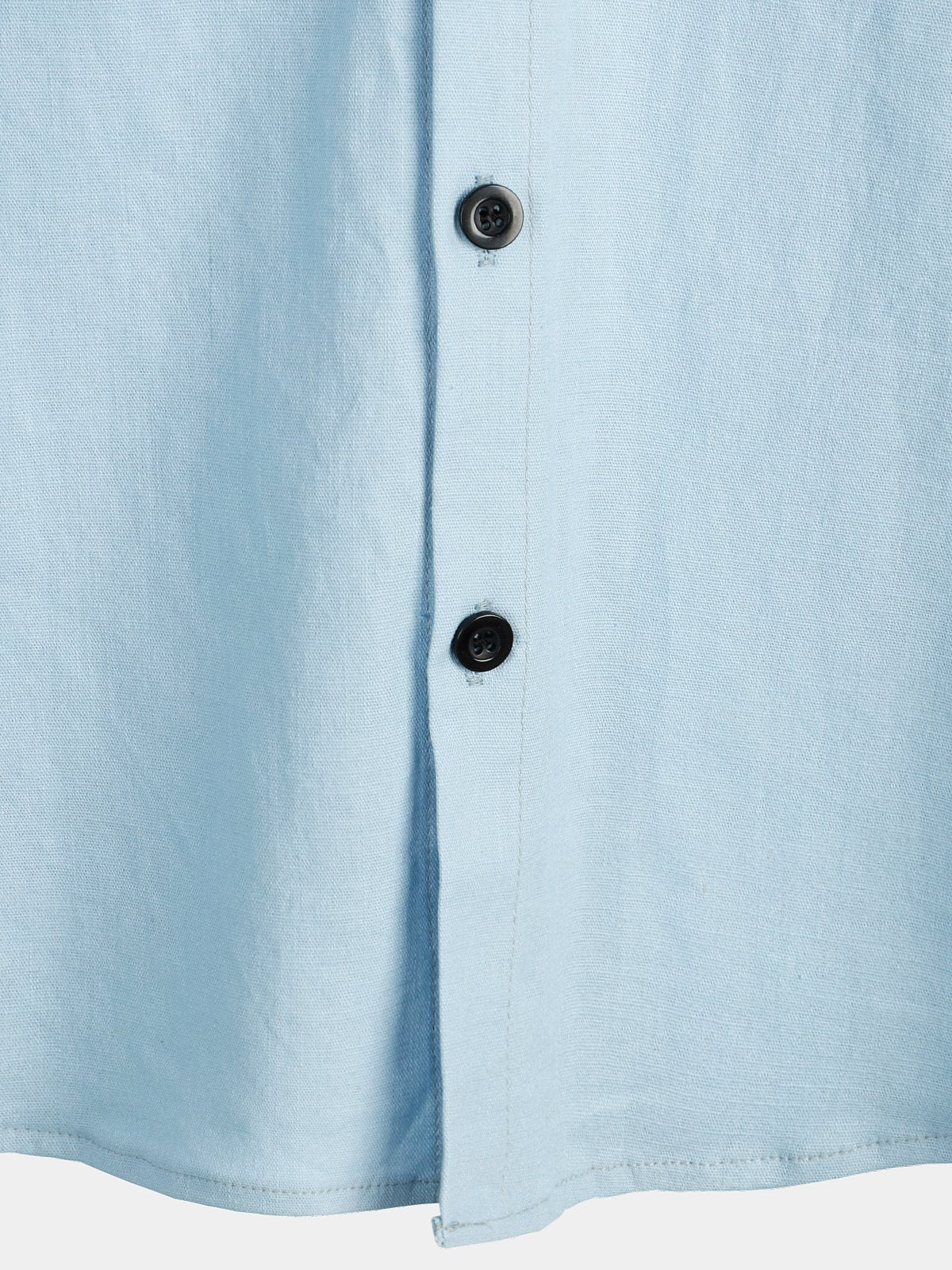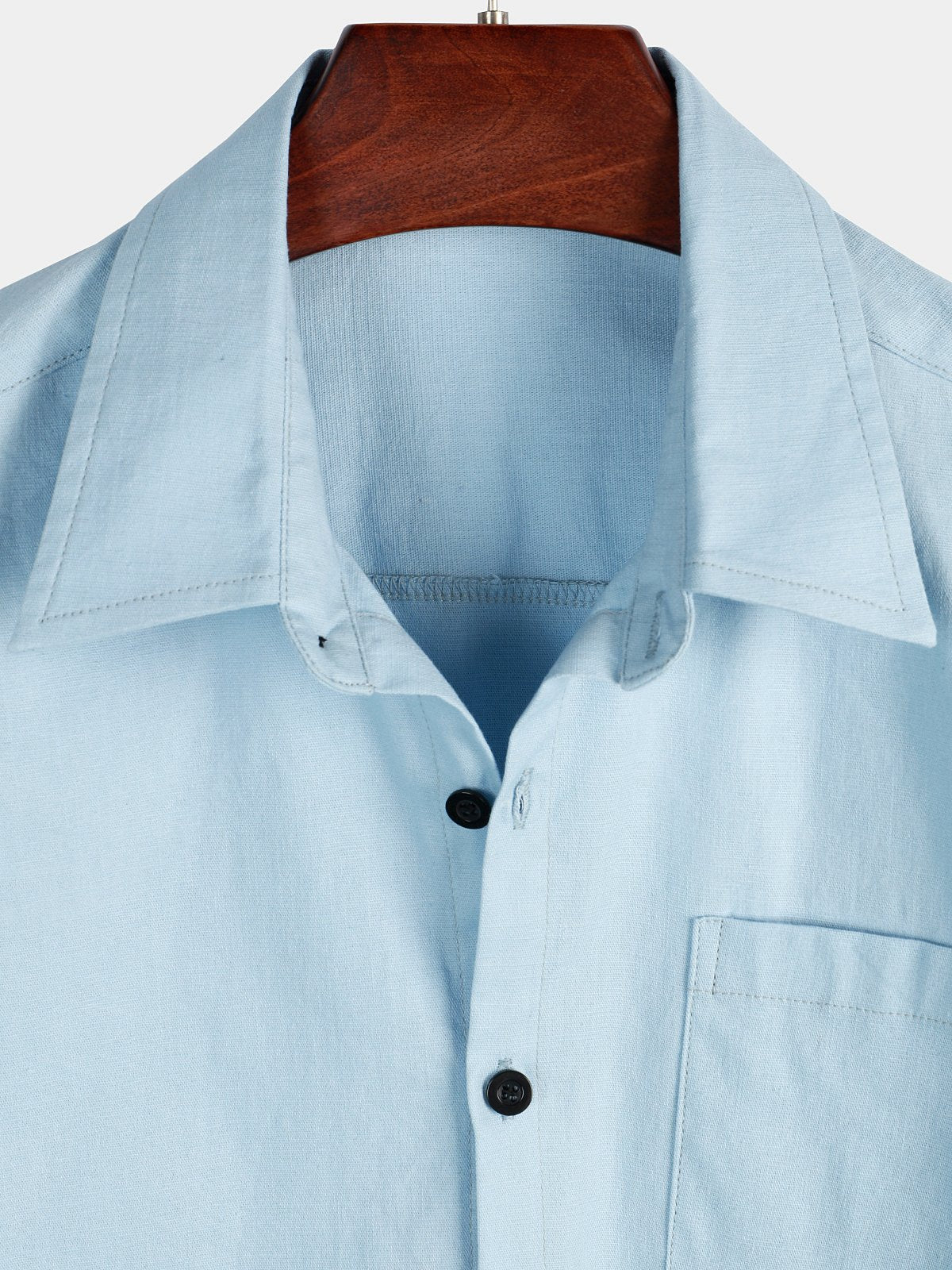 Men's Solid Color Linen Cotton Pocket Casual Button Short Sleeve Shirt