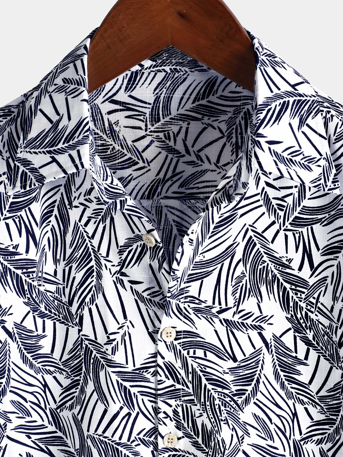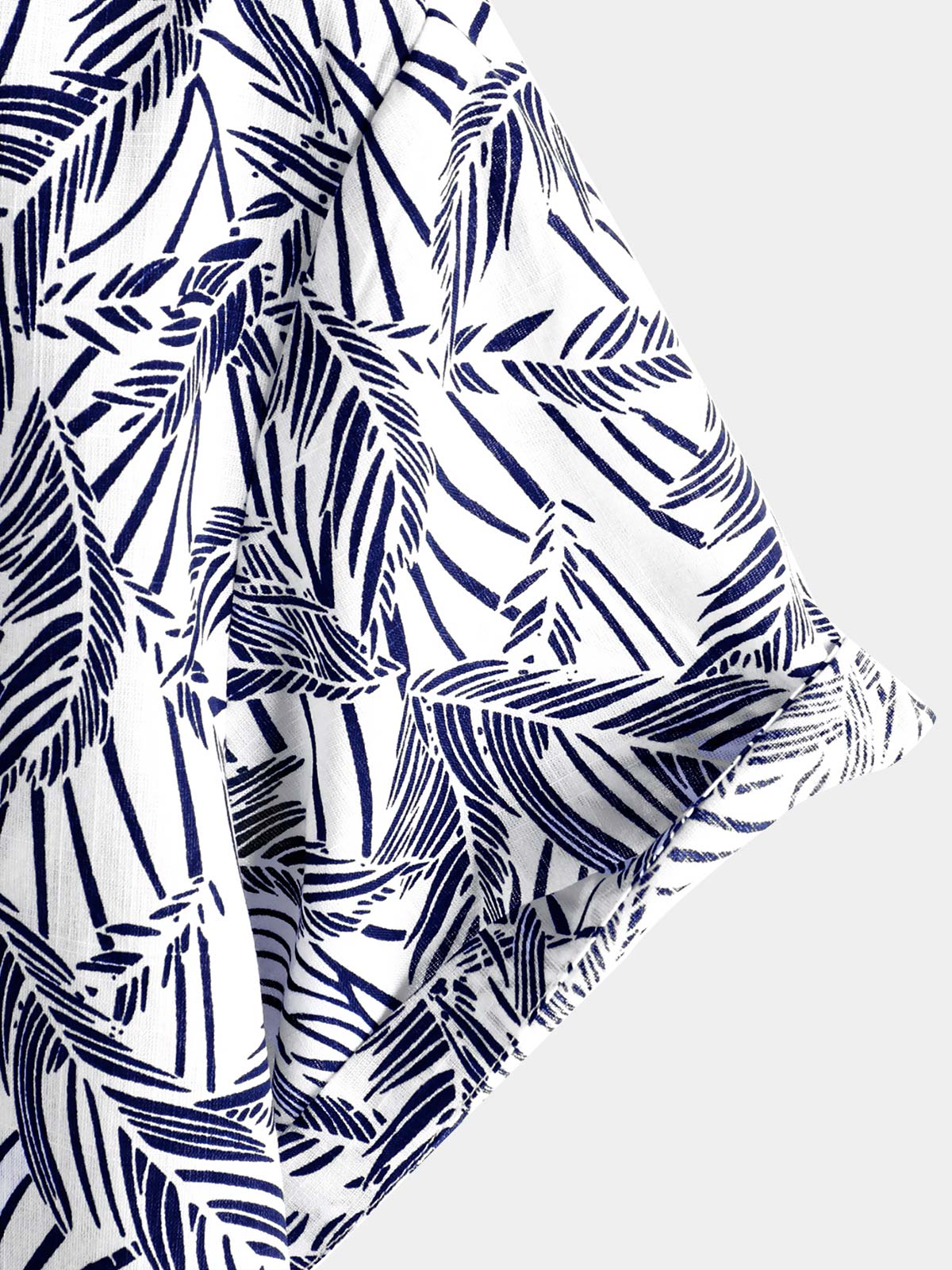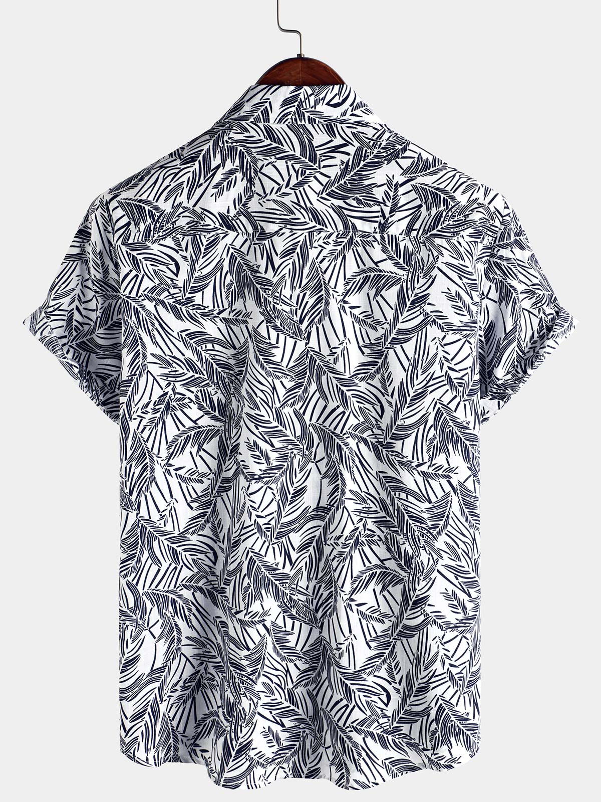 Men's Tropical Blue Short Sleeve Summer Button Up Shirt